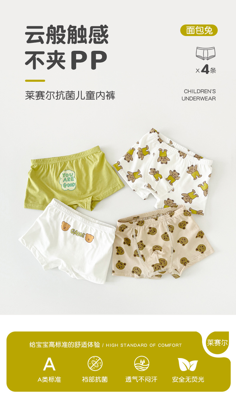 2023 엉덩이없는 소년 속옷 부드러운 Lyocell 면 어린이 복서 반바지 항균 소년 복서 속옷스토어 가기