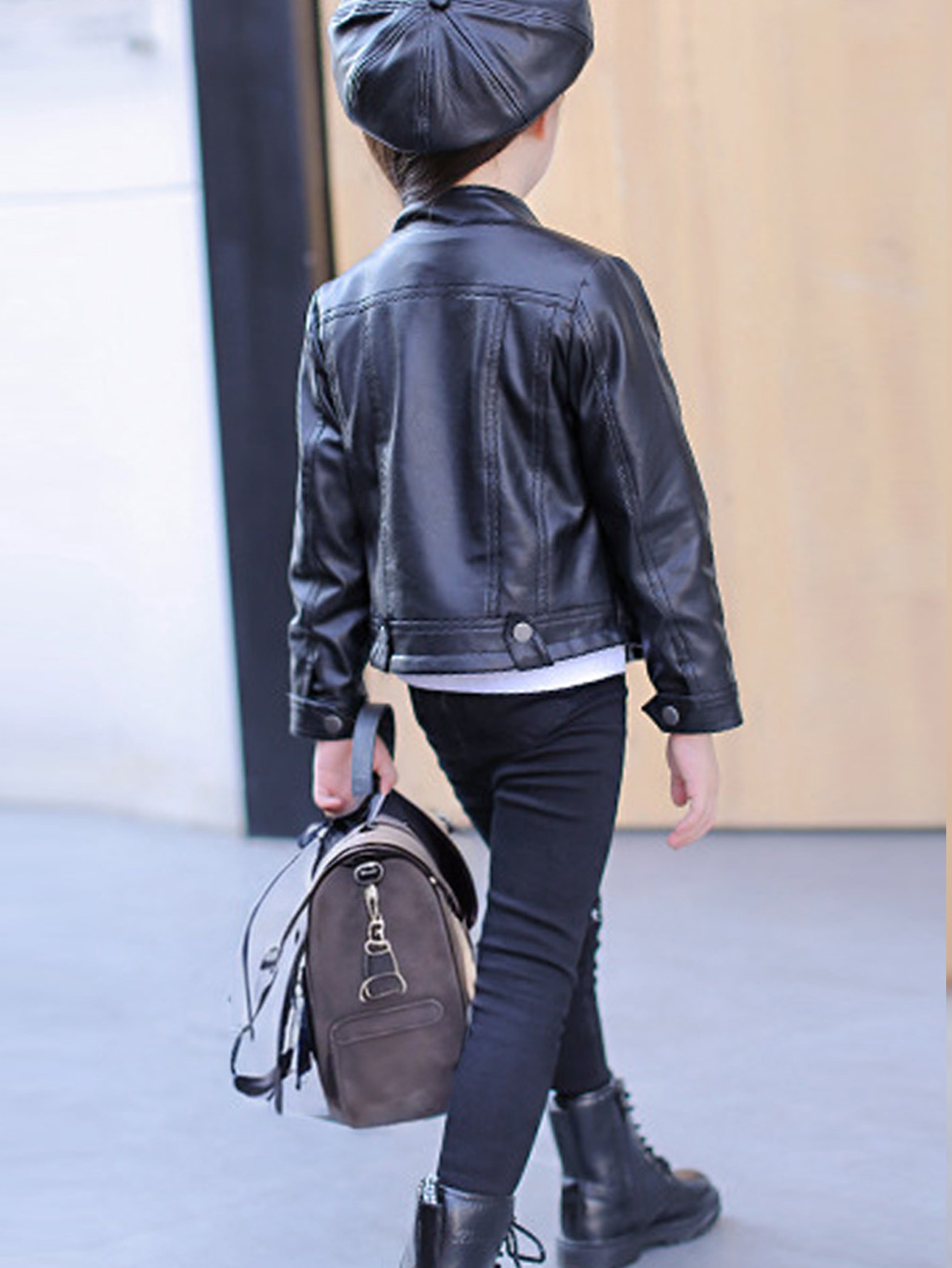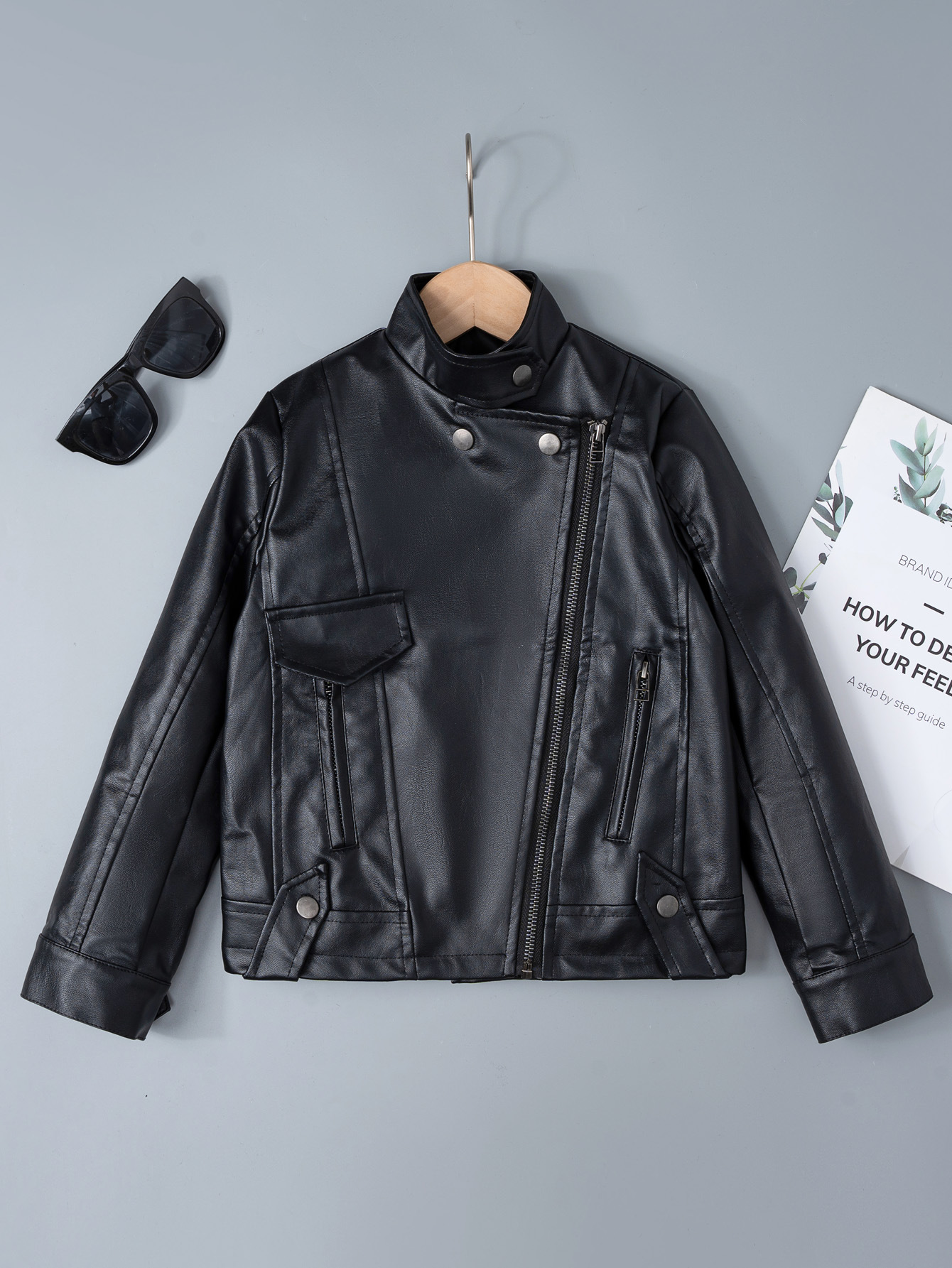 크로스 보더 어린이 가죽 2023 어린이 가을 코트 소년과 소녀 단색 가죽 오토바이 펑크 가죽 자켓 가죽 코트스토어 가기