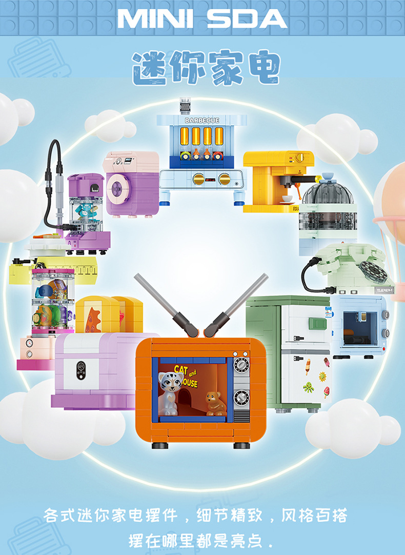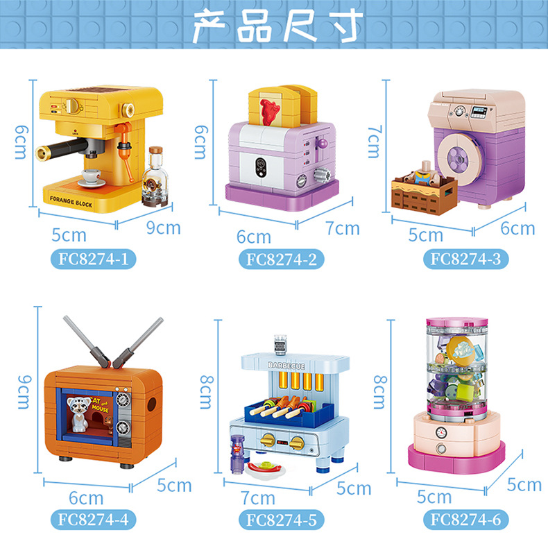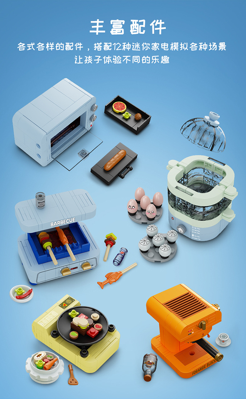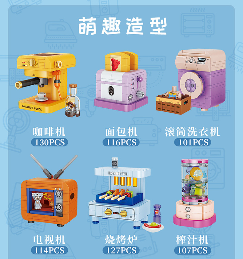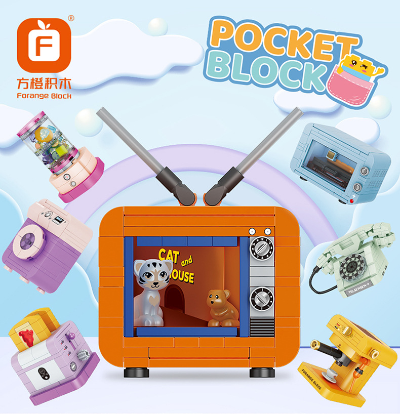 레고와 호환되는 스퀘어 오렌지 빌딩 블록 어린이 교육 조립 미니 가전 소년 조립 주방 가전 모델 완구스토어 가기