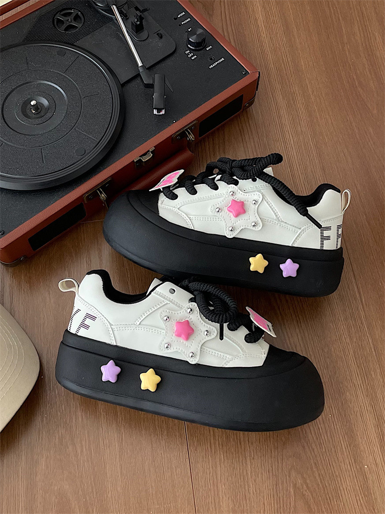 Jin Mi Blast 변경 팻 스타 빅 헤드 보드 신발 여성용 2023 새로운 두꺼운 단독 흰색 신발 여성용 모든 매치 캐주얼 싱글 레이어 신발