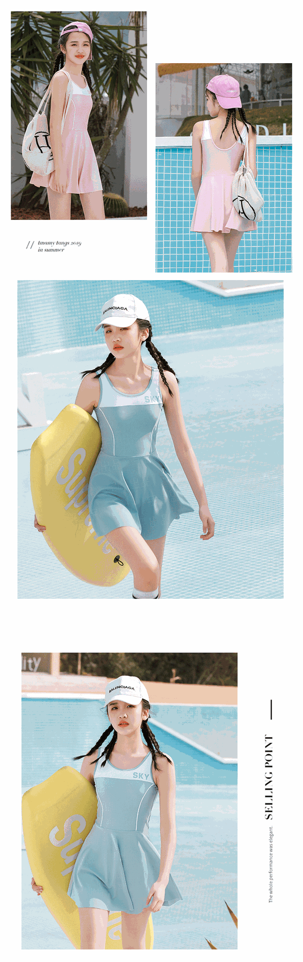 여아용 노출방지 스포츠 원피스, 슬리밍 및 살 커버, 여성용 스포츠 스타일 패션 아이템, 수영복 원피스, 재고 있음