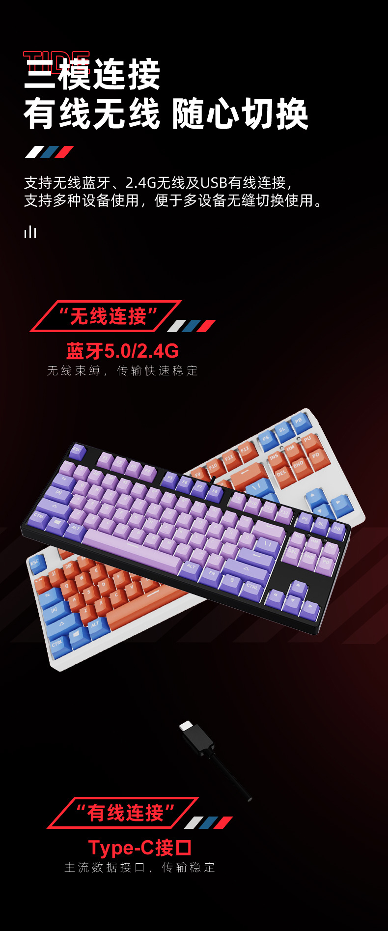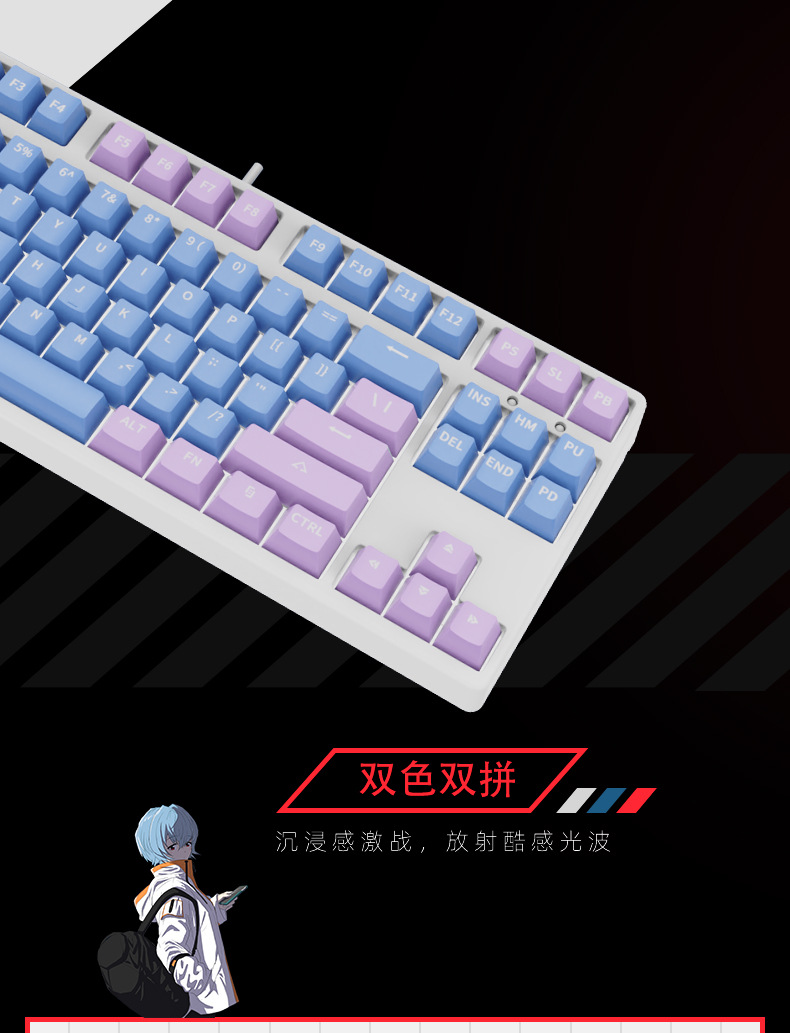 2.4g 무선 블루투스 3 모드 기계식 키보드 87 키 블랙 티 레드 실버 축 게임 E 스포츠 맞춤형 더블 컬러