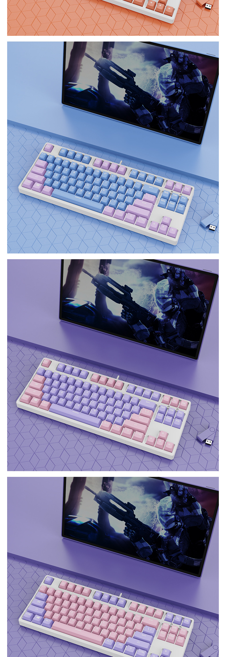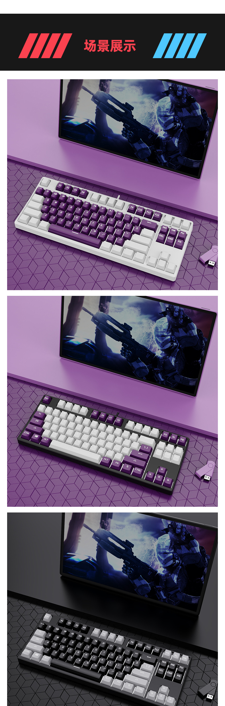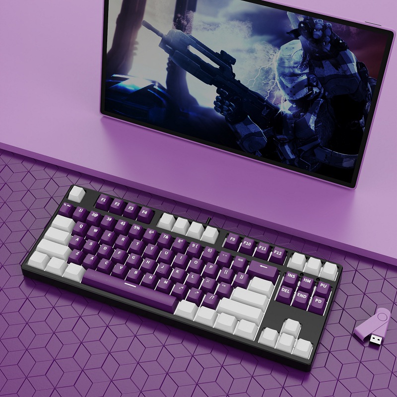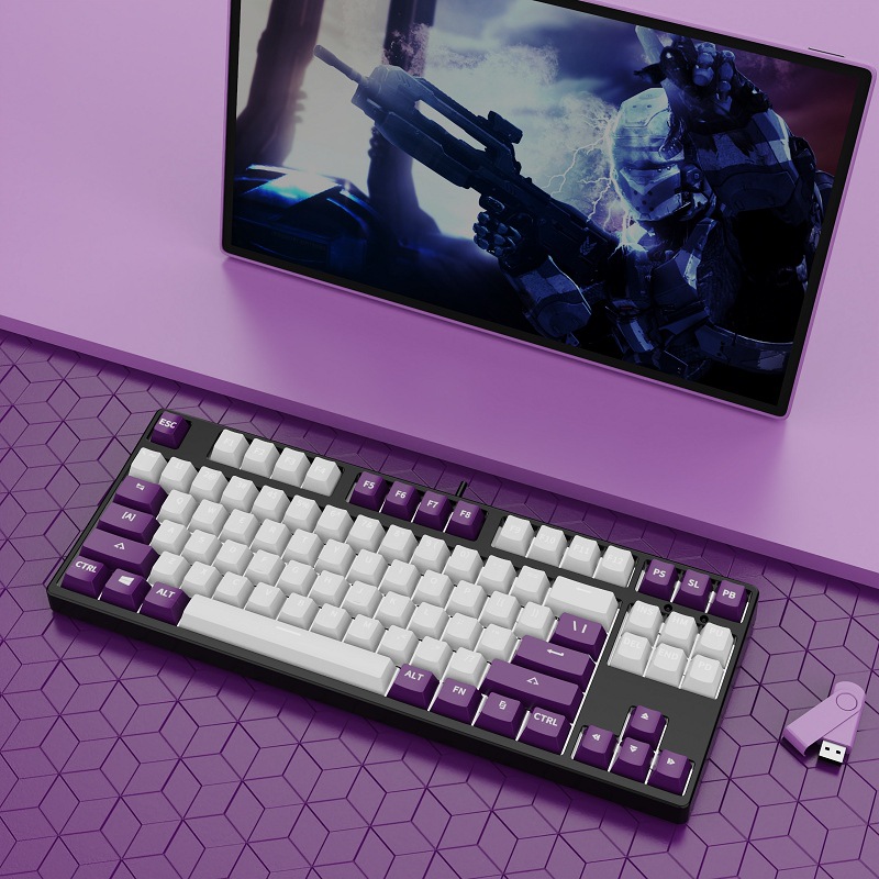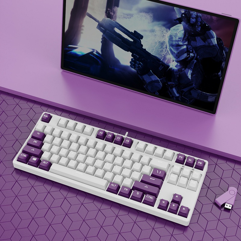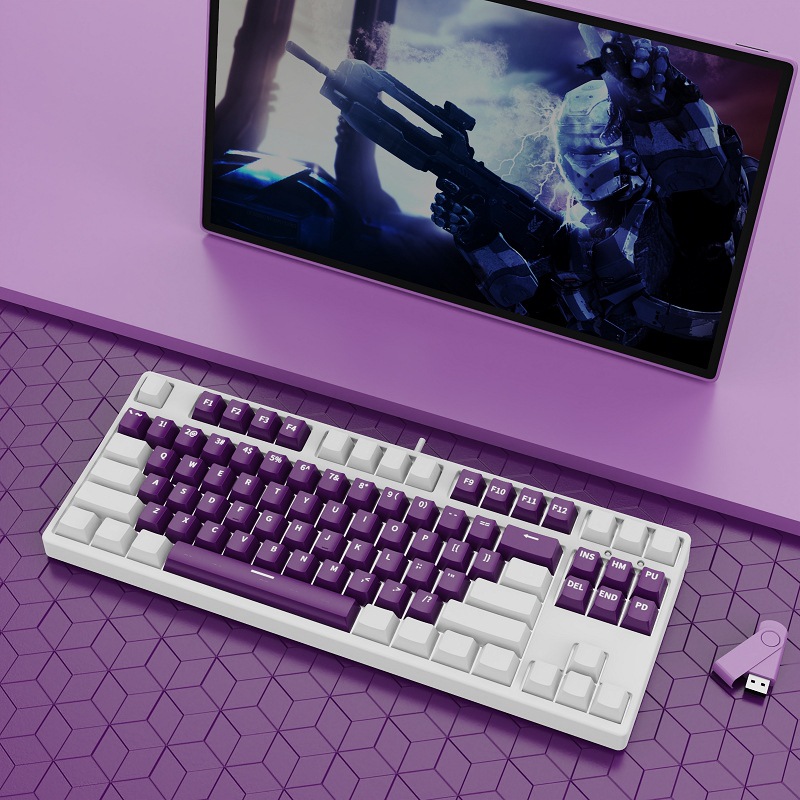 • 87 키 블루투스 3 모드-흰색 배경-내부 흰색 외부 다크 퍼플-RGB 조명