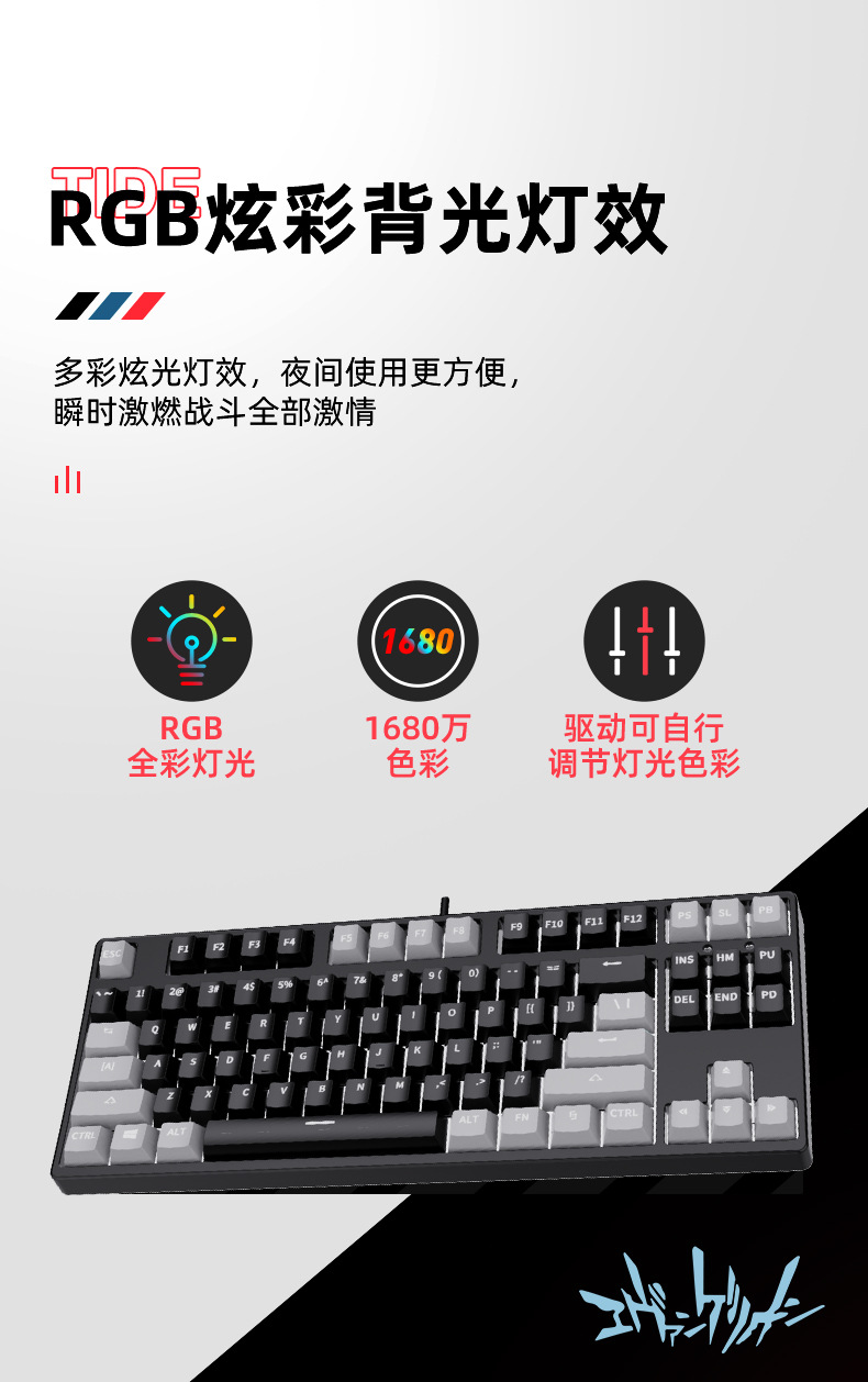 • 87 키 블루투스 3 모드-검정색 배경-모두 검정색-RGB 조명