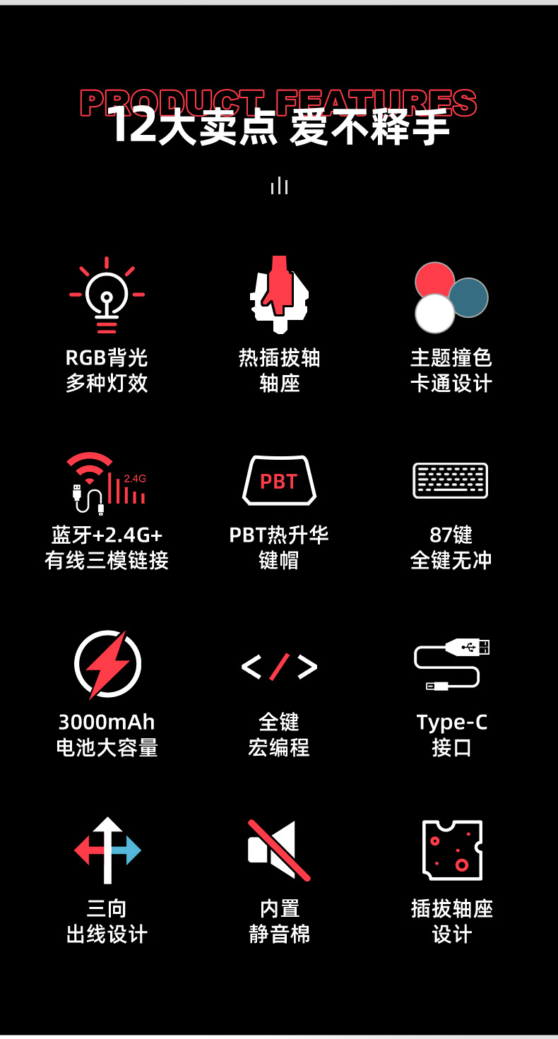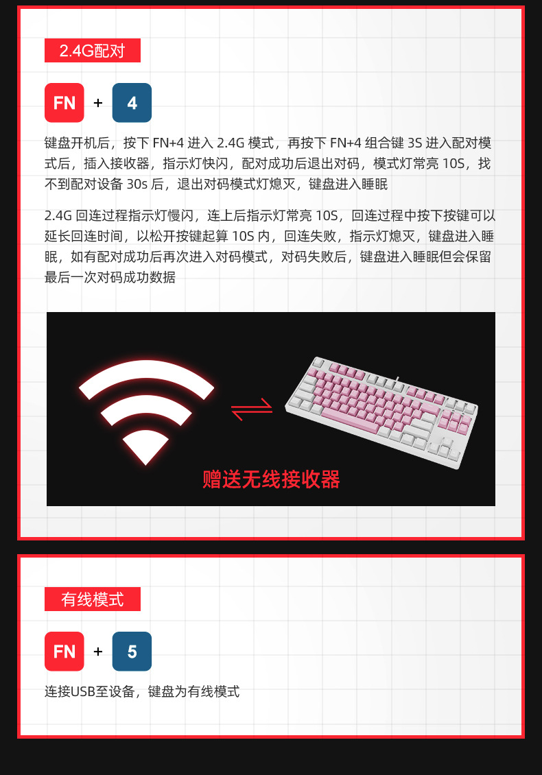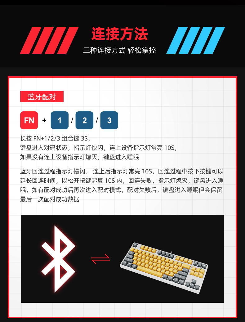 2.4g 무선 블루투스 3 모드 기계식 키보드 87 키 블랙 티 레드 실버 축 게임 E 스포츠 맞춤형 더블 컬러스토어 가기