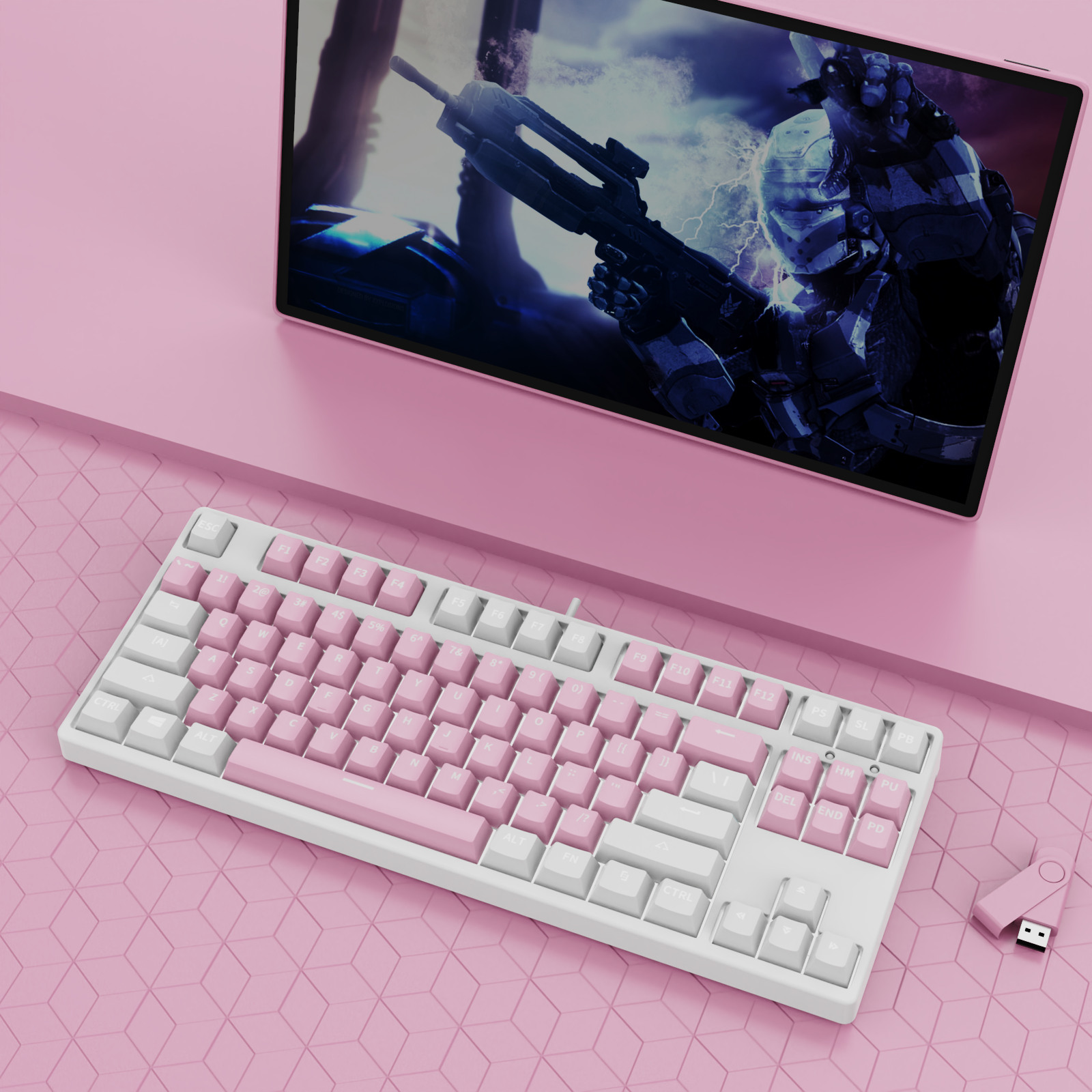 • 87 키 블루투스 3 모드-흰색 배경-내부 흰색 및 외부 파우더-RGB 조명