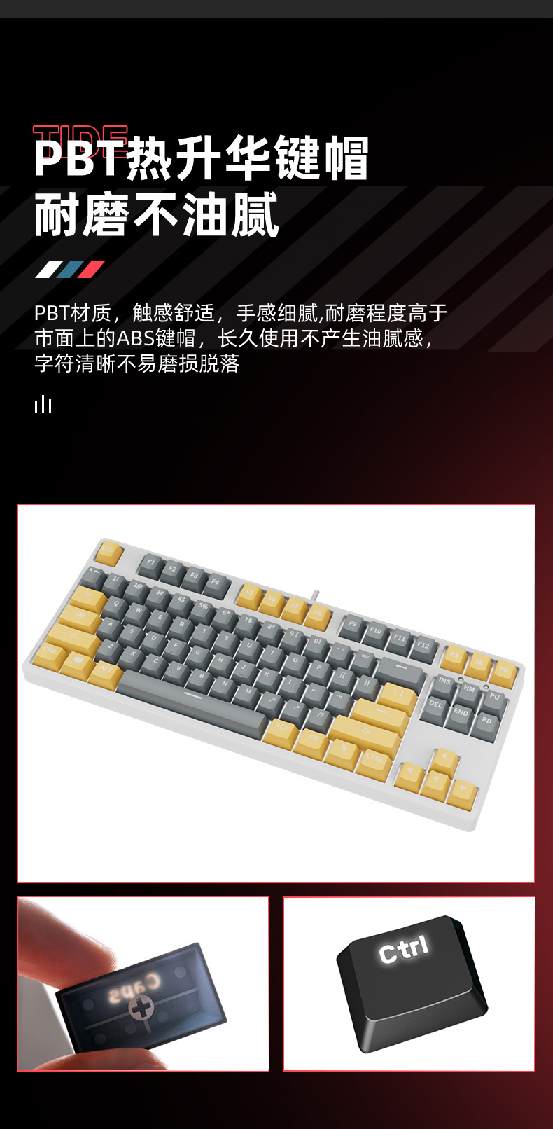 • 87 키 블루투스 3 모드-흰색 배경-내부 회색 외부 노란색-RGB 조명