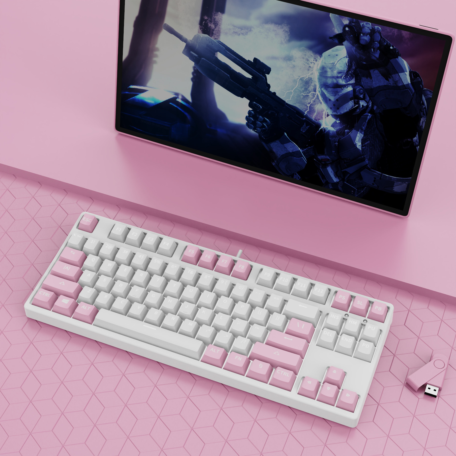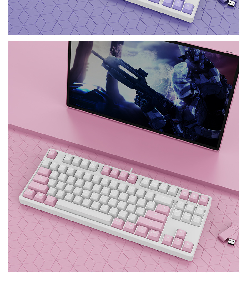 • 87 키 블루투스 3 모드-흰색 배경-라벤더 파우더 내부-RGB 조명