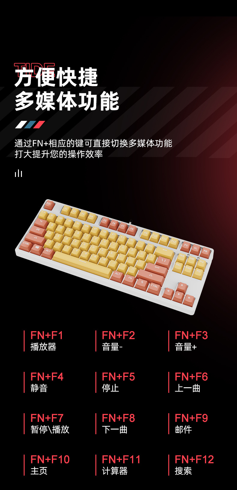 • 87 키 블루투스 3 모드-흰색 배경-내부 노란색 및 외부 주황색-RGB 조명