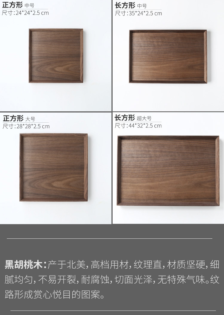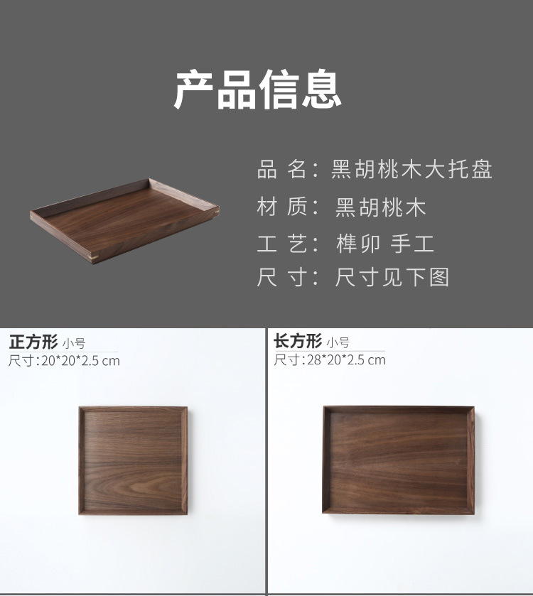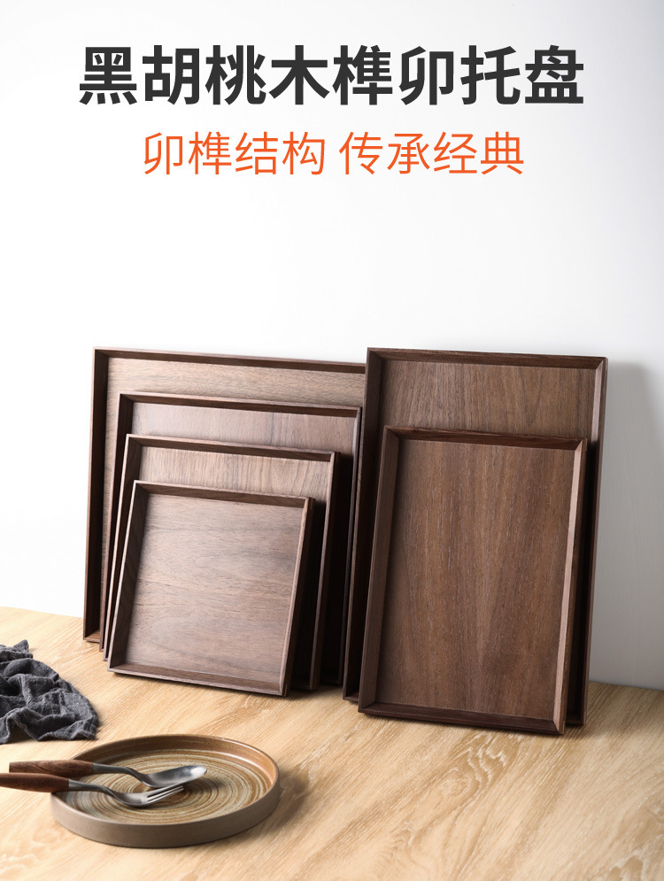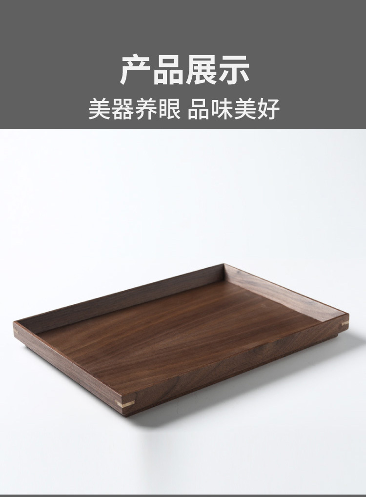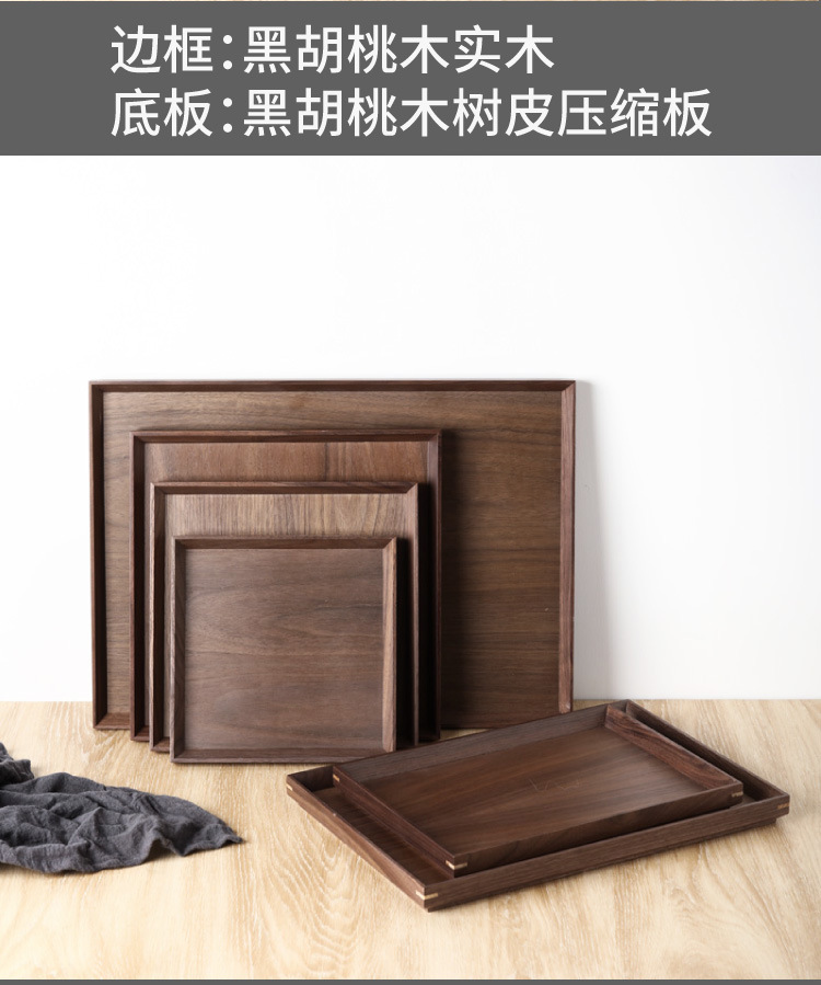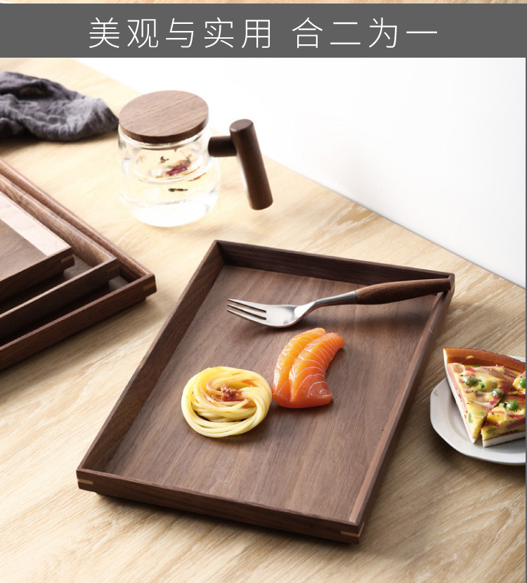 검은 호두 쟁반 일본식 단단한 나무 직사각형 차 쟁반 가정용 나무 식기 쟁반 거실을 위한 고급 커피 쟁반스토어 가기