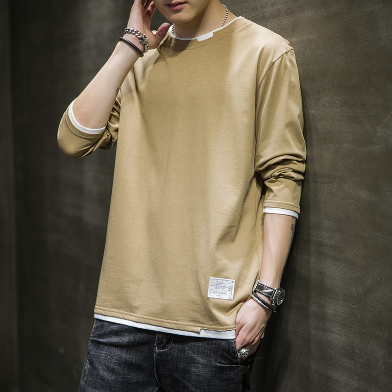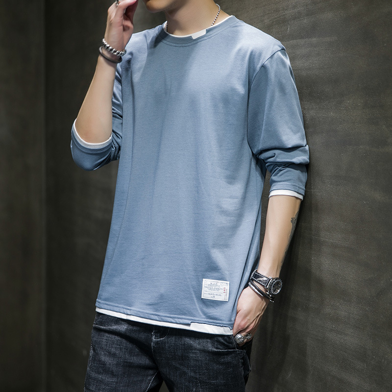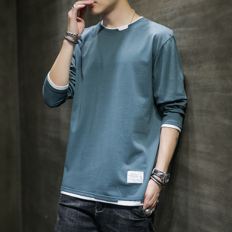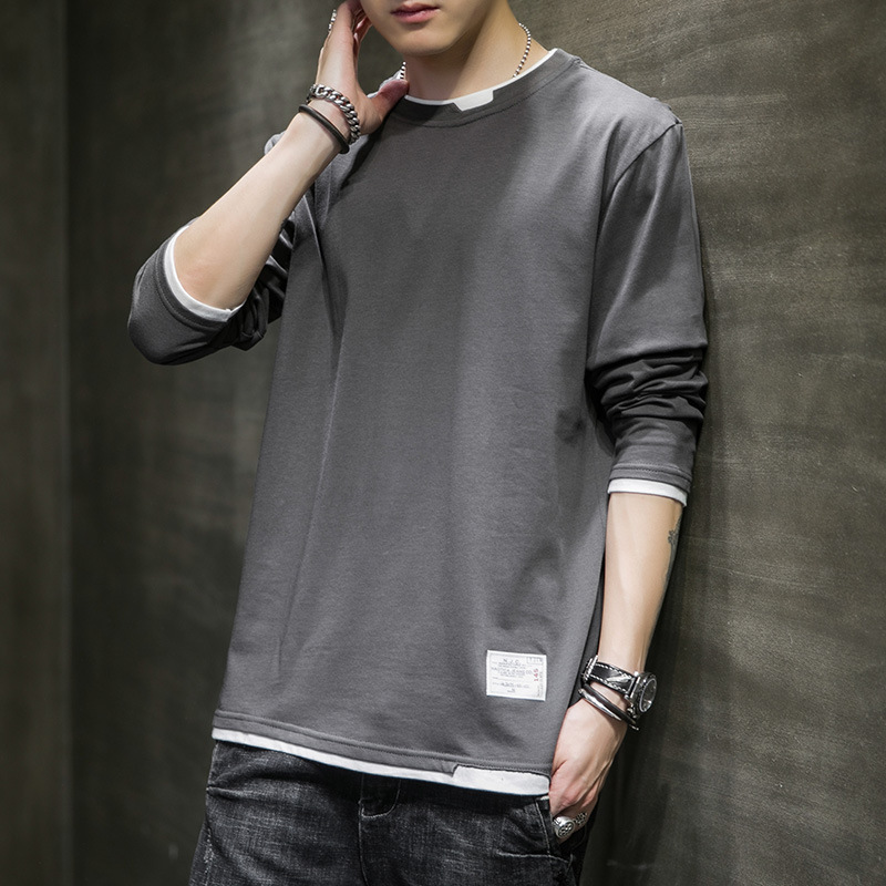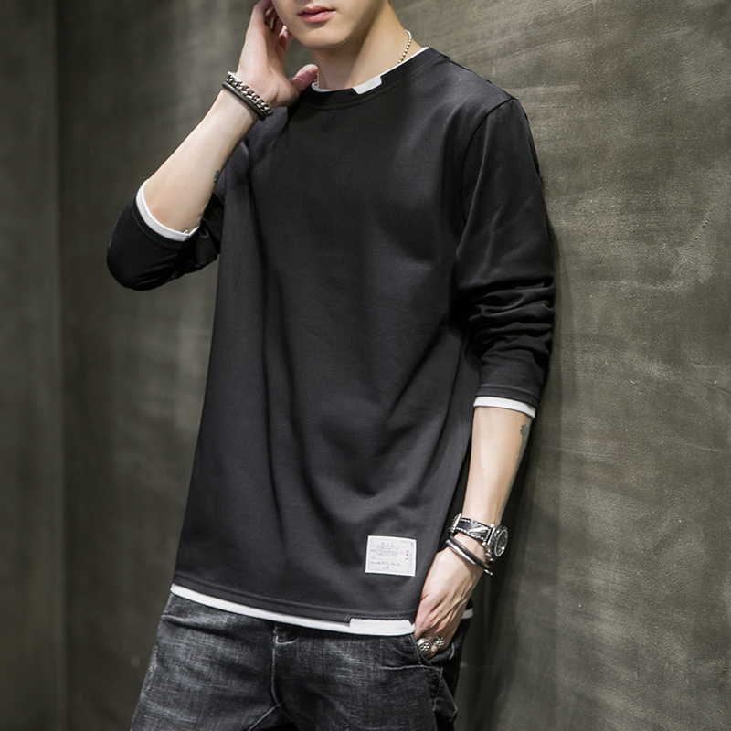 긴 소매 티셔츠 남자의 가을 옷 학생 청소년 유행 탑 소년 가을 옷 라운드 넥 스웨터 면 베이스 셔츠스토어 가기