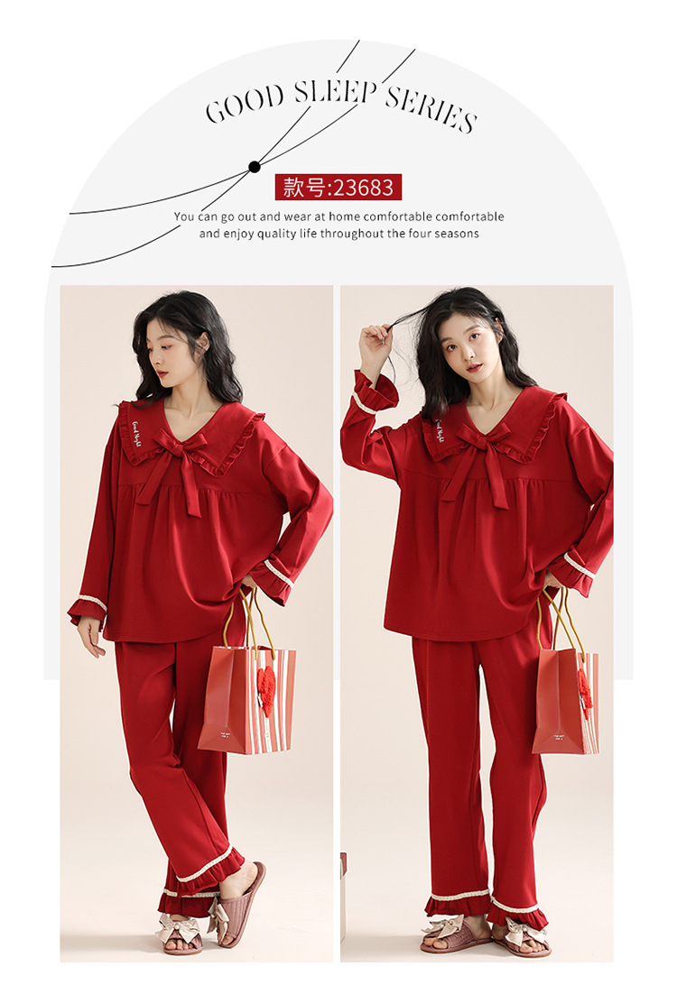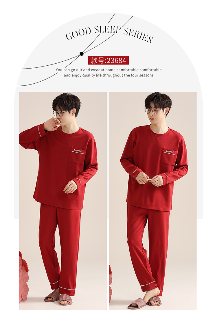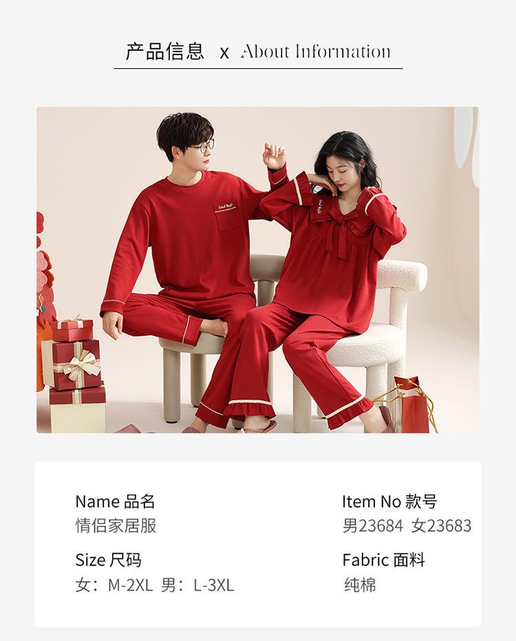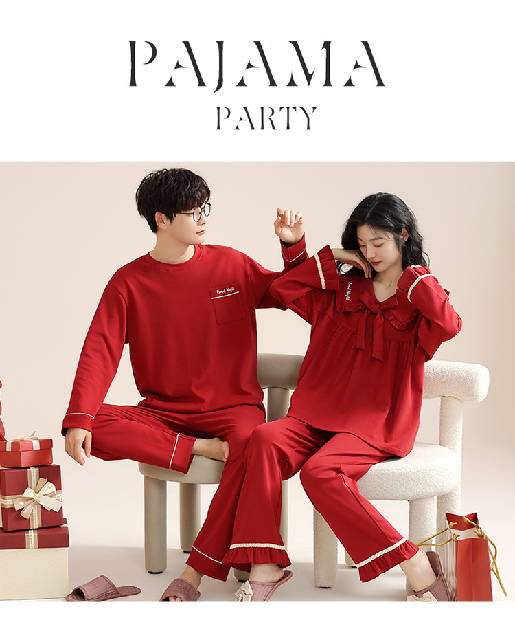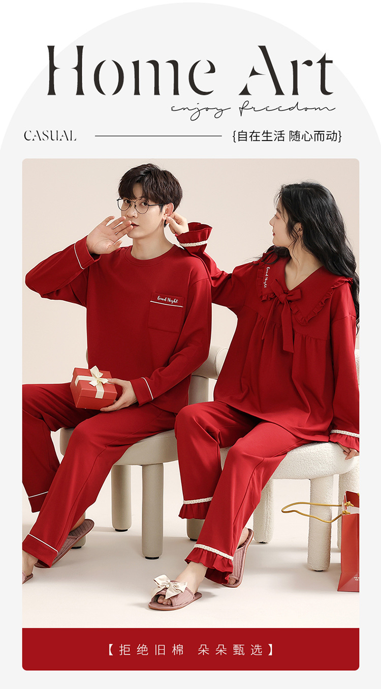 빨간 커플 잠옷 여자의 봄과 가을 새로운 면 긴 소매 남자의 새해 결혼식 플러스 사이즈 가정 옷 세트스토어 가기