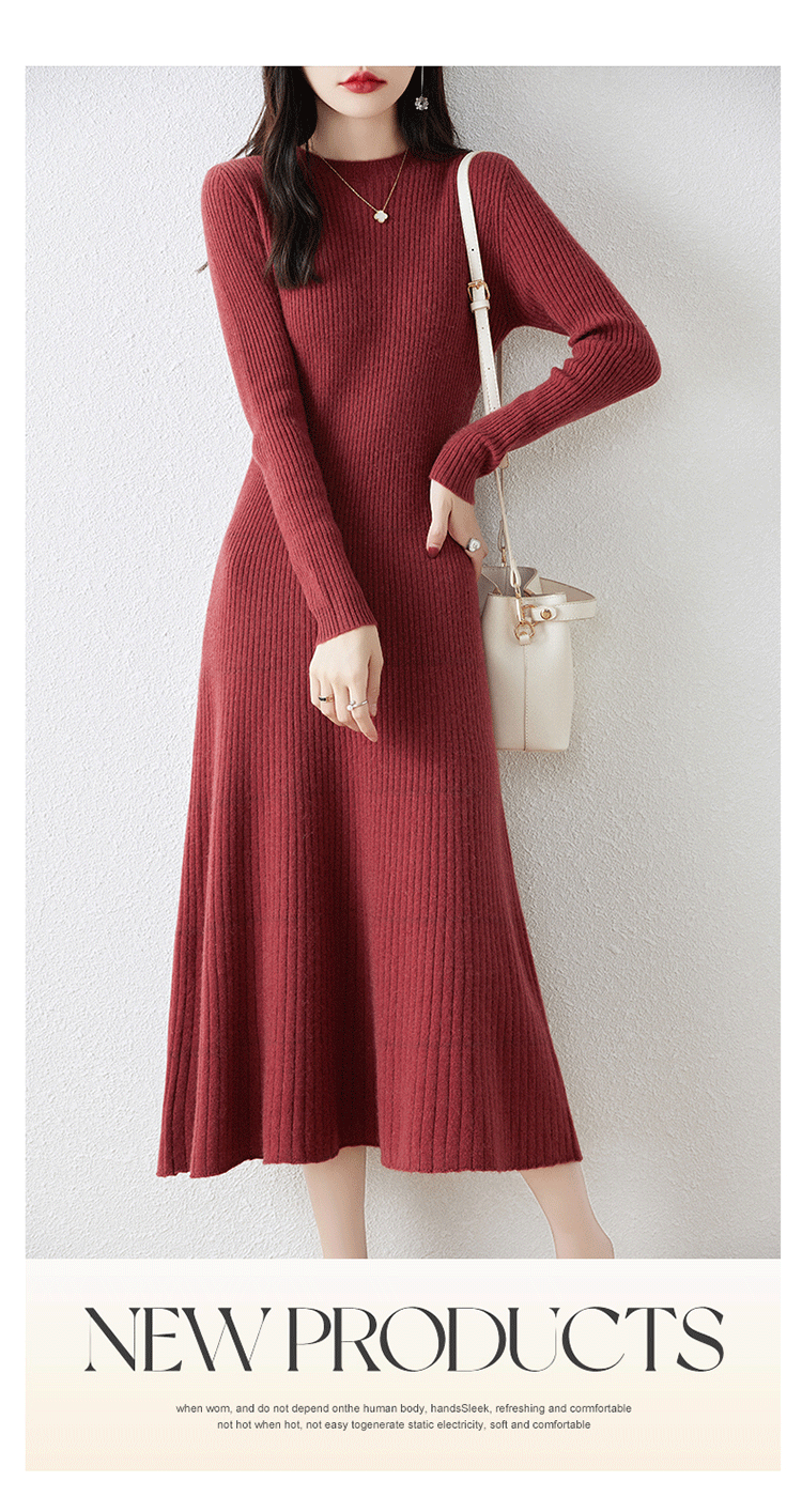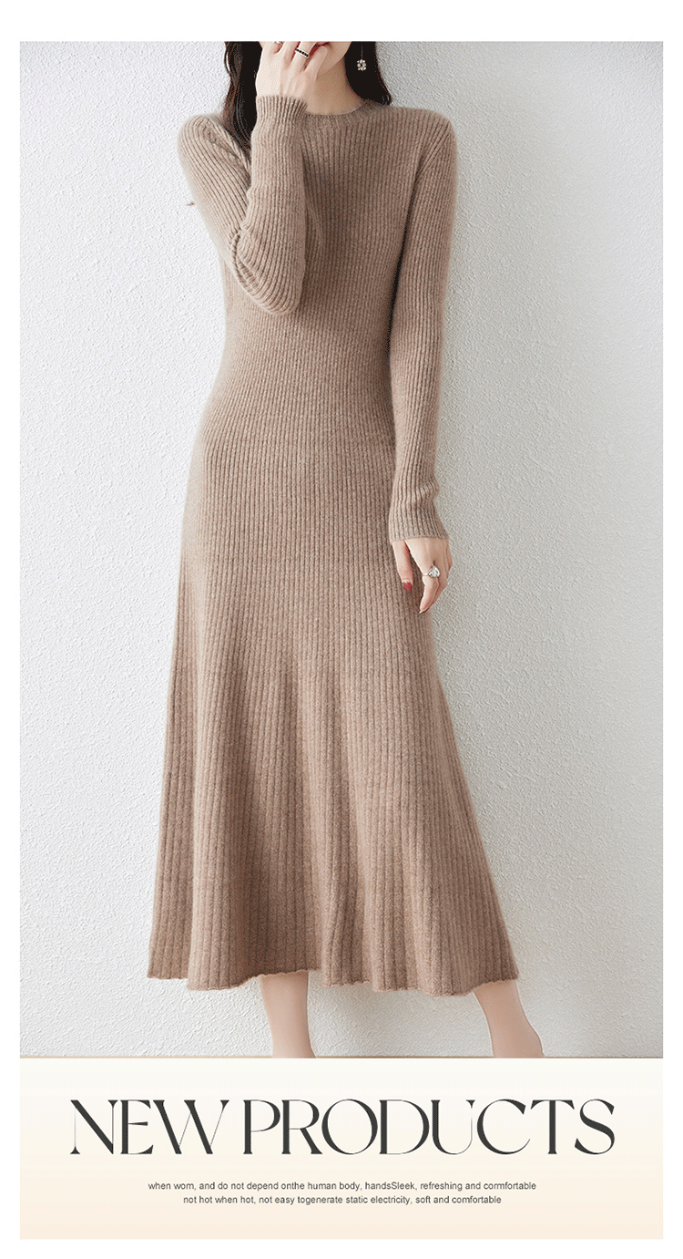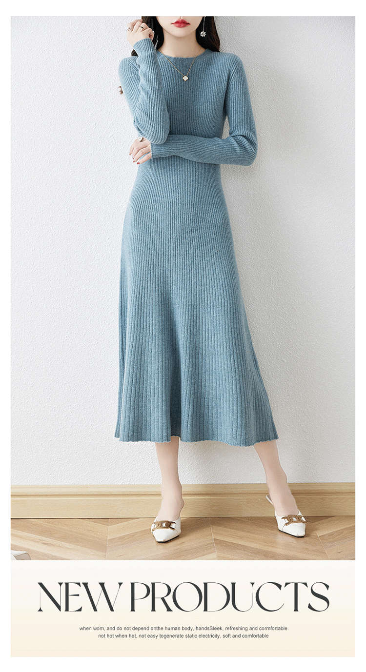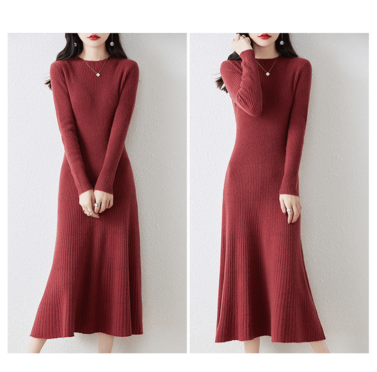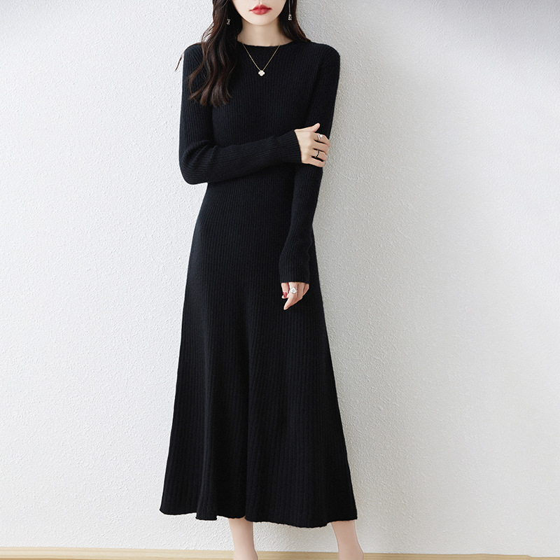 크루넥 울 니트 원피스 어린이 가을과 겨울 중간 길이 슬림 핏 슬리밍 스웨터 원피스 무릎 위 긴 소매 베이스 원피스스토어 가기
