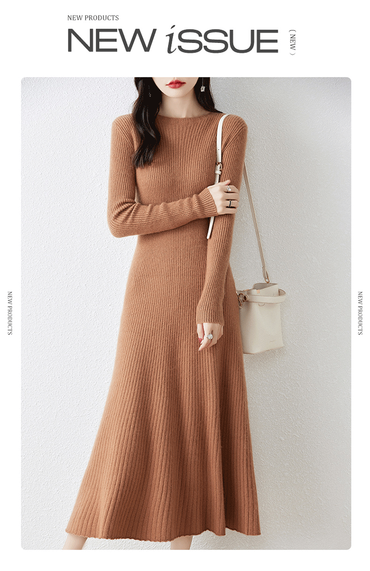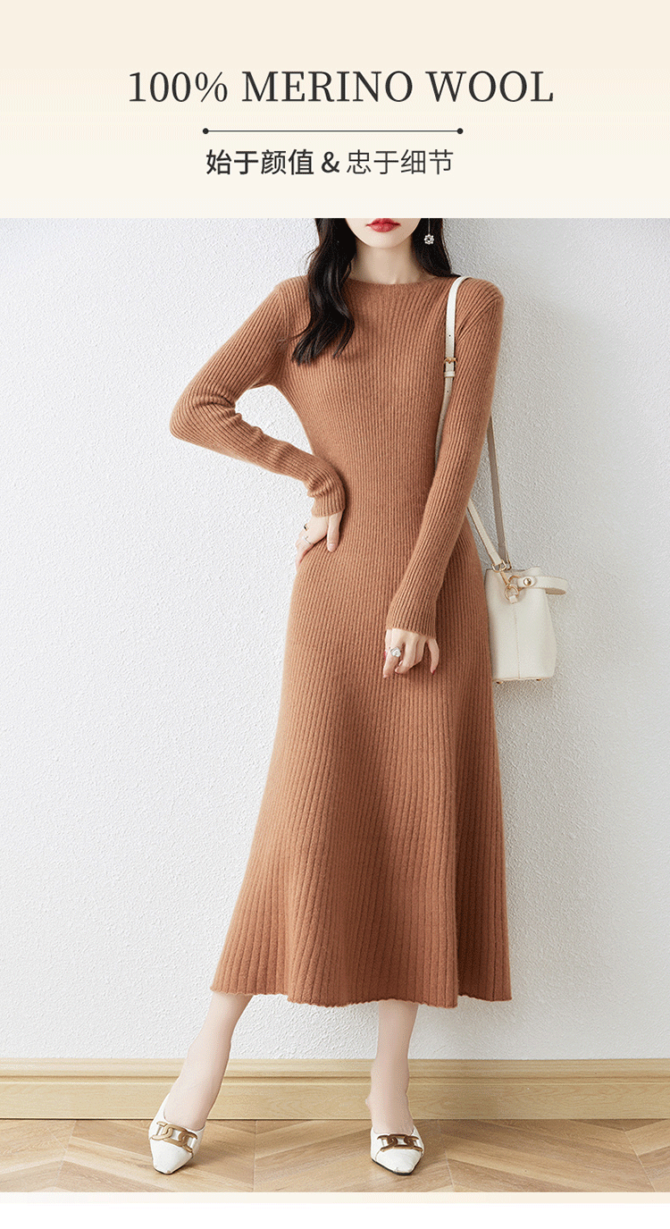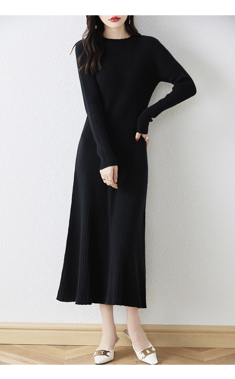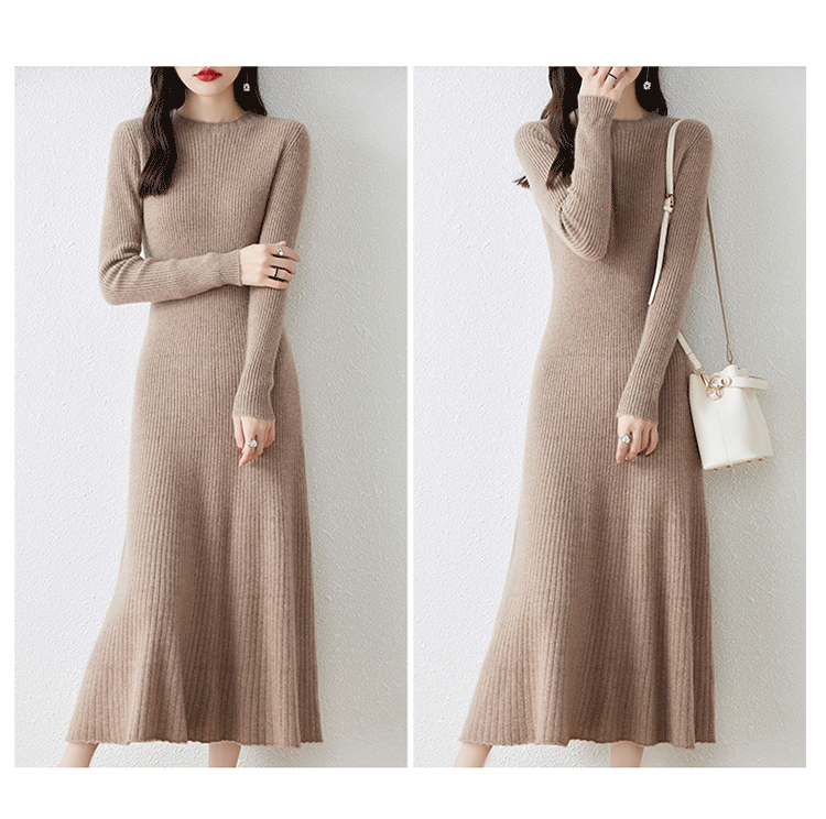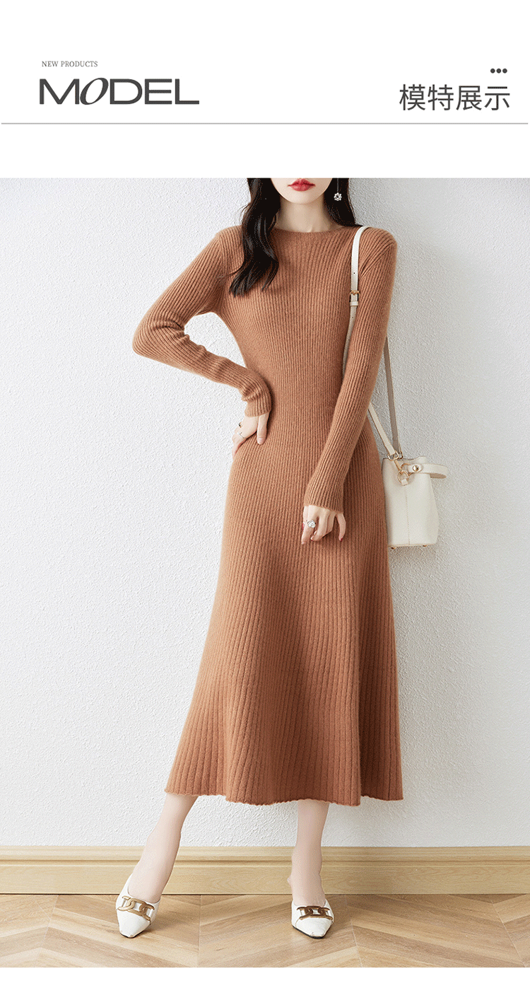 크루넥 울 니트 원피스 어린이 가을과 겨울 중간 길이 슬림 핏 슬리밍 스웨터 원피스 무릎 위 긴 소매 베이스 원피스스토어 가기