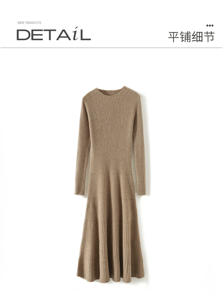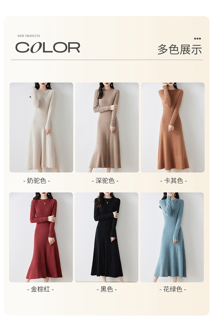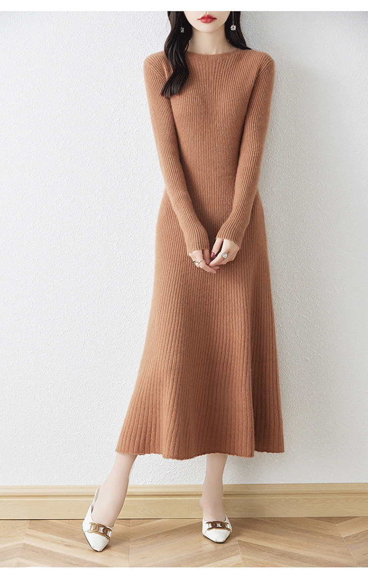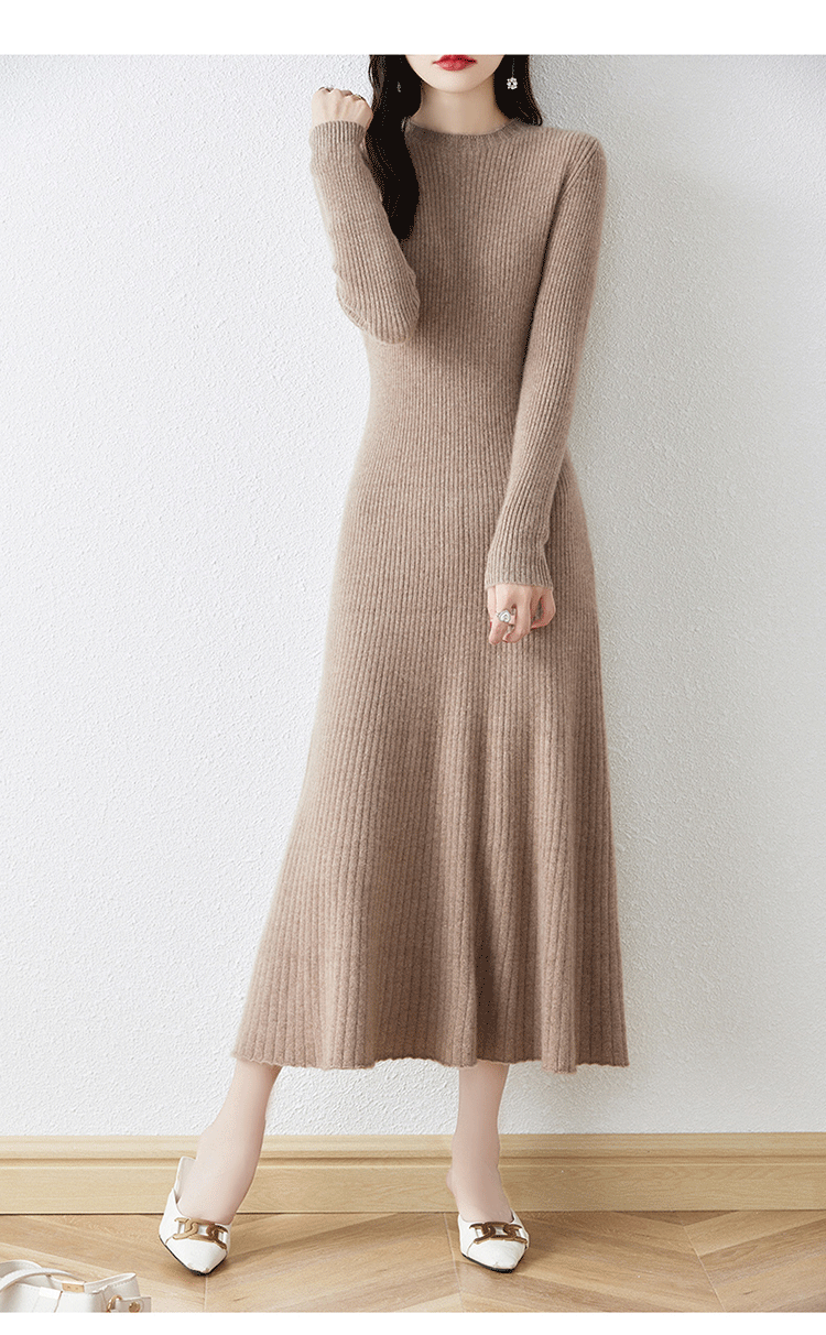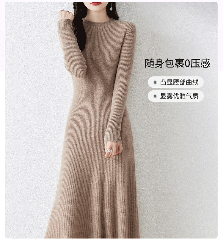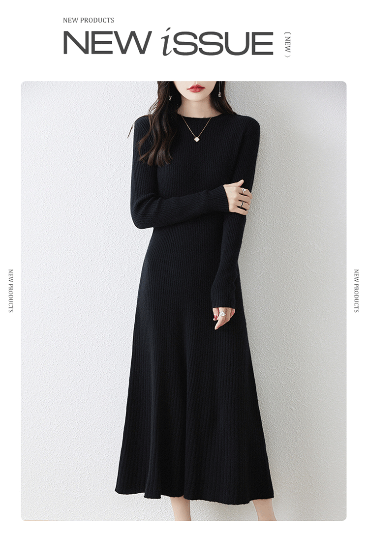 크루넥 울 니트 원피스 어린이 가을과 겨울 중간 길이 슬림 핏 슬리밍 스웨터 원피스 무릎 위 긴 소매 베이스 원피스스토어 가기