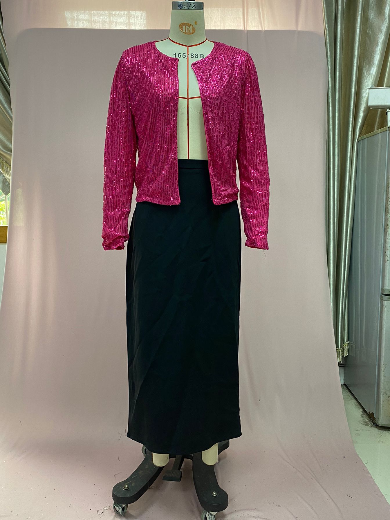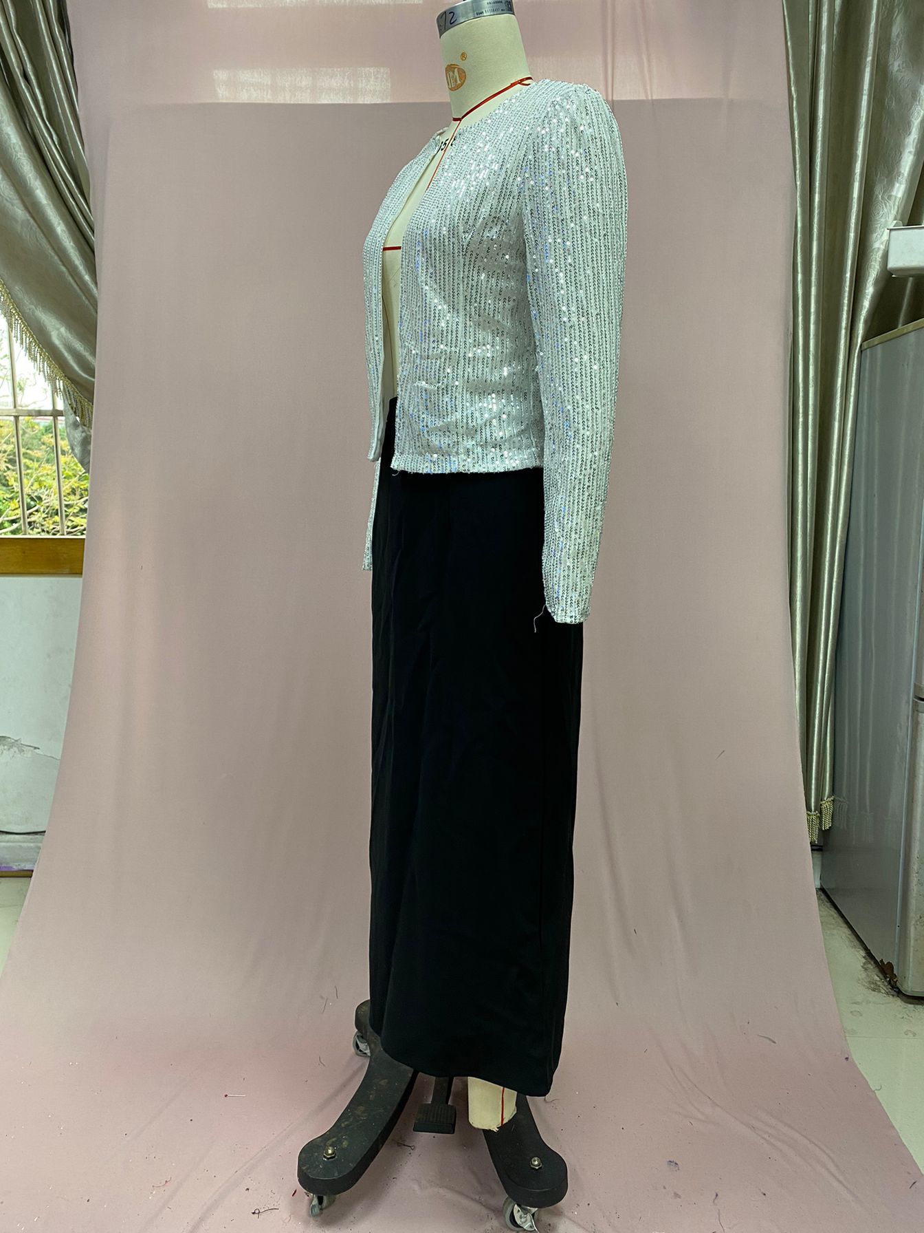 2026년 봄 신상 유럽 및 미국 여성 패션 스탠드 칼라 배색 스팽글 재킷 짧은 캐주얼 다용도 소형 재킷