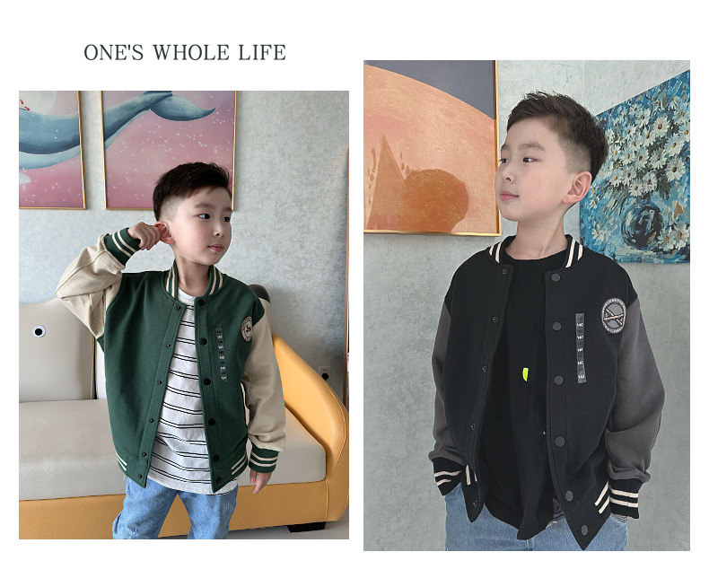 소셜 웨스트 파인 하우스 아동 의류 봄과 가을 어린이 야구 세트 코트 소년과 소녀를위한 카디건 최고 캐주얼 스포츠 재킷