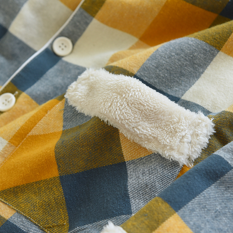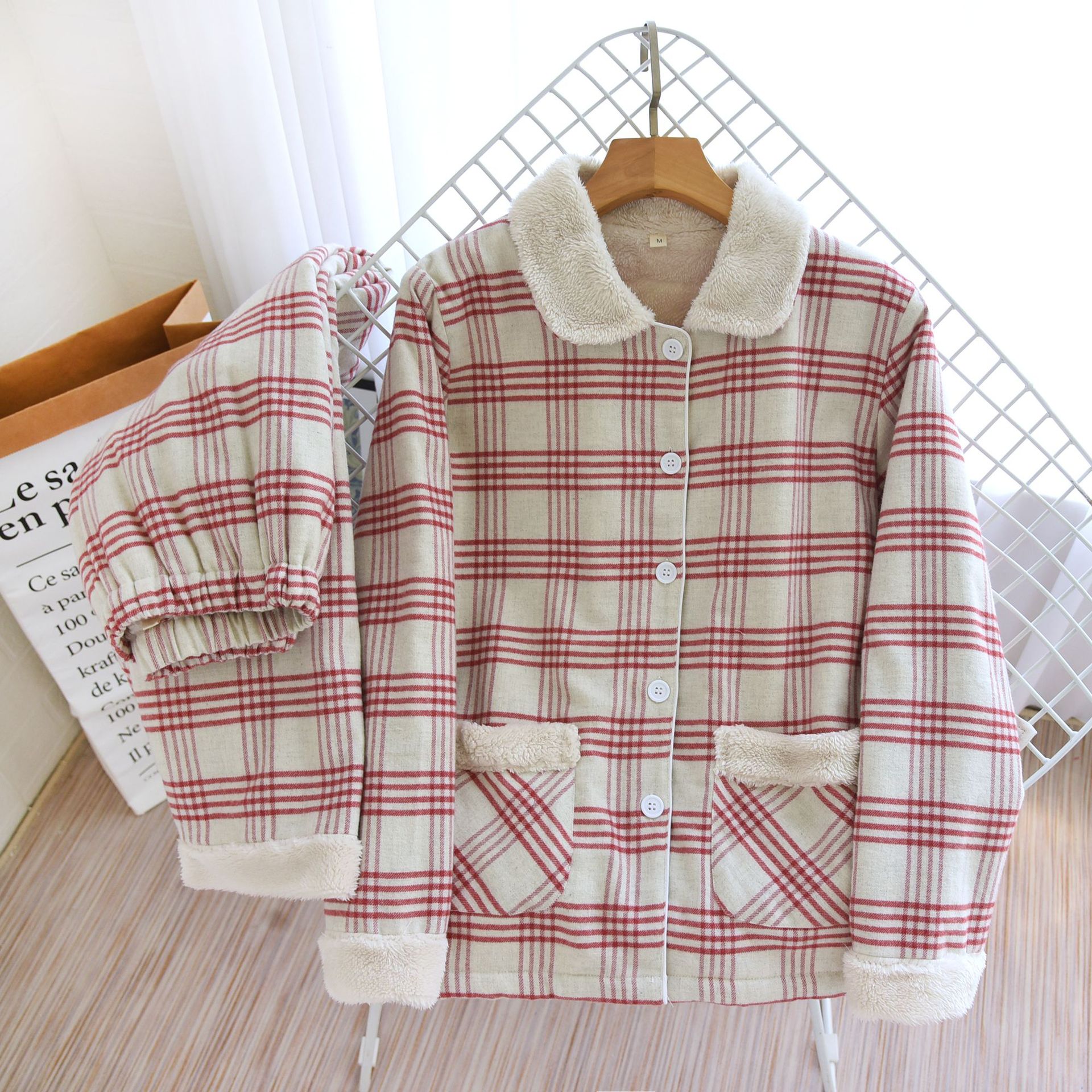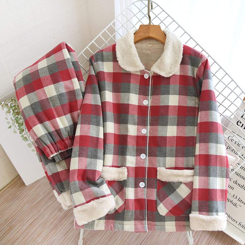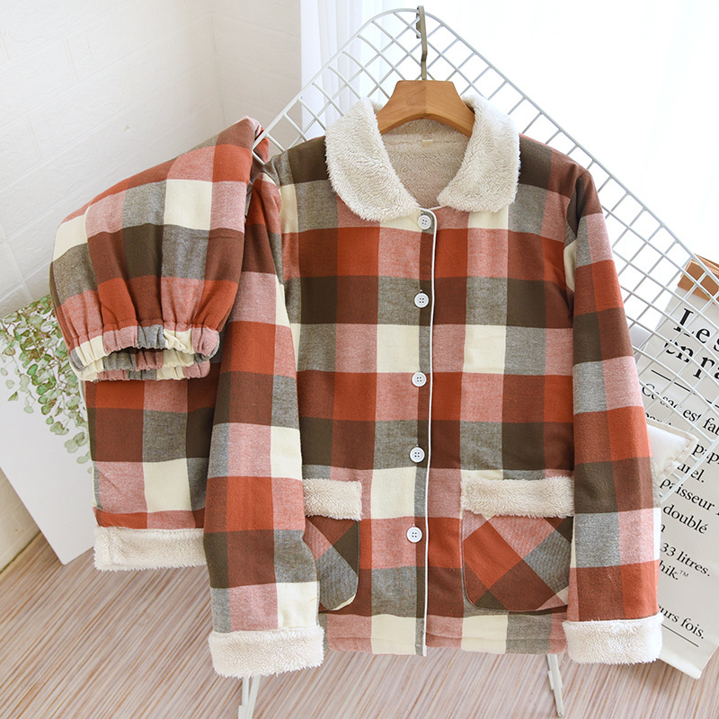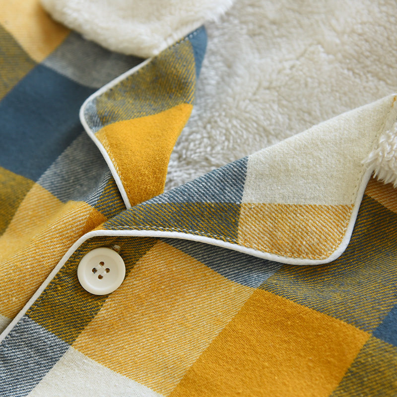 가을과 겨울 새로운 두꺼운 커플 격자 무늬 캐주얼 잠옷 더블 레이어 벨벳 램 벨벳 따뜻한 남성과 여성의 가정복