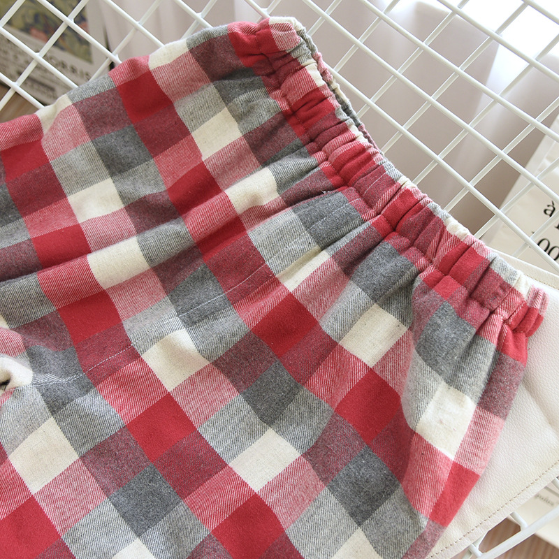 • 더블 레이어 플란넬 양녀 슬리브-빨간색 흰색 격자