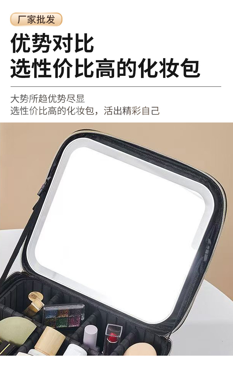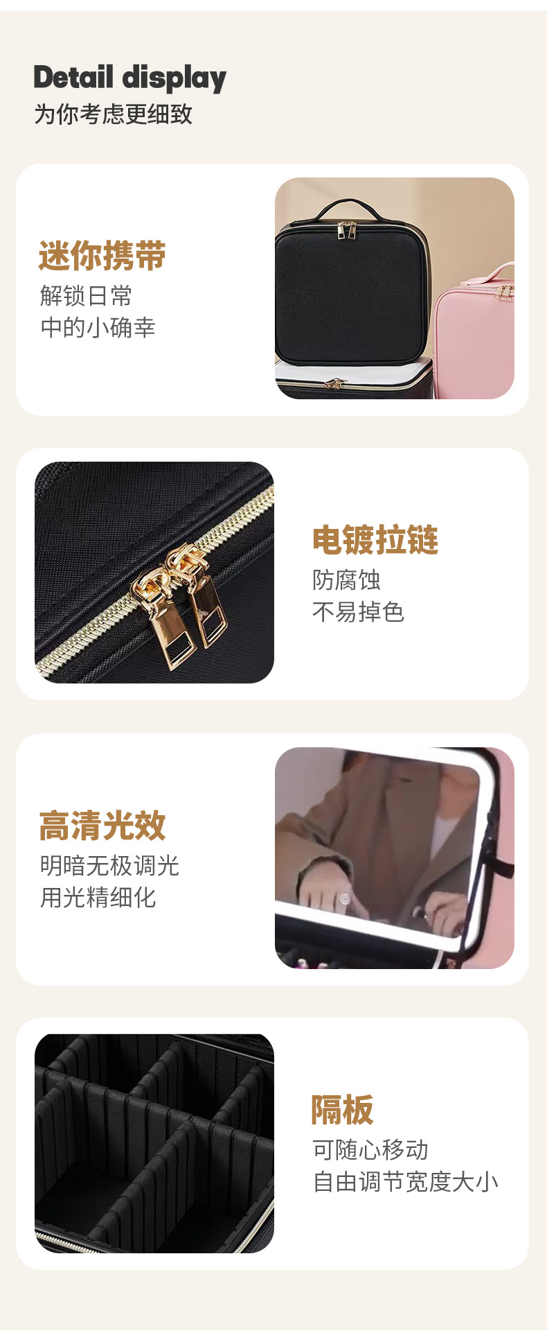 LED 조명 거울이있는 화장품 가방 메이크업 아티스트를위한 대용량 메이크업 케이스 분리형 및 청소가 쉬운 메이크업 가방스토어 가기