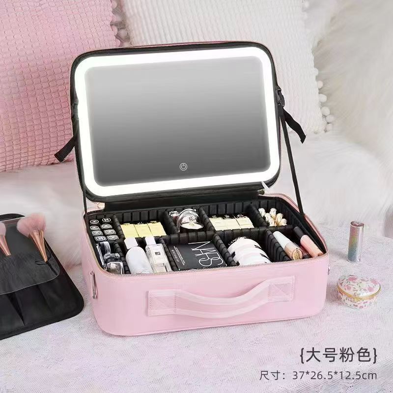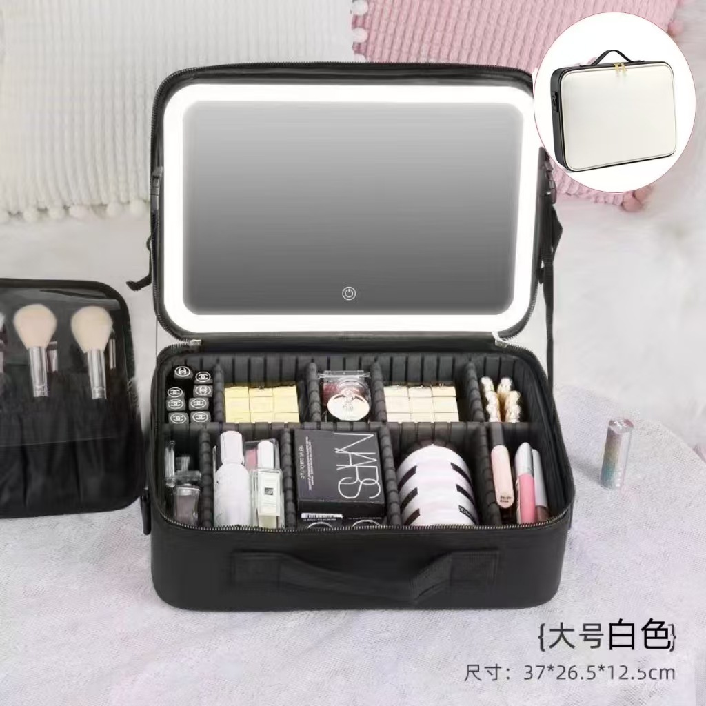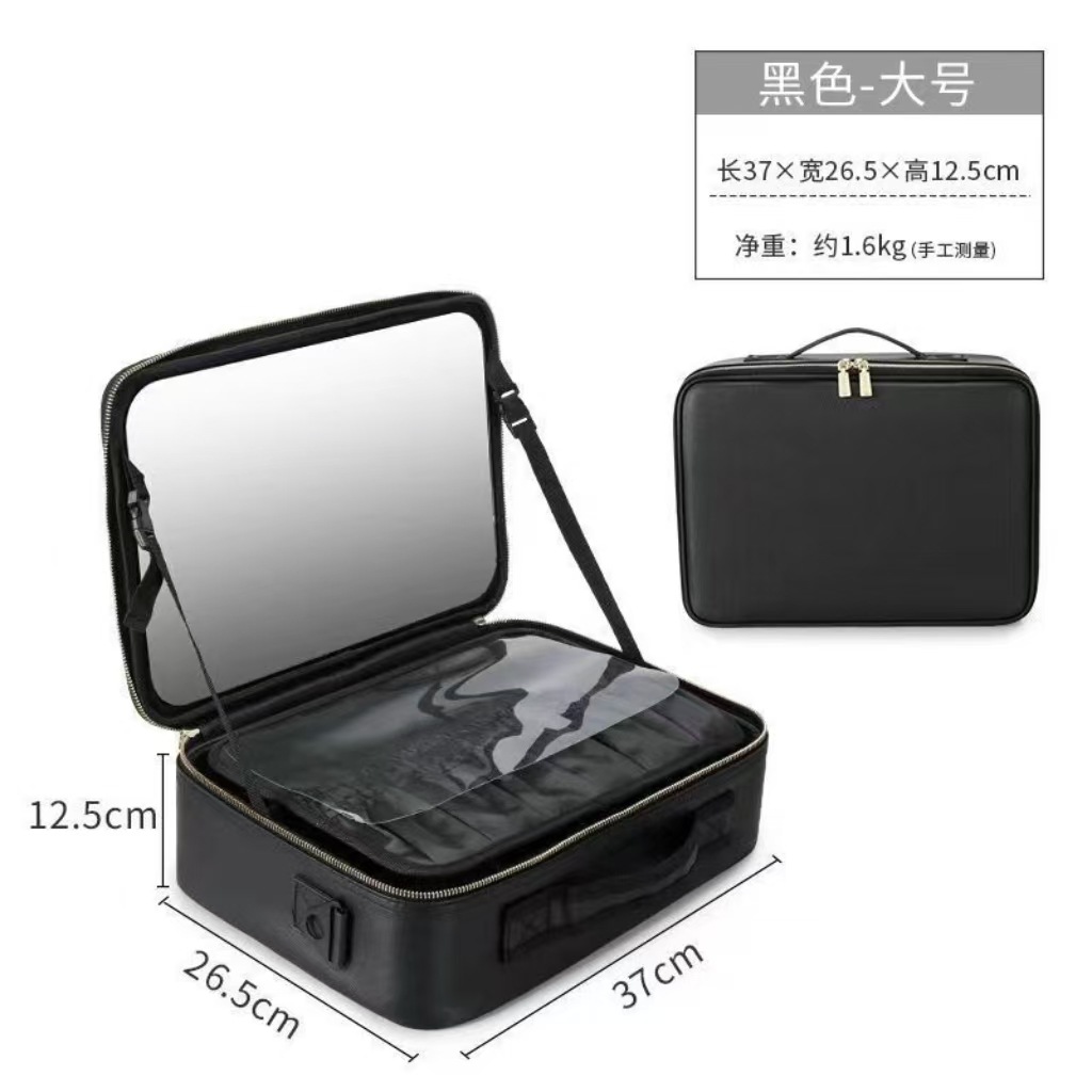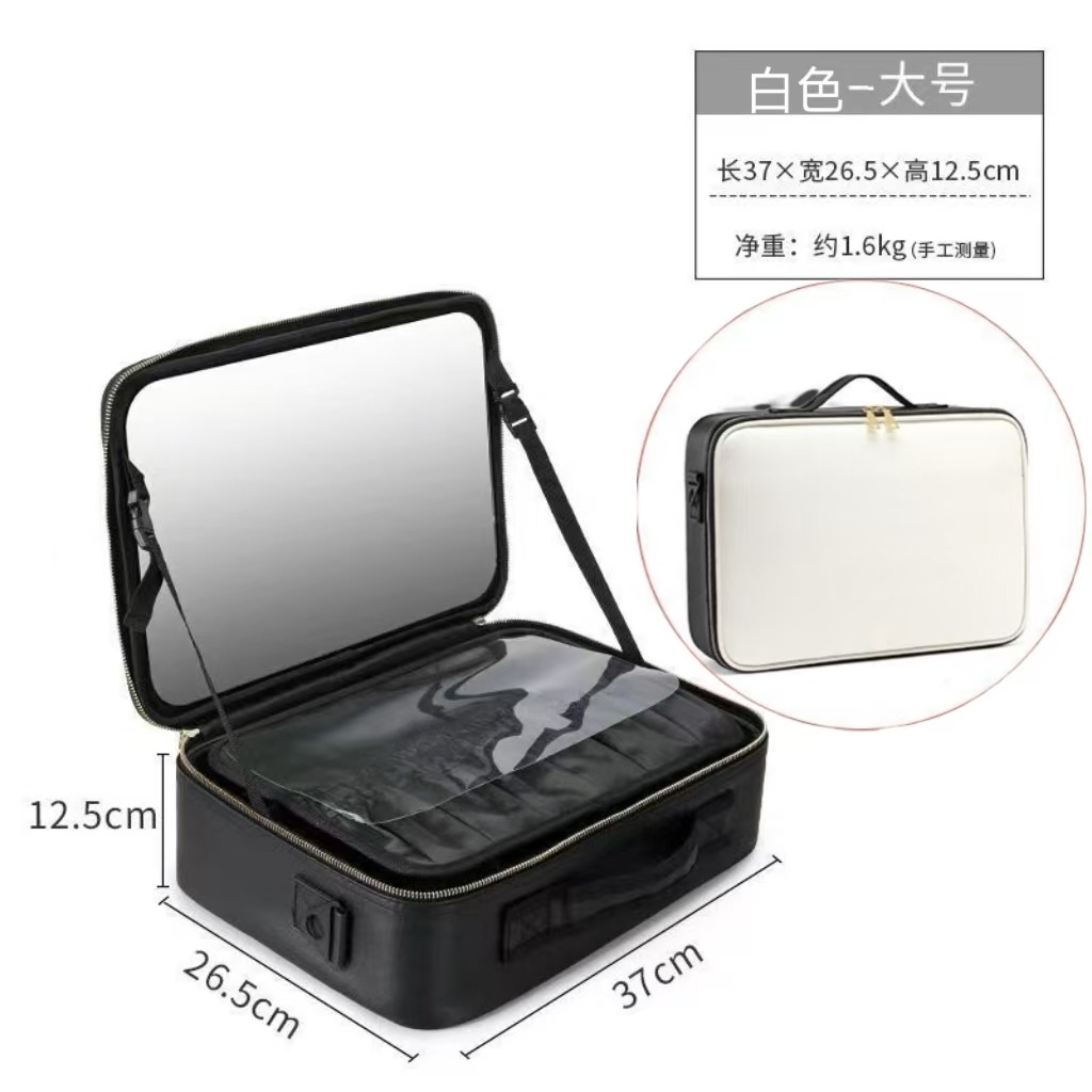 LED 조명 거울이있는 화장품 가방 메이크업 아티스트를위한 대용량 메이크업 케이스 분리형 및 청소가 쉬운 메이크업 가방