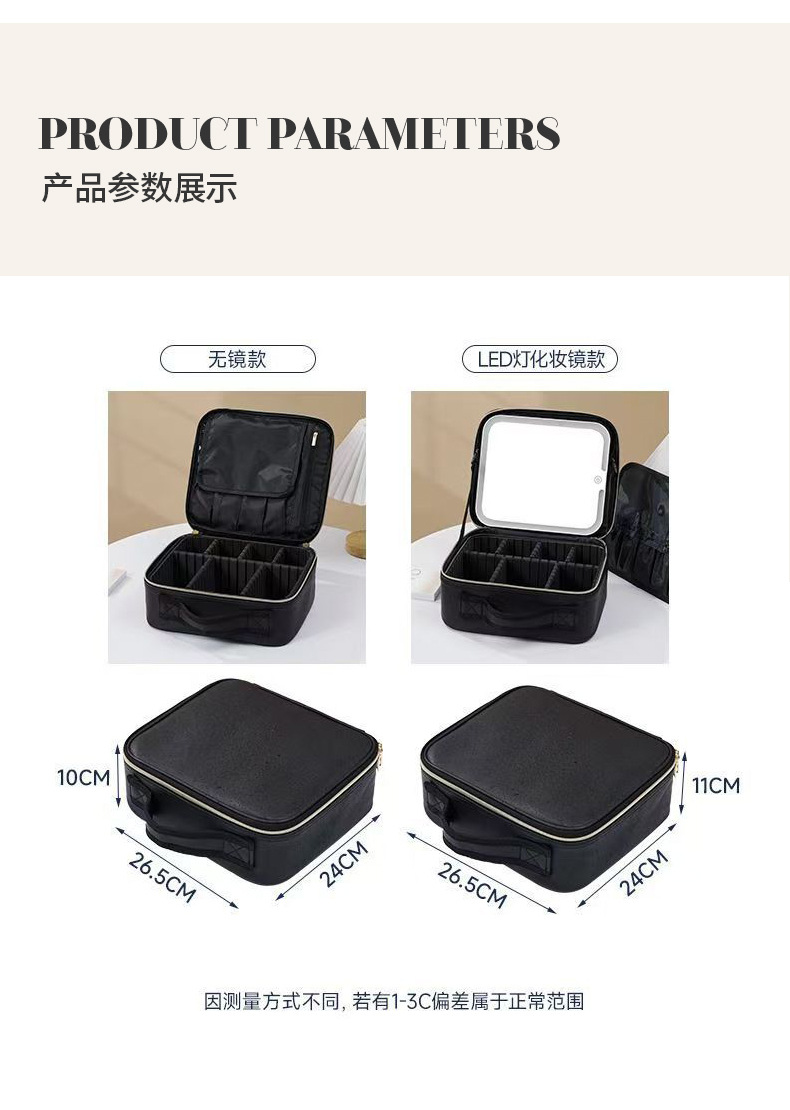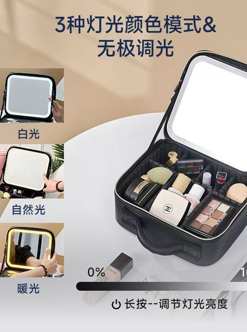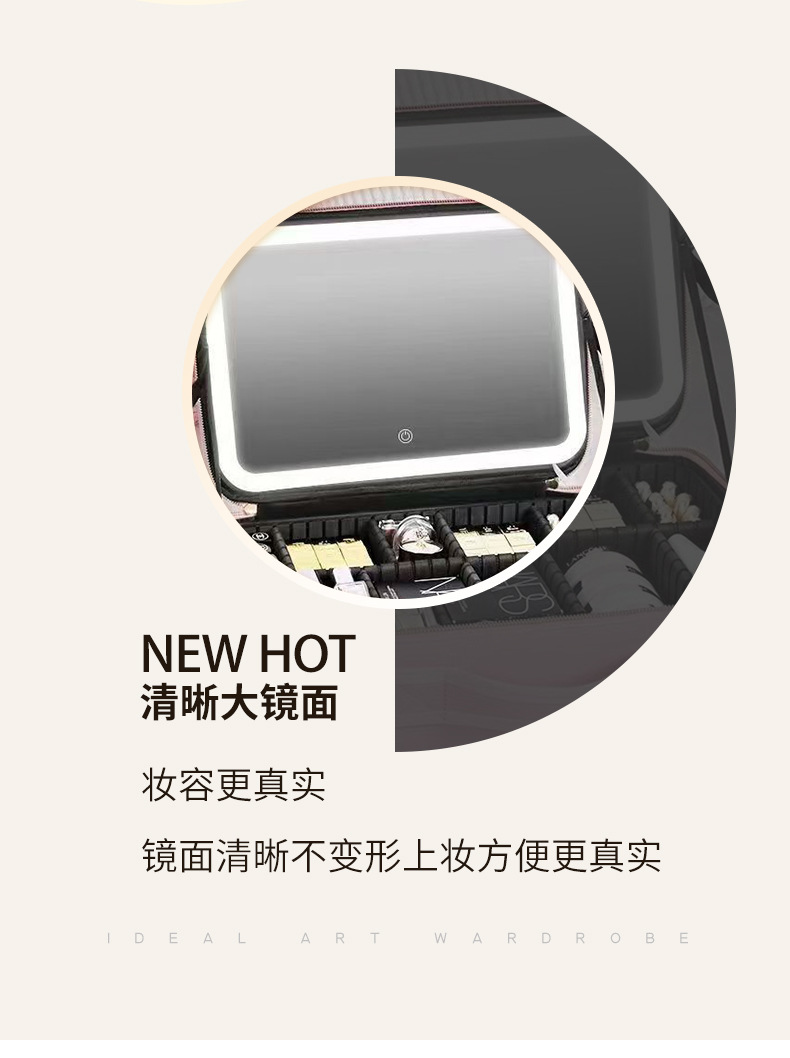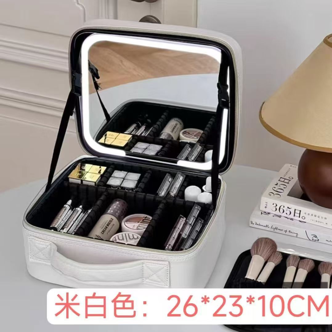 LED 조명 거울이있는 화장품 가방 메이크업 아티스트를위한 대용량 메이크업 케이스 분리형 및 청소가 쉬운 메이크업 가방