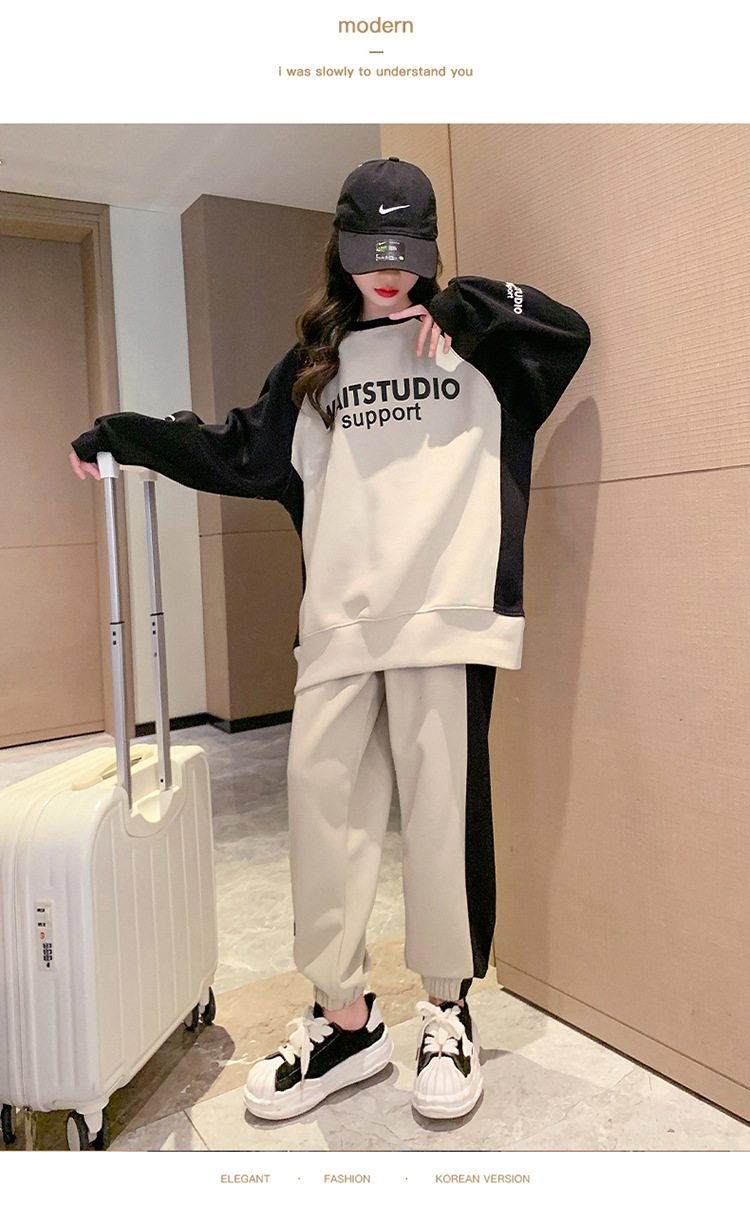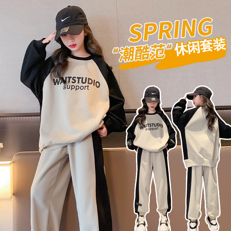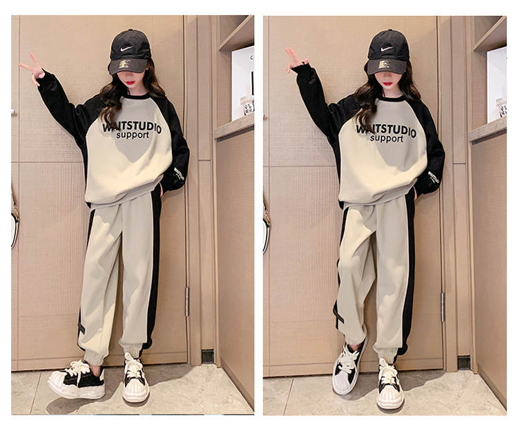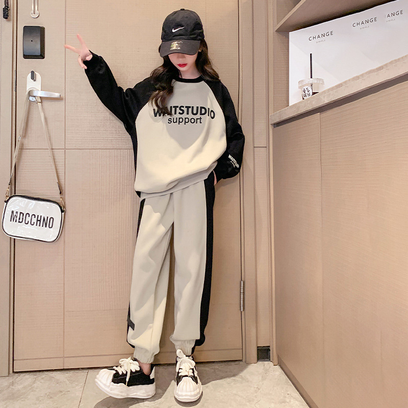 여아 가을과 겨울 옷 세트 2023 New Zhongda 어린이 소녀 봄과 가을 기모 두꺼운 캐주얼 투피스 세트스토어 가기