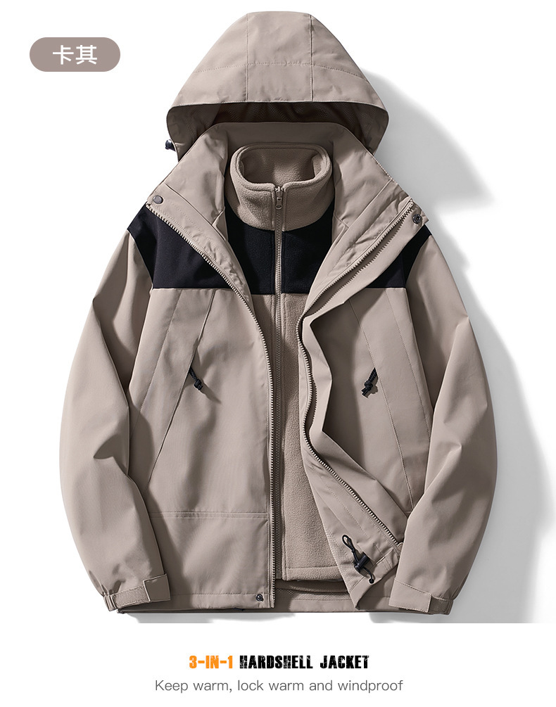 가을과 겨울 쓰리인원 러쉬 옷 남여공용 두꺼운 기모 투피스 분리형 등산 세트 방풍 재킷
