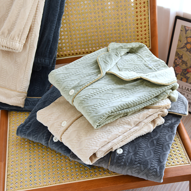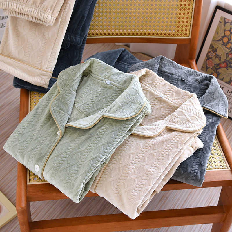 커플 잠옷 남자의 가을과 겨울 플란넬 기모 두꺼운 산호 양털 여자의 가정 옷 세트 느슨한