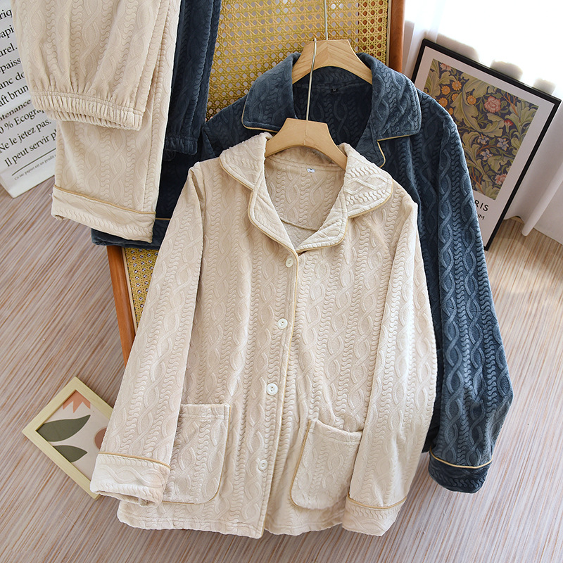 커플 잠옷 남자의 가을과 겨울 플란넬 기모 두꺼운 산호 양털 여자의 가정 옷 세트 느슨한스토어 가기