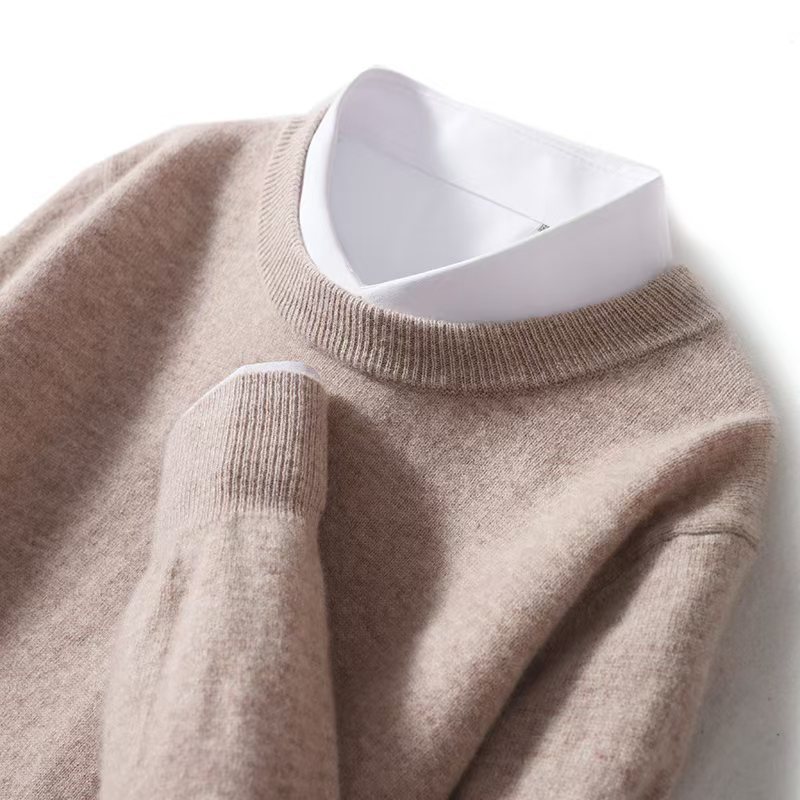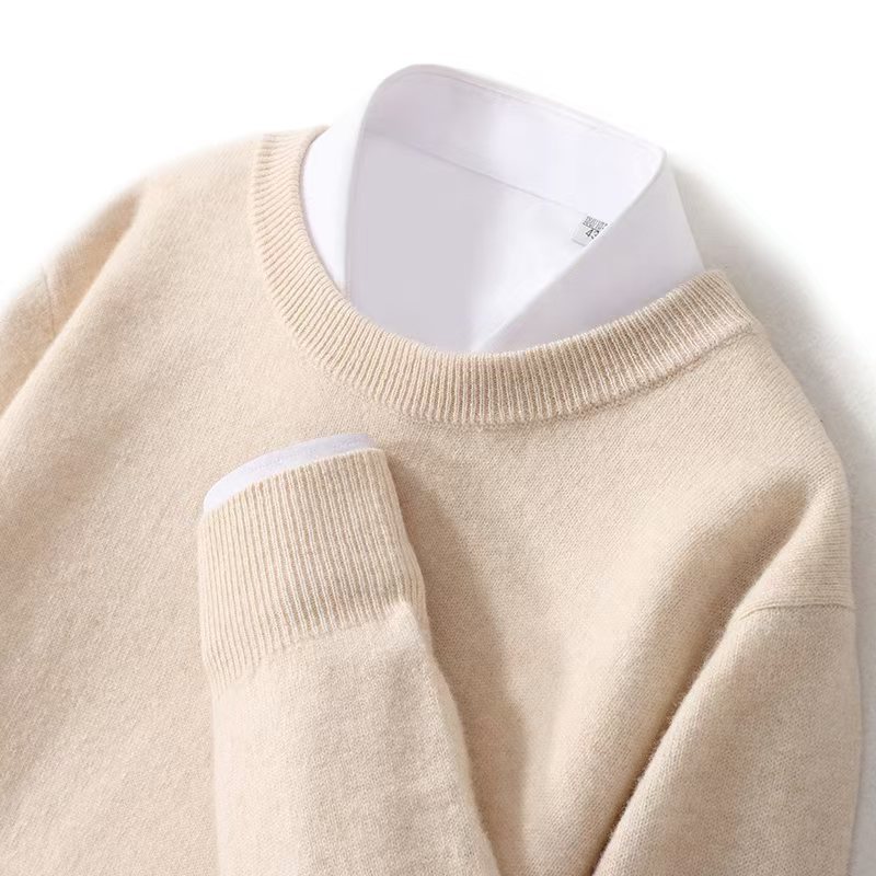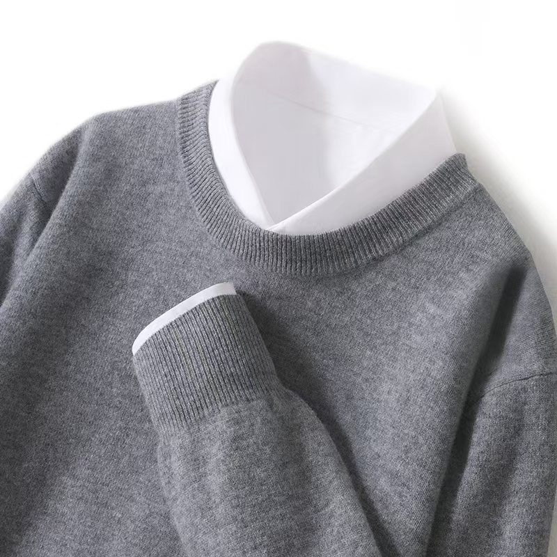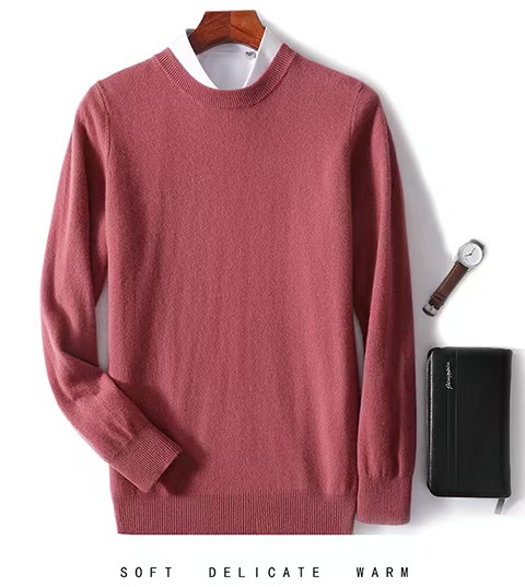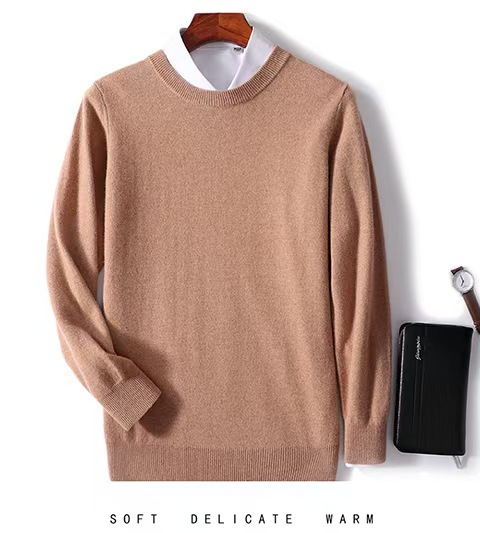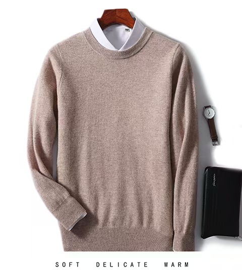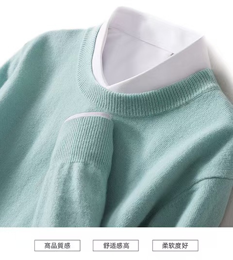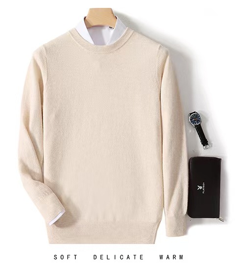 가을과 겨울 새로운 남자의 순수 울 스웨터 라운드 넥 단색 스웨터 기본 울 니트웨어 긴 소매 내부 림