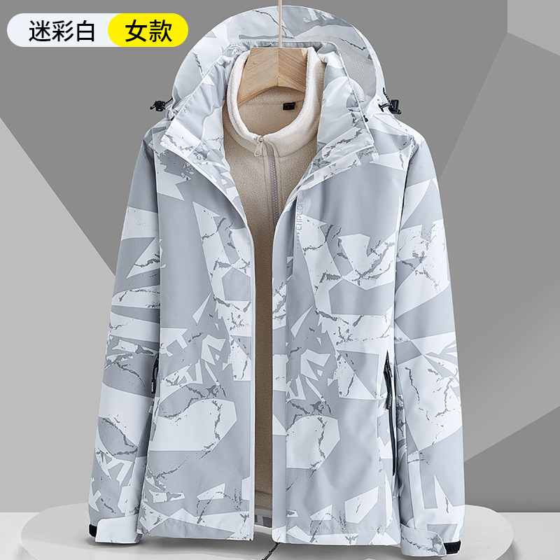가을과 겨울 위장 폭행 의류 남성과 여성 3-in-one 2-piece 이동식 라이너 패딩 기모 등산 자켓 도매