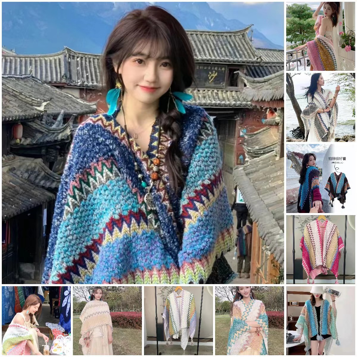 윈난 리장 숄 팥 팥 같은 담요 에스닉 스타일 관광 외부 케이프 코트 케이프 스카프 여성
