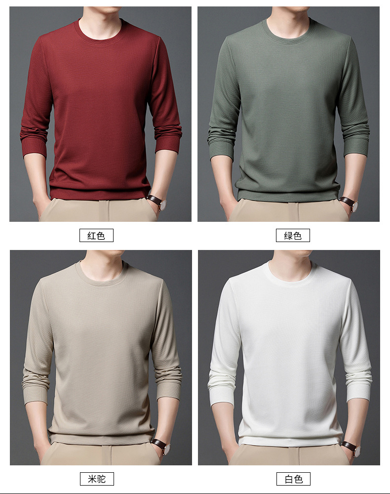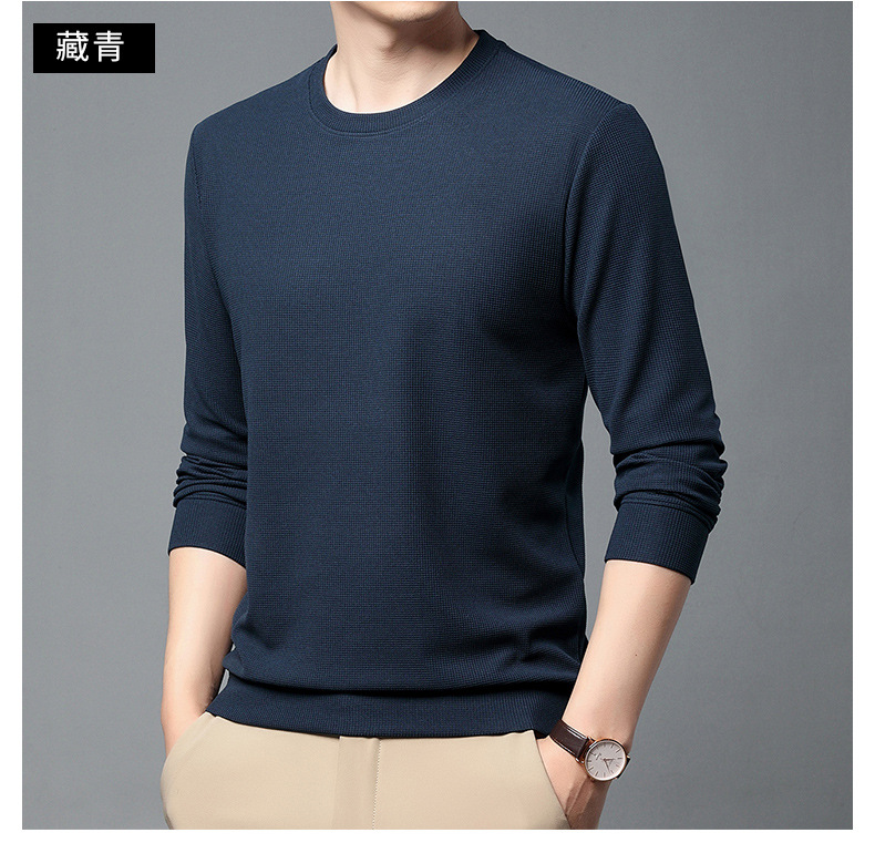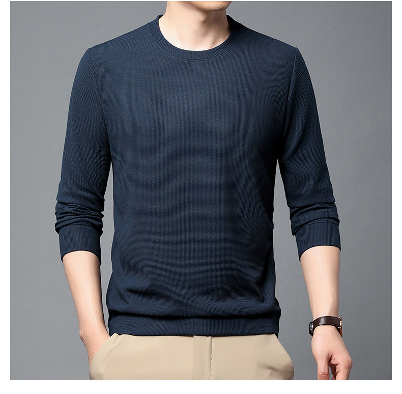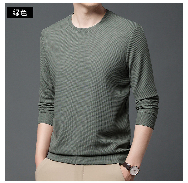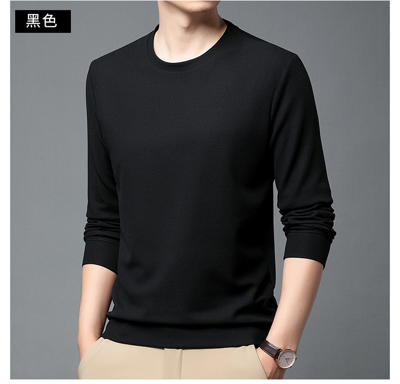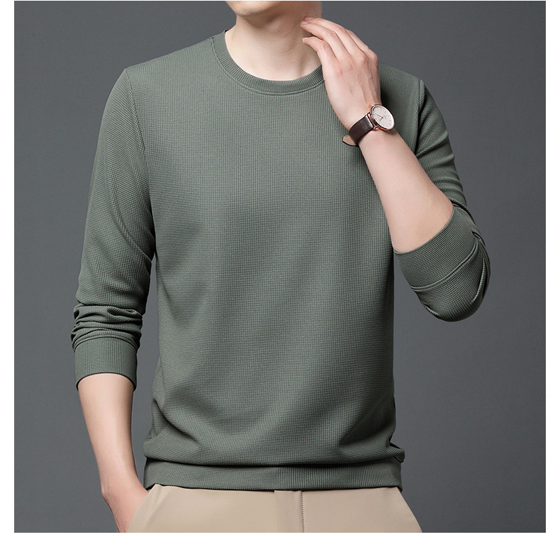 봄과 가을 남자의 긴 소매 크루 넥 스웨터 하이 퀄리티 와플 스트레치 슬림 바닥 셔츠 남성 자켓 머리카락의 세대스토어 가기