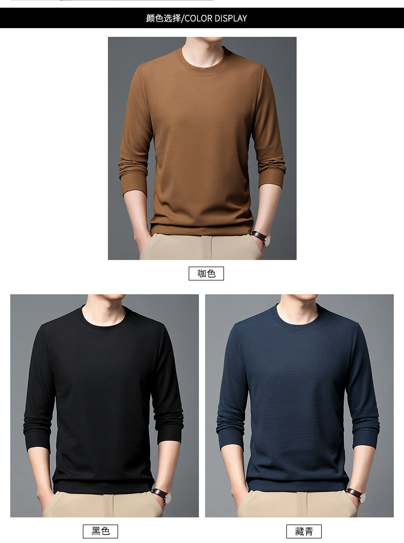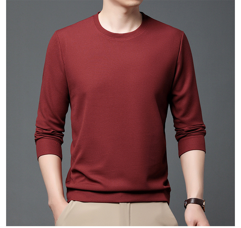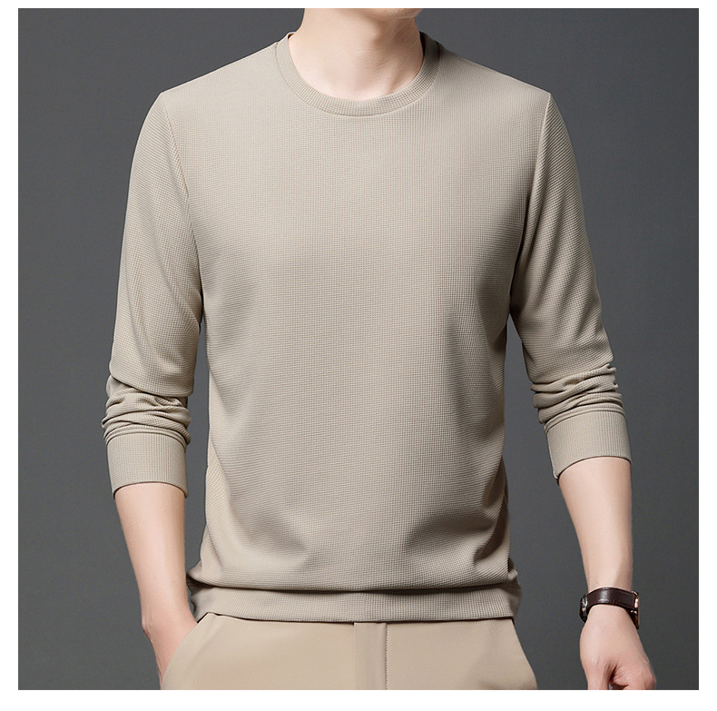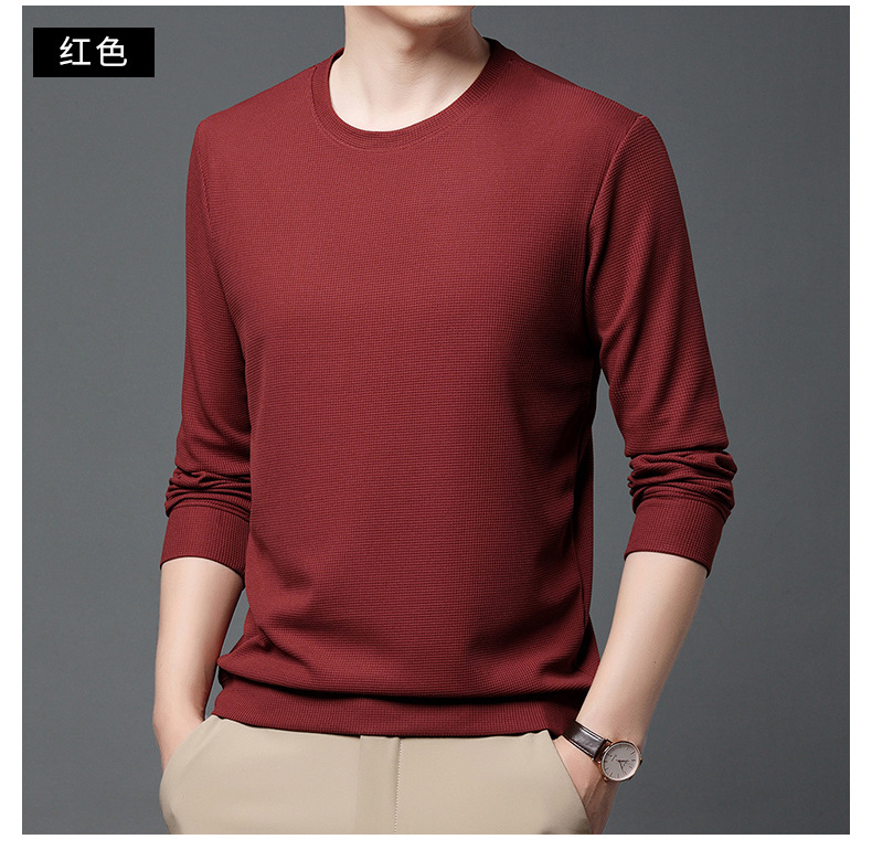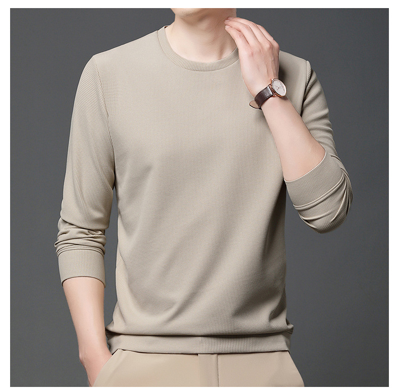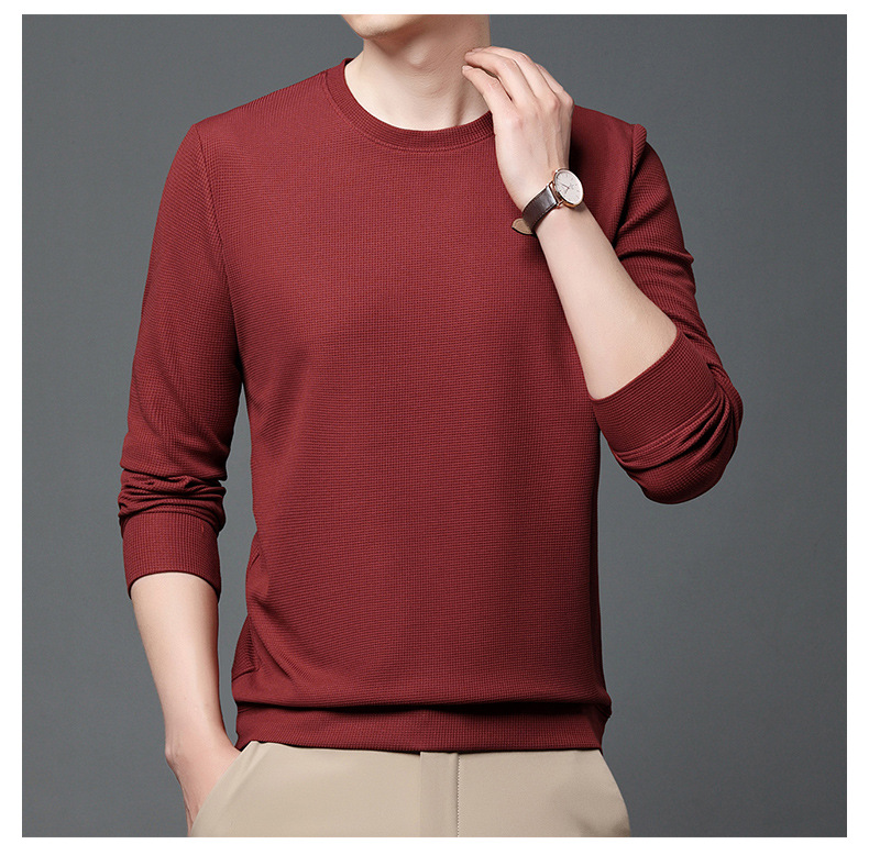봄과 가을 남자의 긴 소매 크루 넥 스웨터 하이 퀄리티 와플 스트레치 슬림 바닥 셔츠 남성 자켓 머리카락의 세대스토어 가기