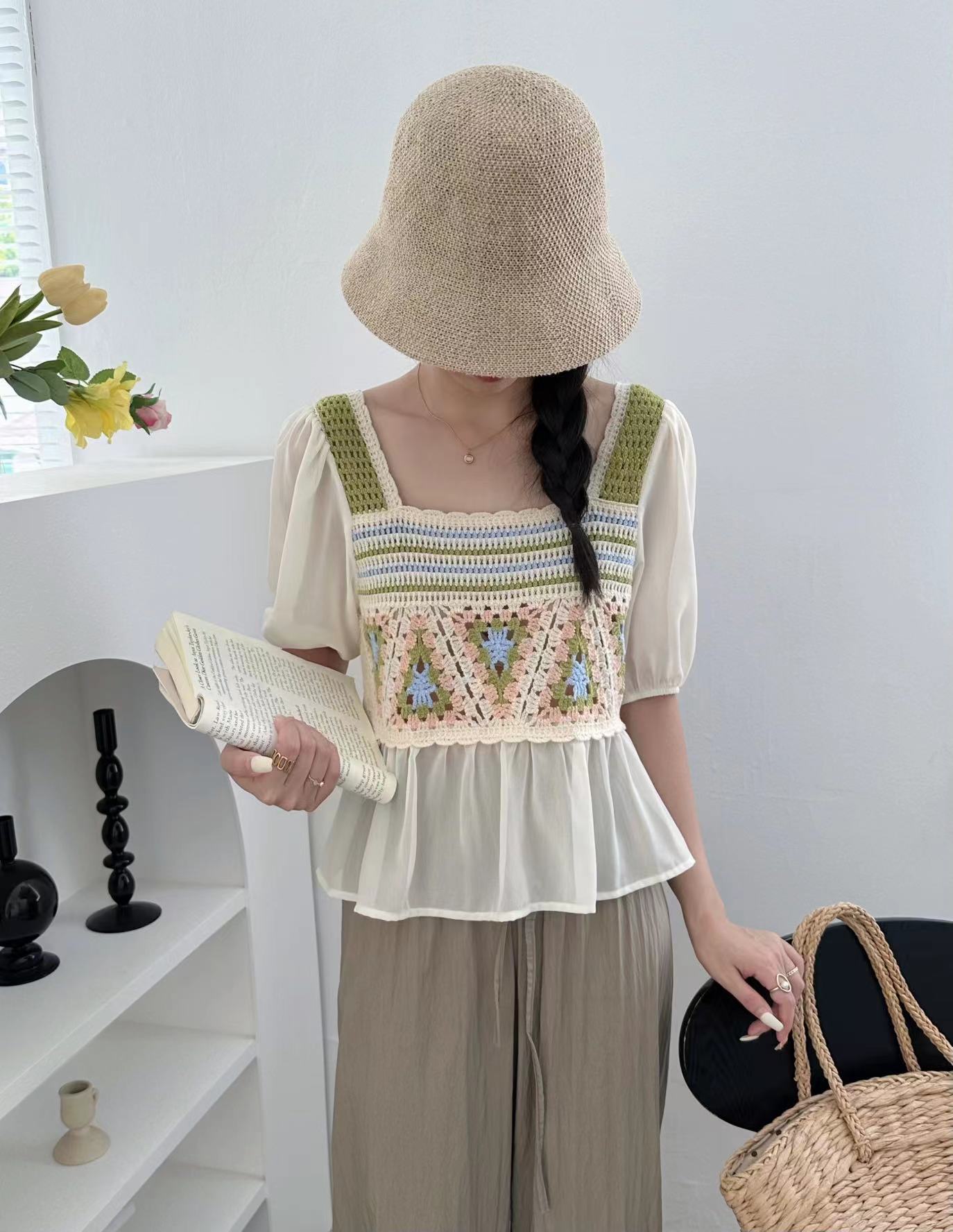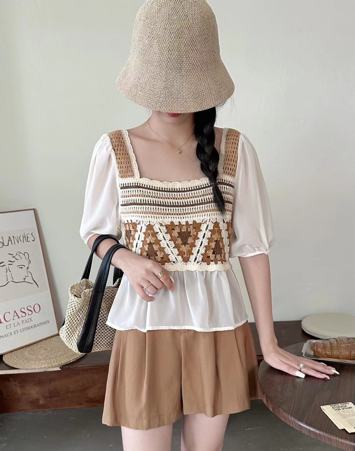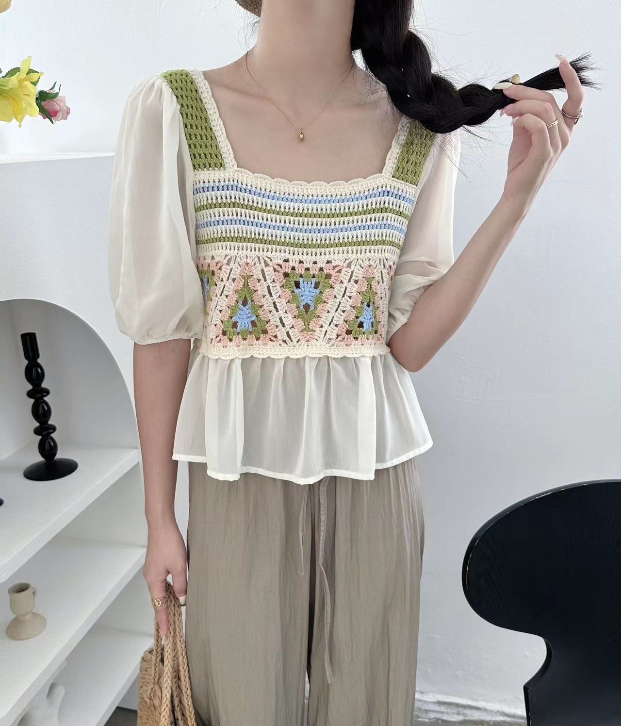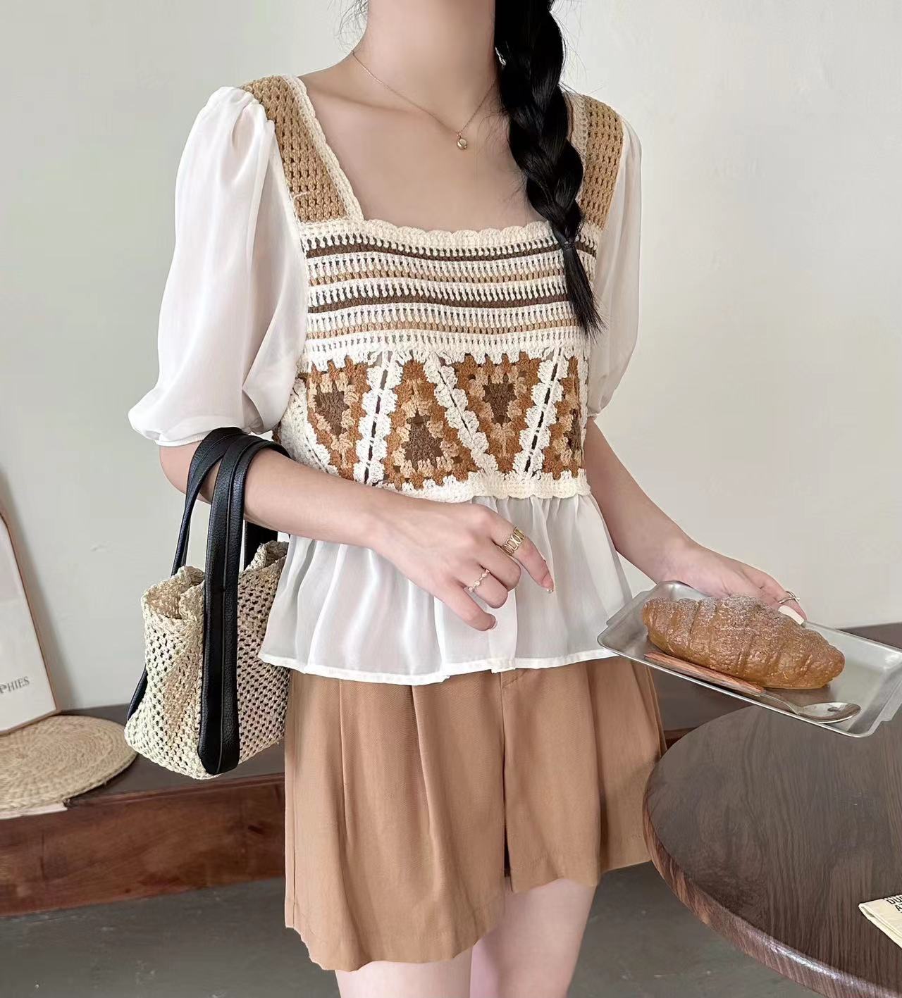 외부 반팔 쉬폰 셔츠 탑 여성의 순수한 욕망 달콤한 신선한 느슨한 배꼽 슬림 패션 다목적 겉옷스토어 가기