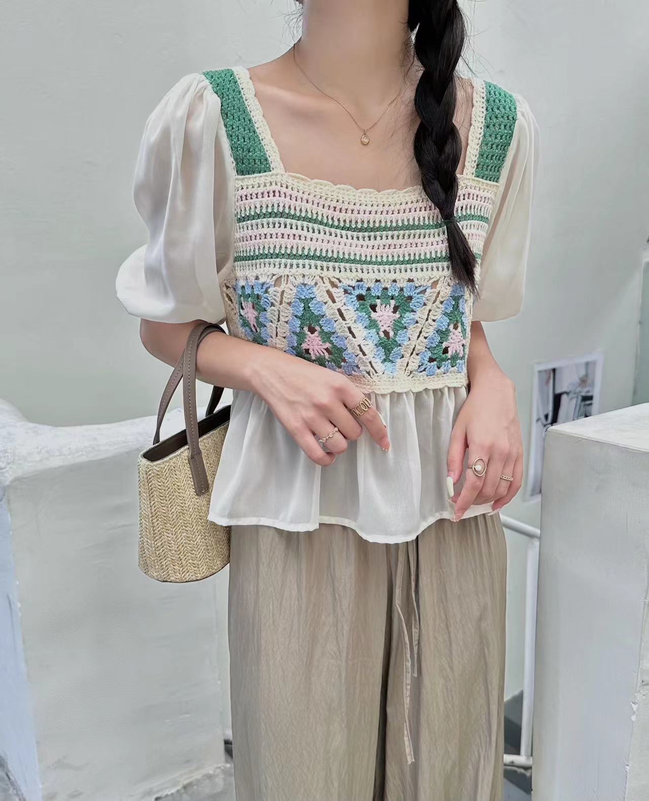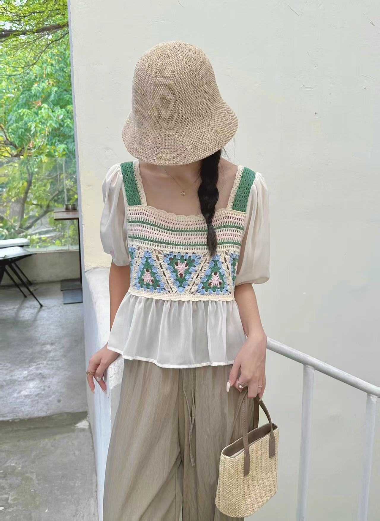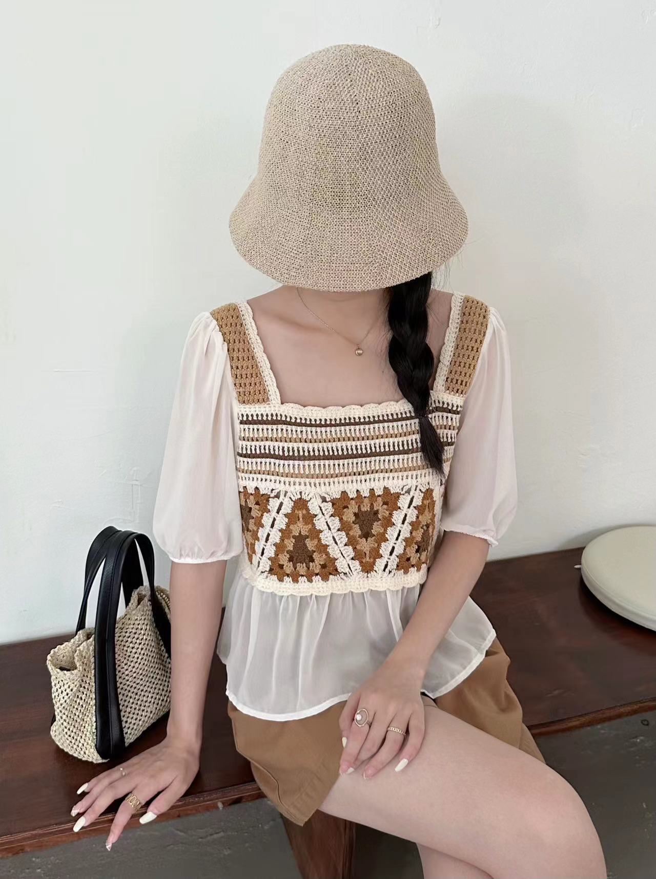 외부 반팔 쉬폰 셔츠 탑 여성의 순수한 욕망 달콤한 신선한 느슨한 배꼽 슬림 패션 다목적 겉옷스토어 가기