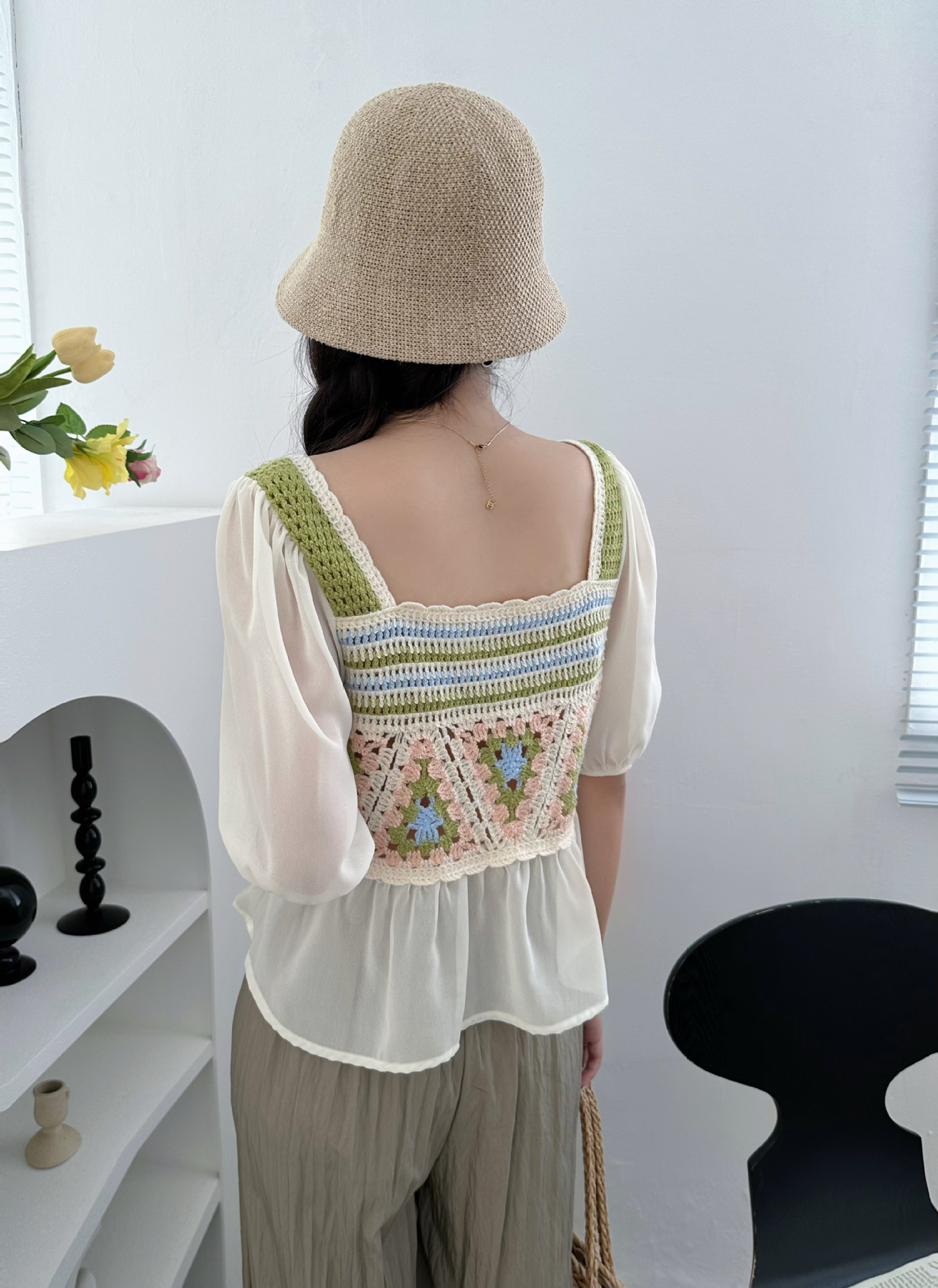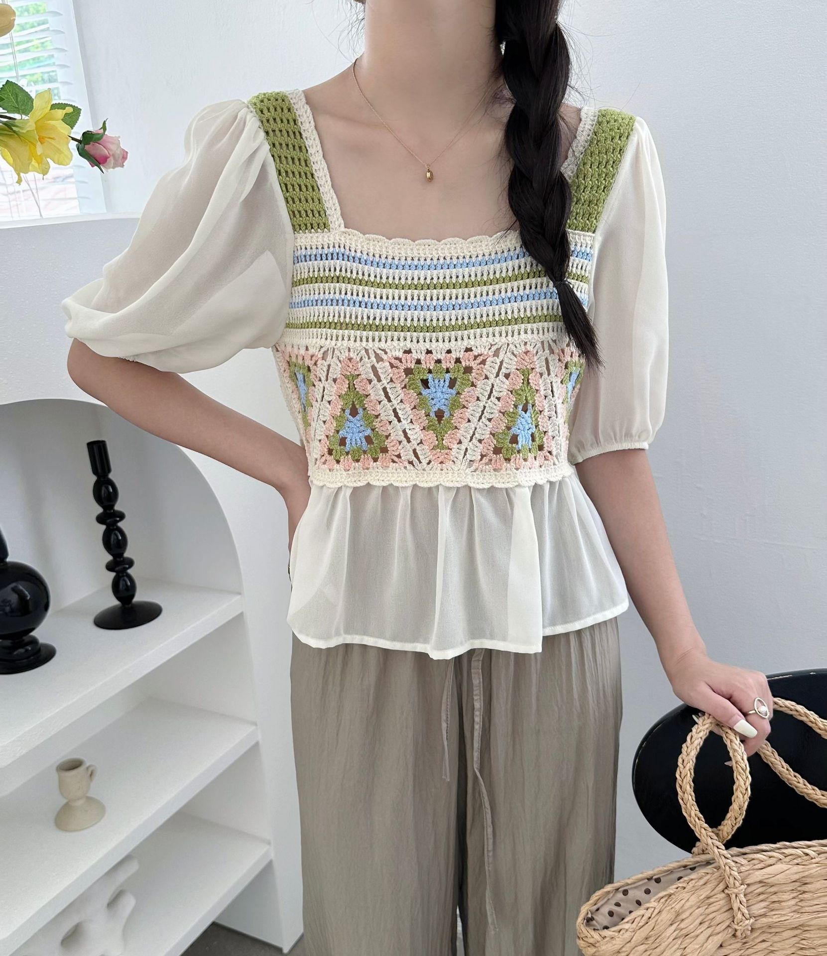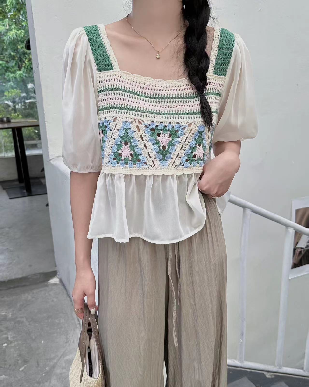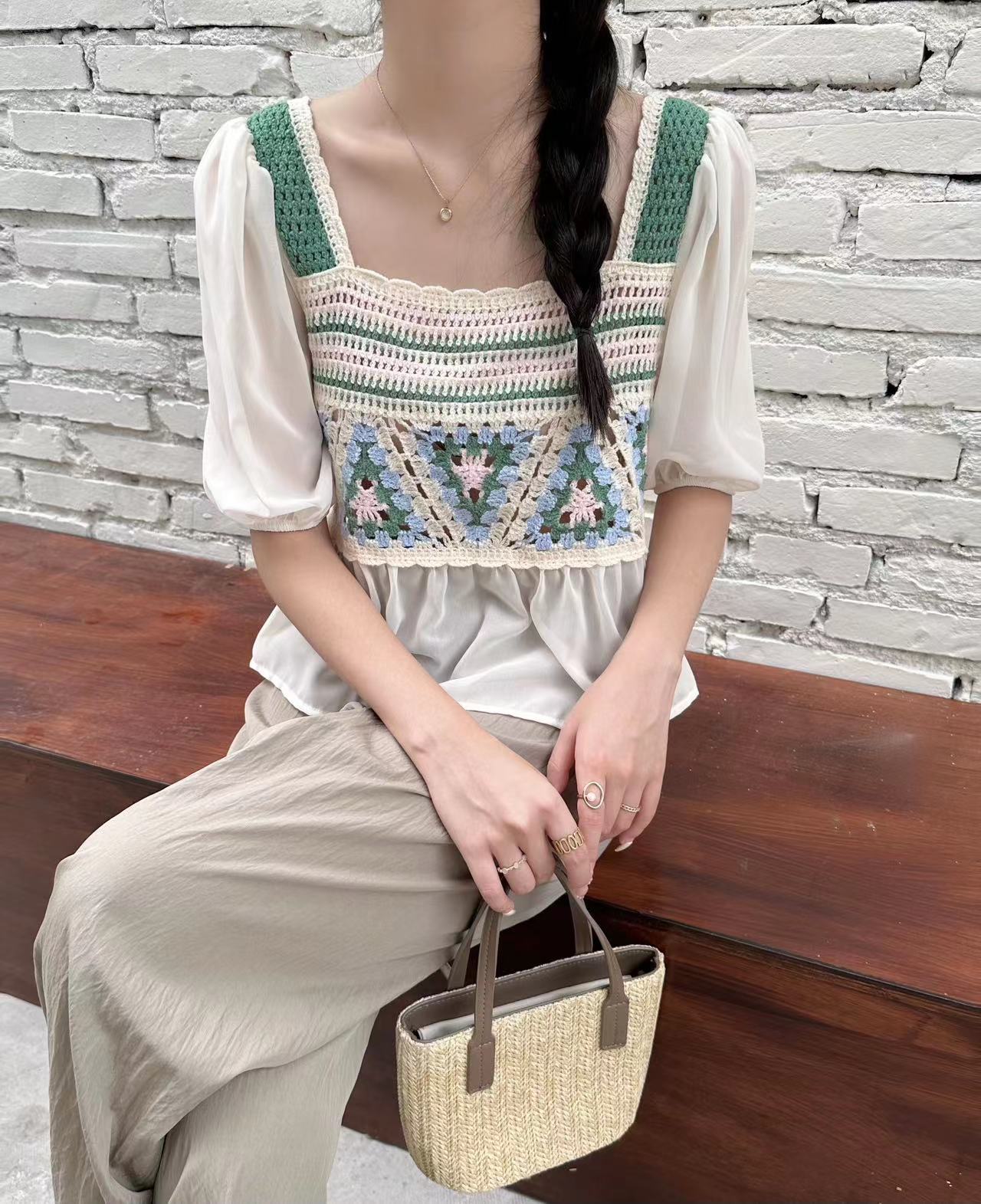 외부 반팔 쉬폰 셔츠 탑 여성의 순수한 욕망 달콤한 신선한 느슨한 배꼽 슬림 패션 다목적 겉옷스토어 가기