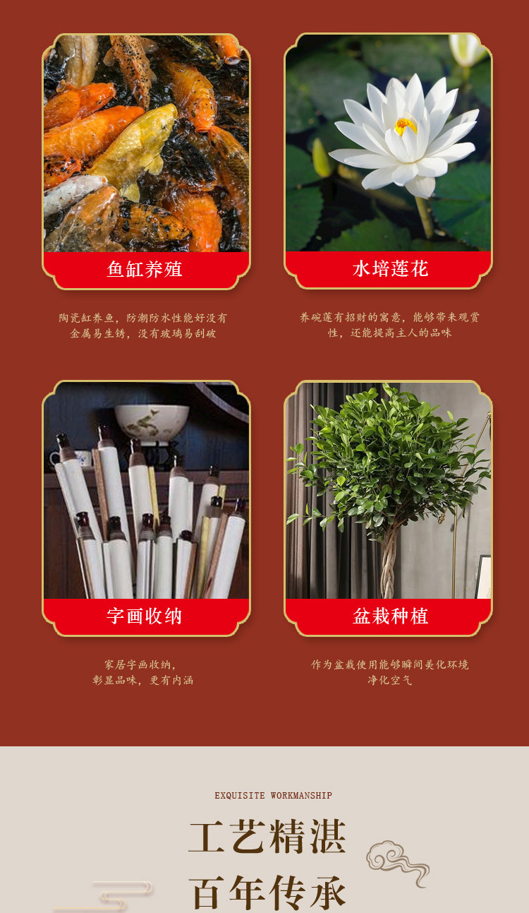 Jingdezhen 세라믹 어항 구식 민속 물 탱크 발코니 야외 안뜰 물 연꽃 탱크 고대 방법 어항