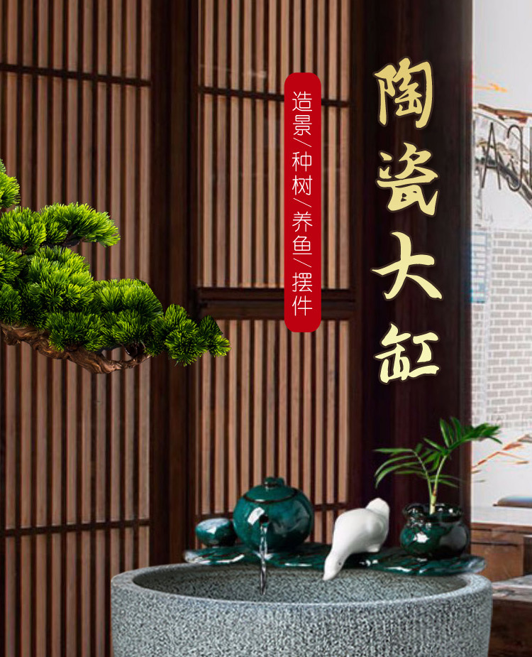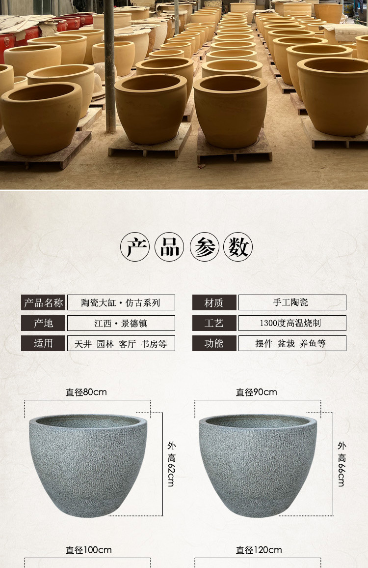 Jingdezhen 세라믹 어항 구식 민속 물 탱크 발코니 야외 안뜰 물 연꽃 탱크 고대 방법 어항스토어 가기