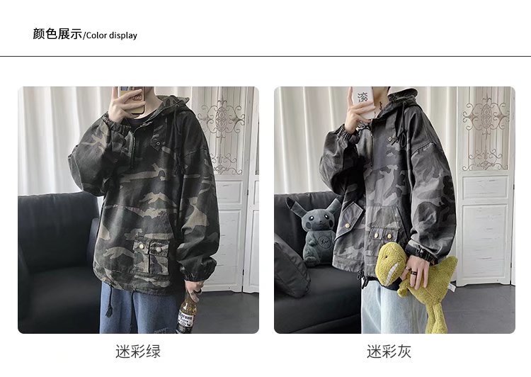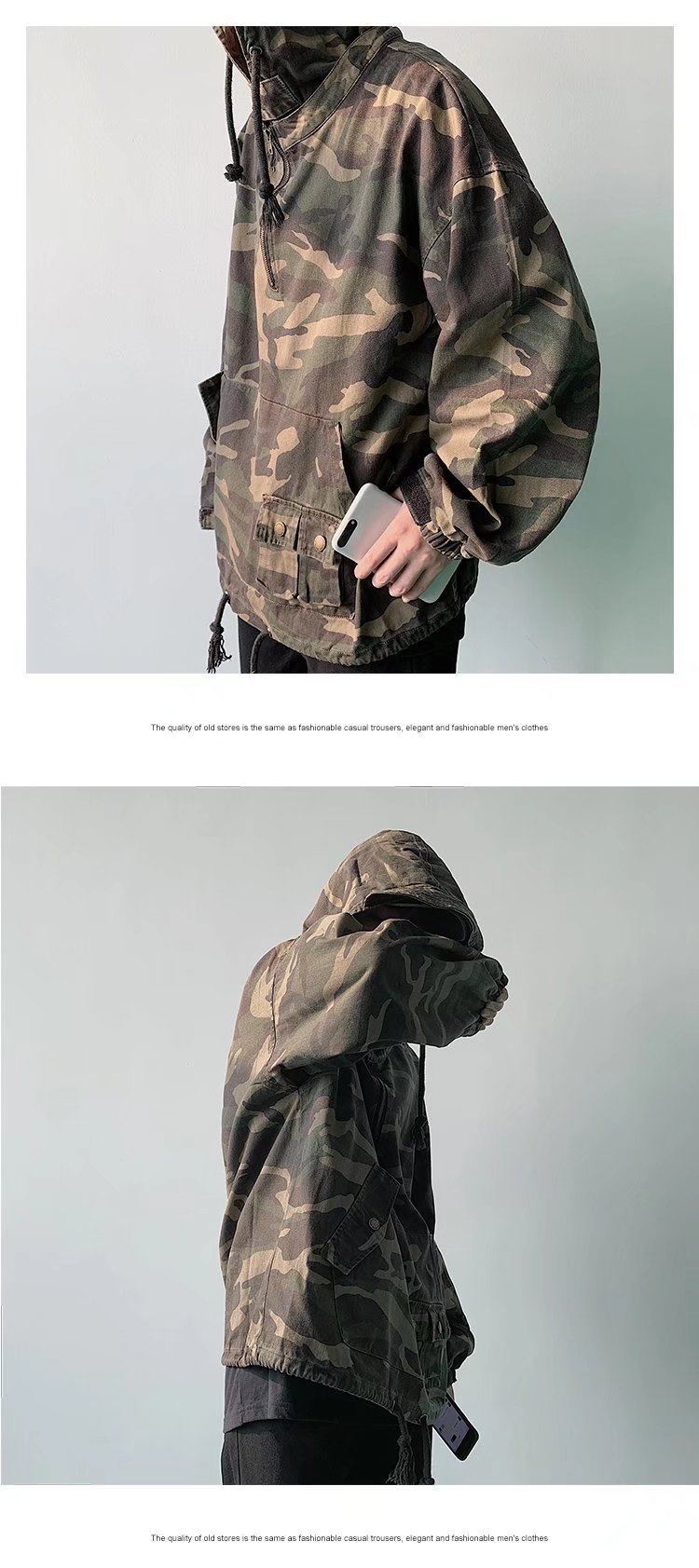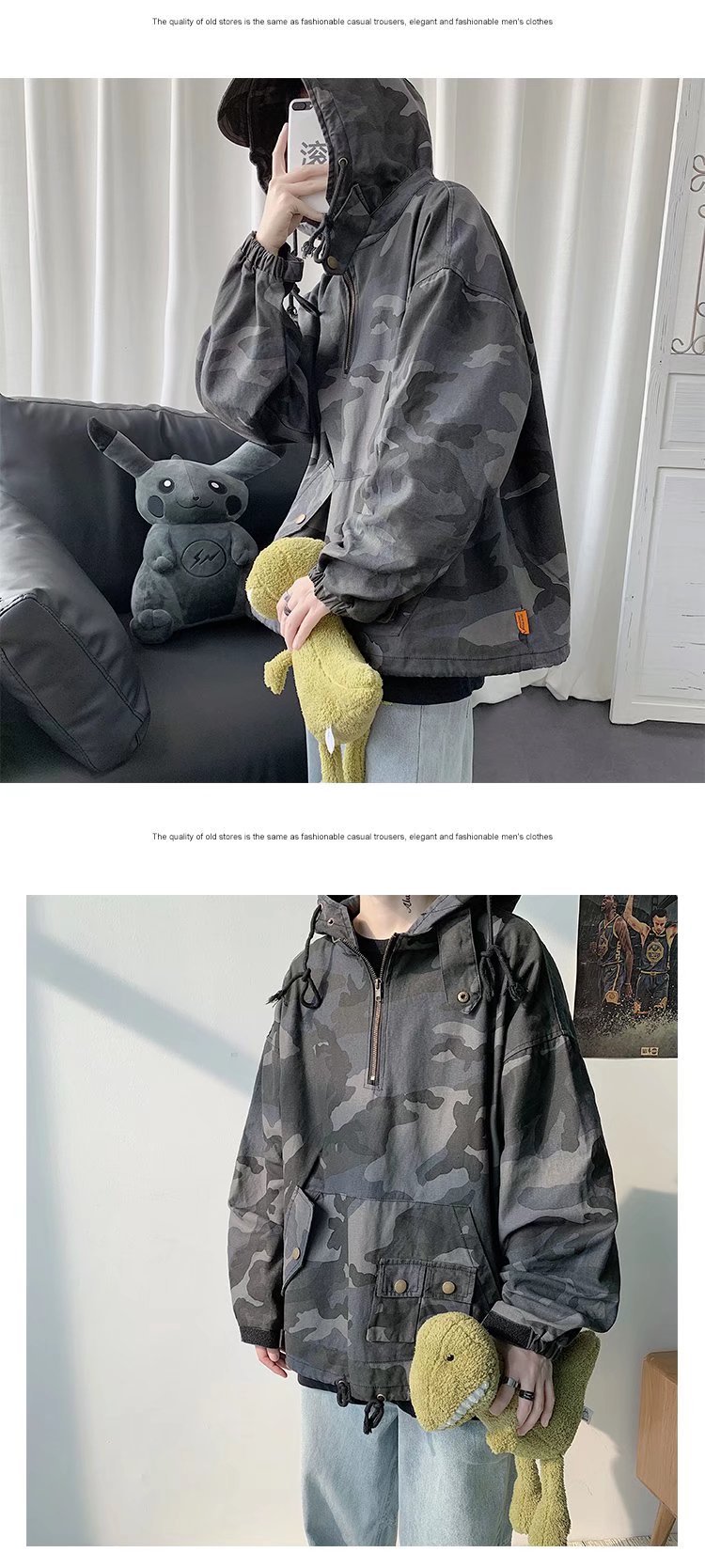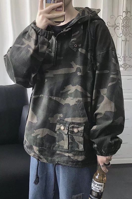 홍콩 스타일 남자의 2023 가을 새로운 남자의 위장 후드 재킷 한국 유행 학생 느슨한 캐주얼 스웨터