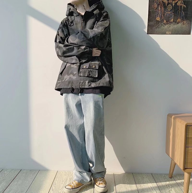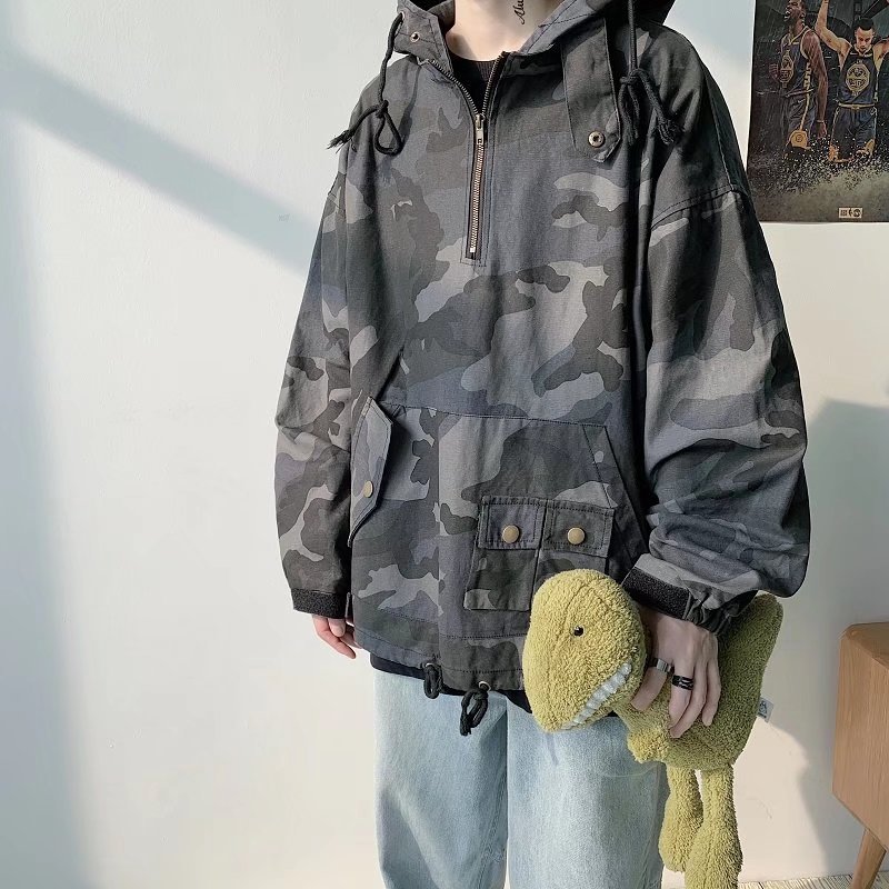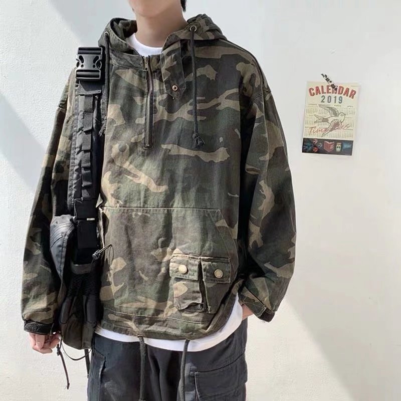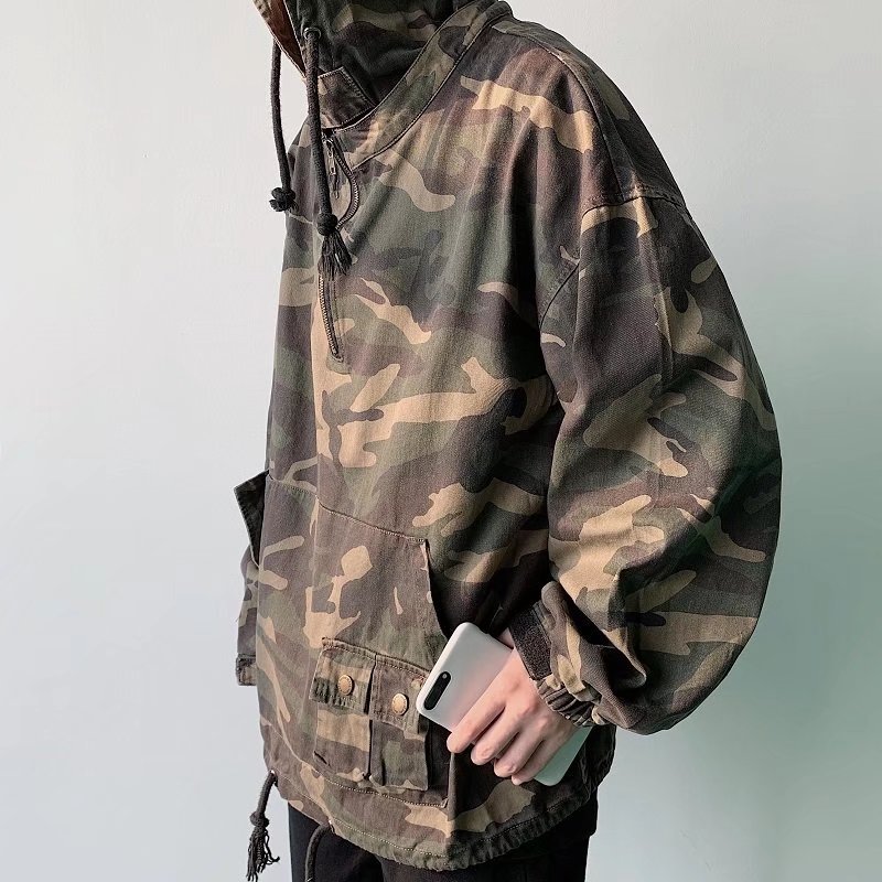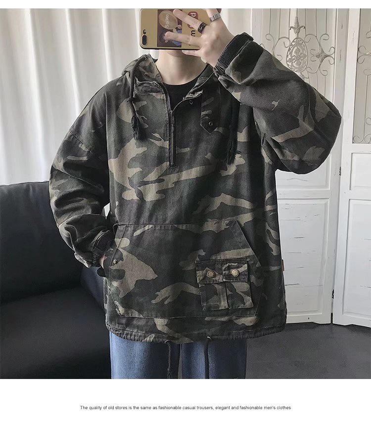 홍콩 스타일 남자의 2023 가을 새로운 남자의 위장 후드 재킷 한국 유행 학생 느슨한 캐주얼 스웨터