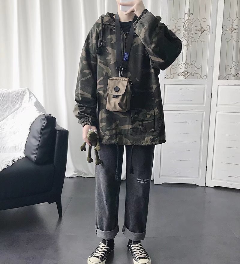 홍콩 스타일 남자의 2023 가을 새로운 남자의 위장 후드 재킷 한국 유행 학생 느슨한 캐주얼 스웨터스토어 가기