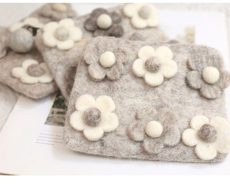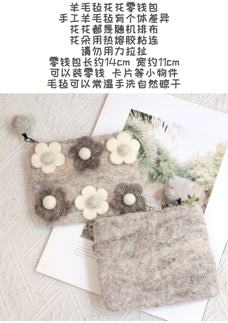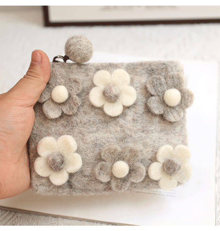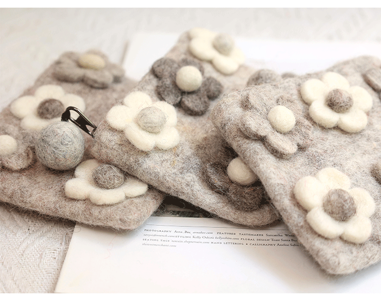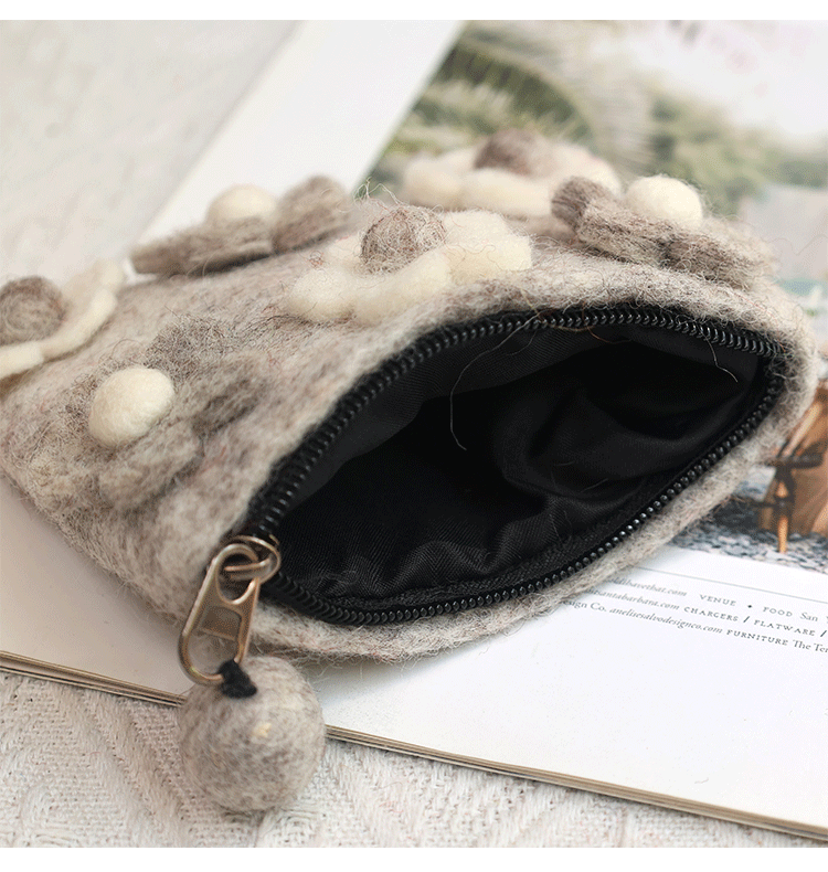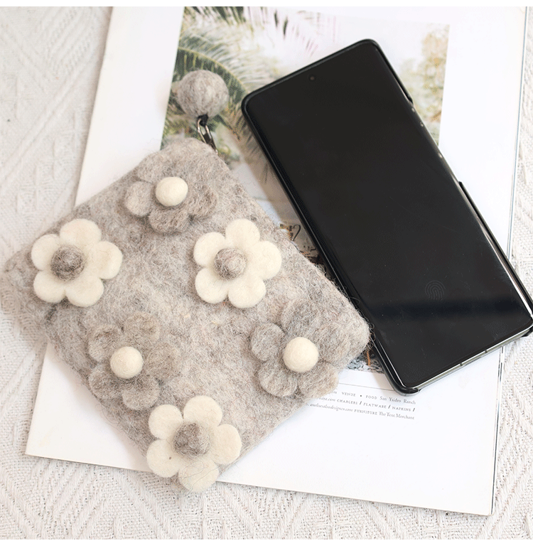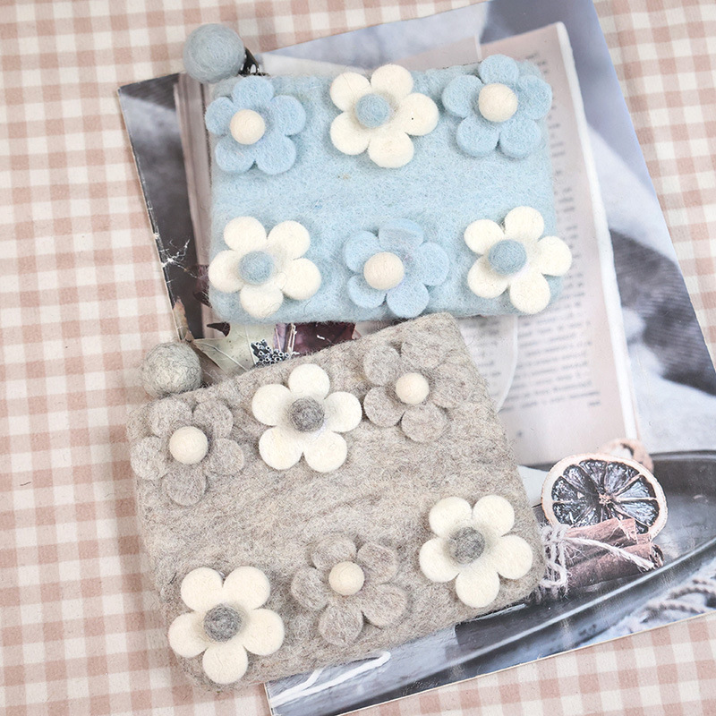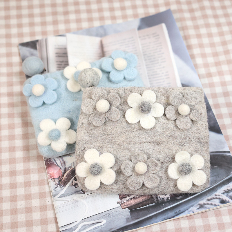 스타일 울 펠트 모란디 컬러 꽃 동전 지갑 카드 가방 클러치 개인화 된 예술적 빈티지 보관 가방스토어 가기