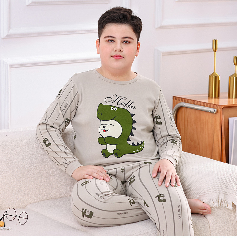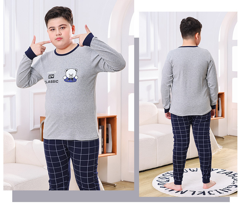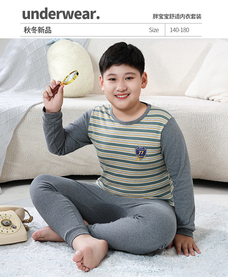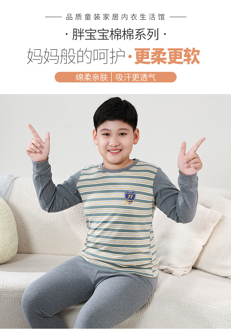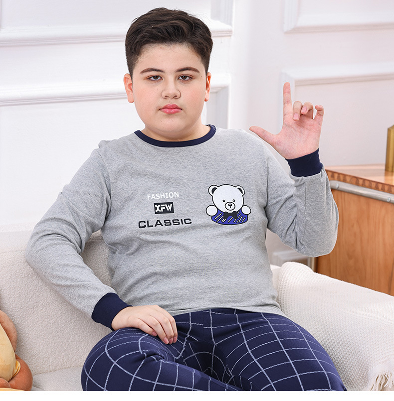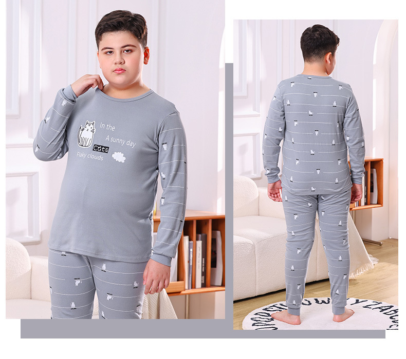 지방 청소년 지방 아동면 속옷 세트 중형 및 대형 어린이 초대형 넓어진 가을 옷 긴 바지 잠옷 홈 웨어