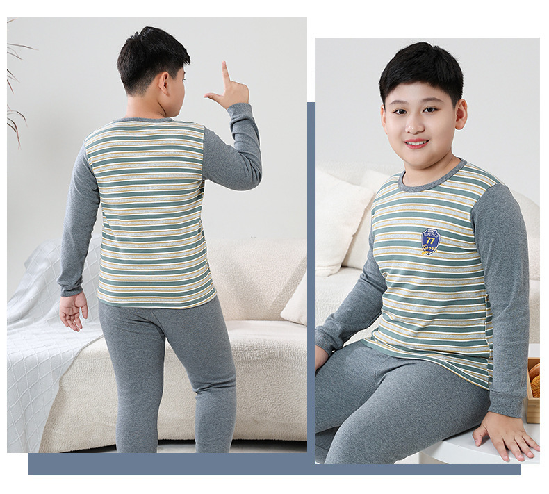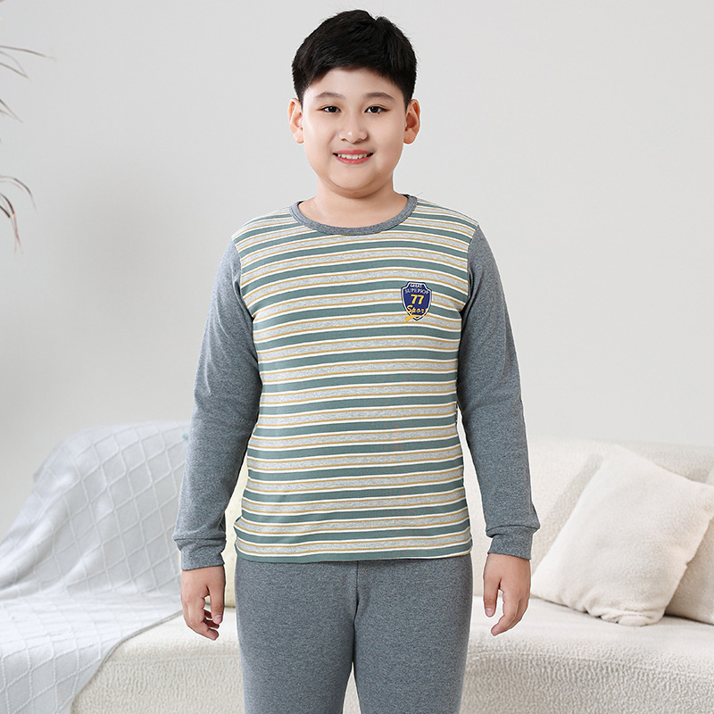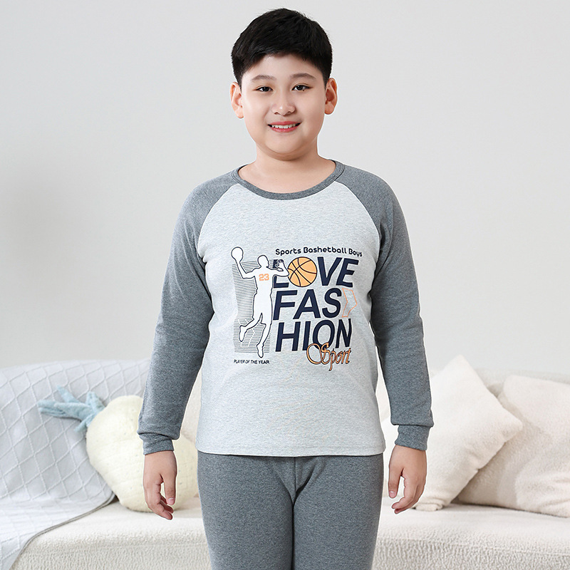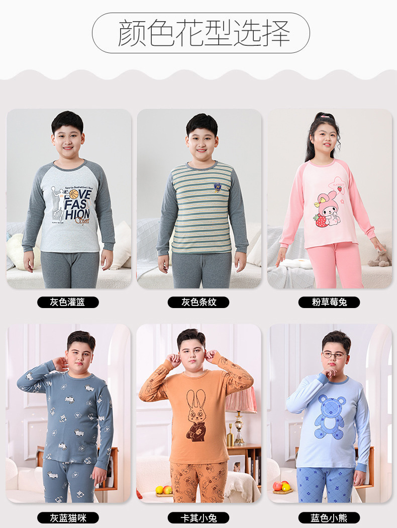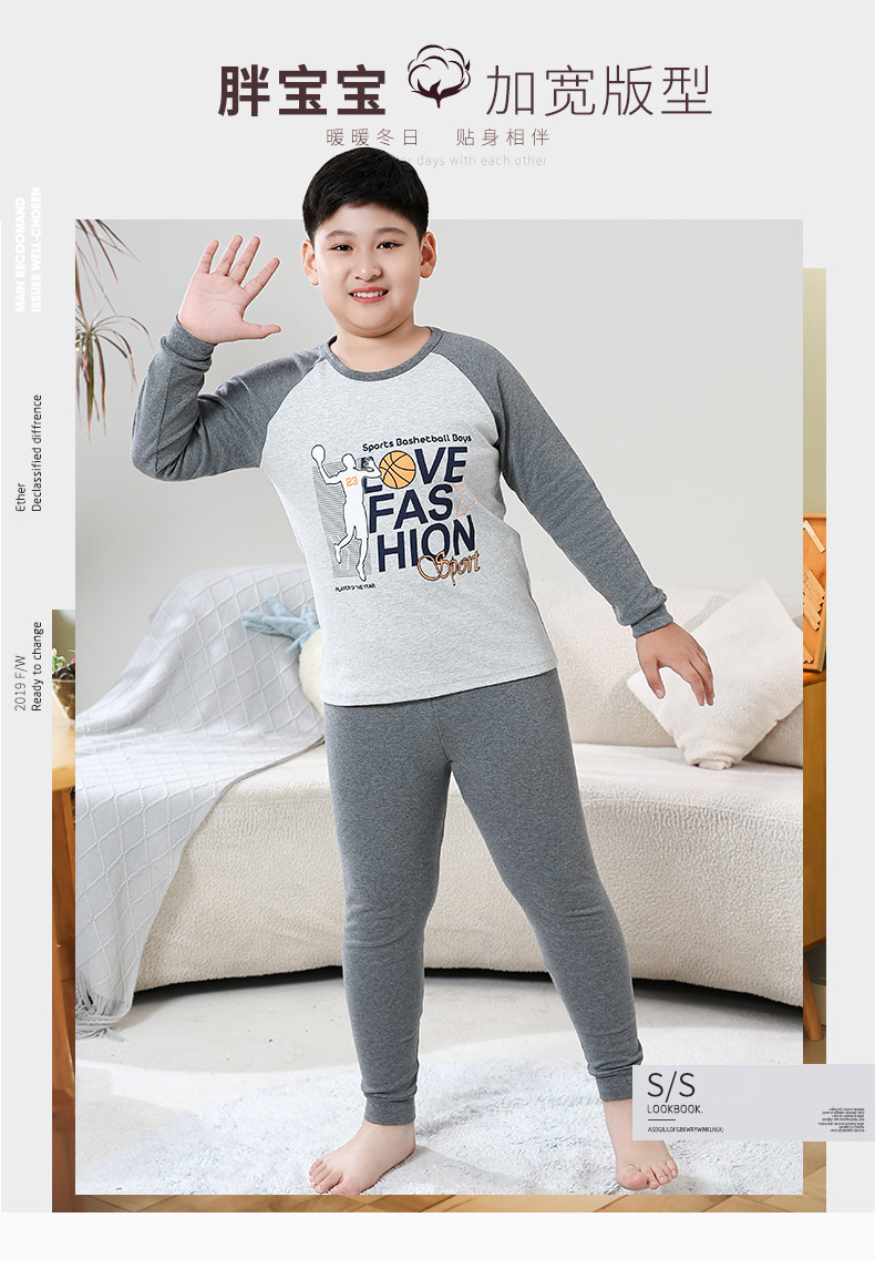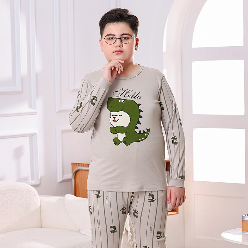 지방 청소년 지방 아동면 속옷 세트 중형 및 대형 어린이 초대형 넓어진 가을 옷 긴 바지 잠옷 홈 웨어