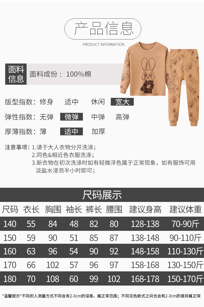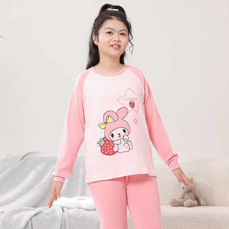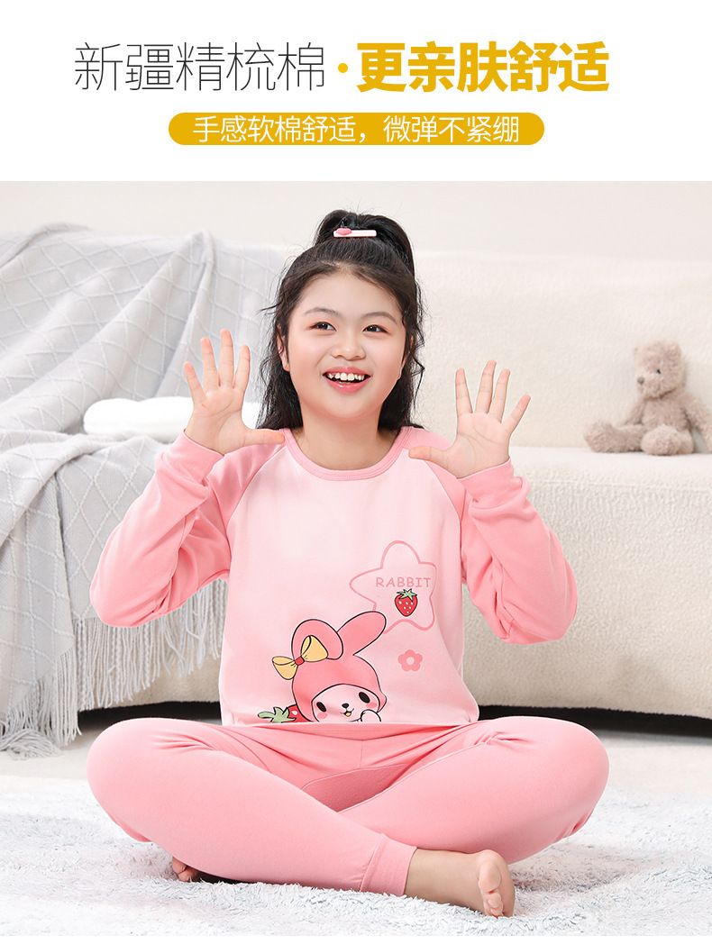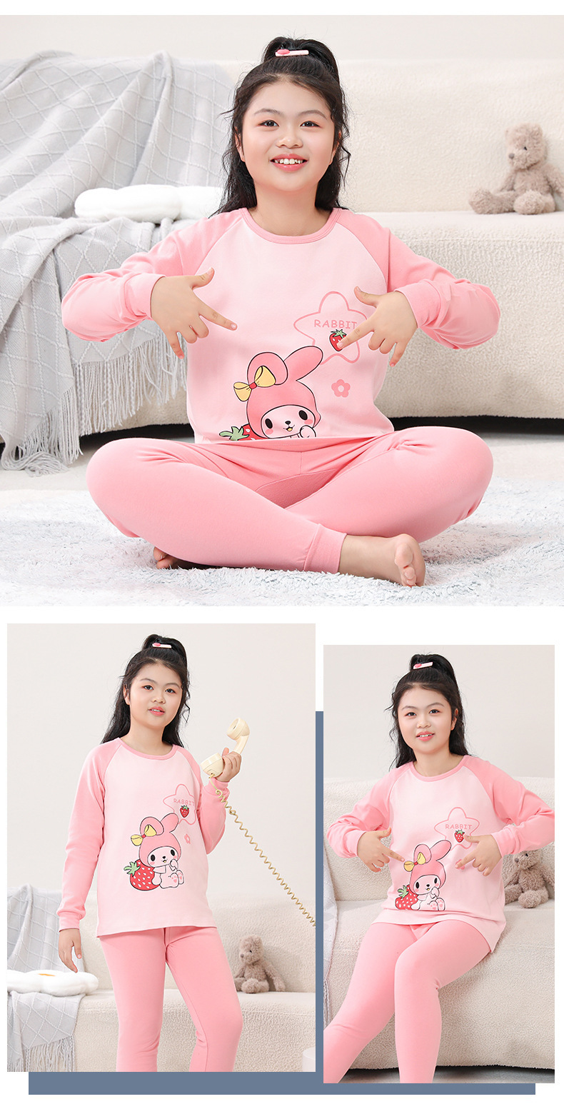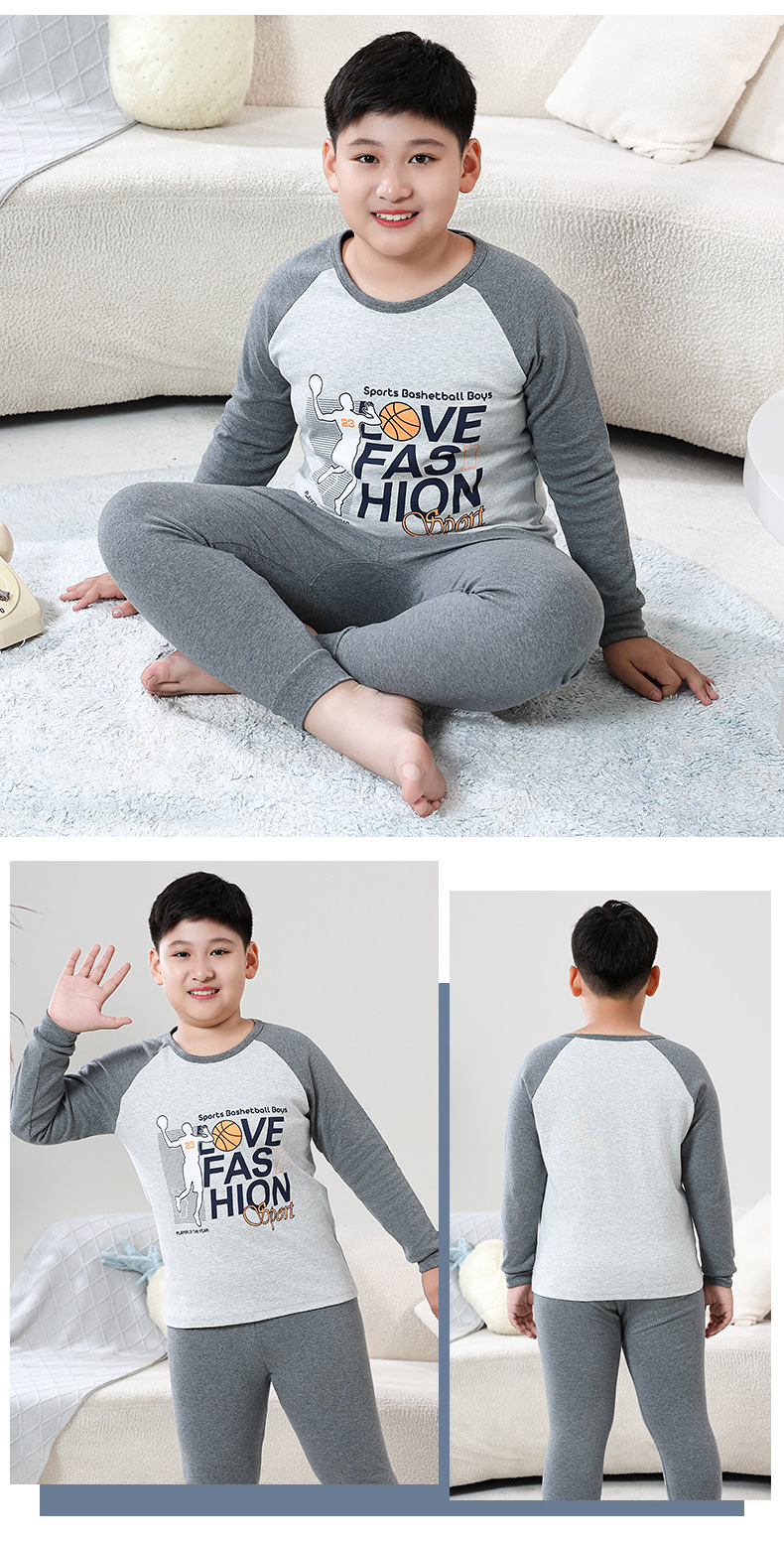 지방 청소년 지방 아동면 속옷 세트 중형 및 대형 어린이 초대형 넓어진 가을 옷 긴 바지 잠옷 홈 웨어