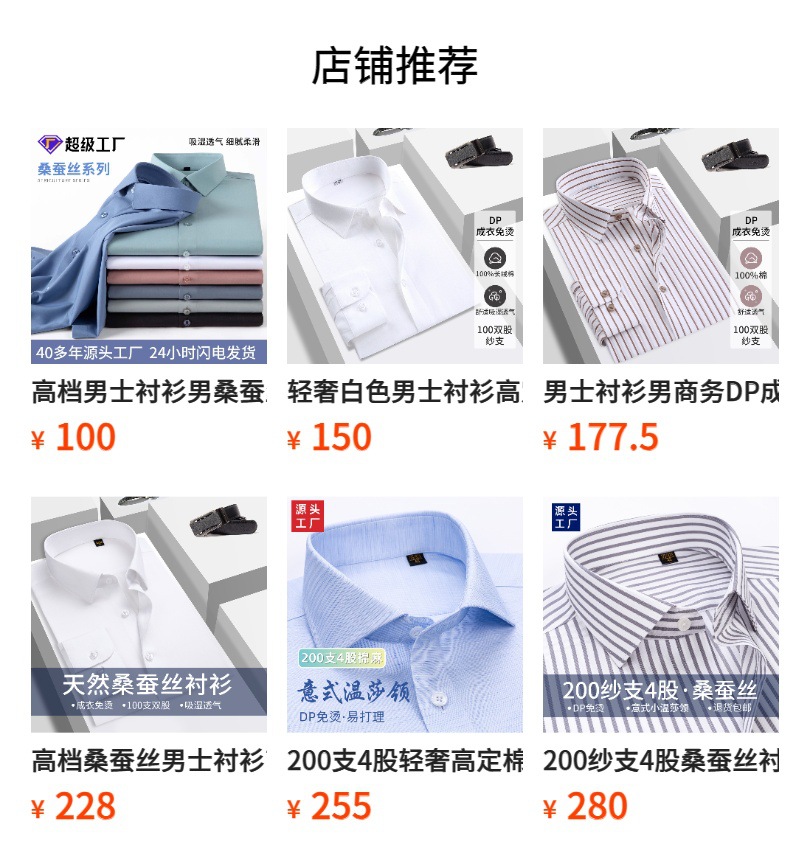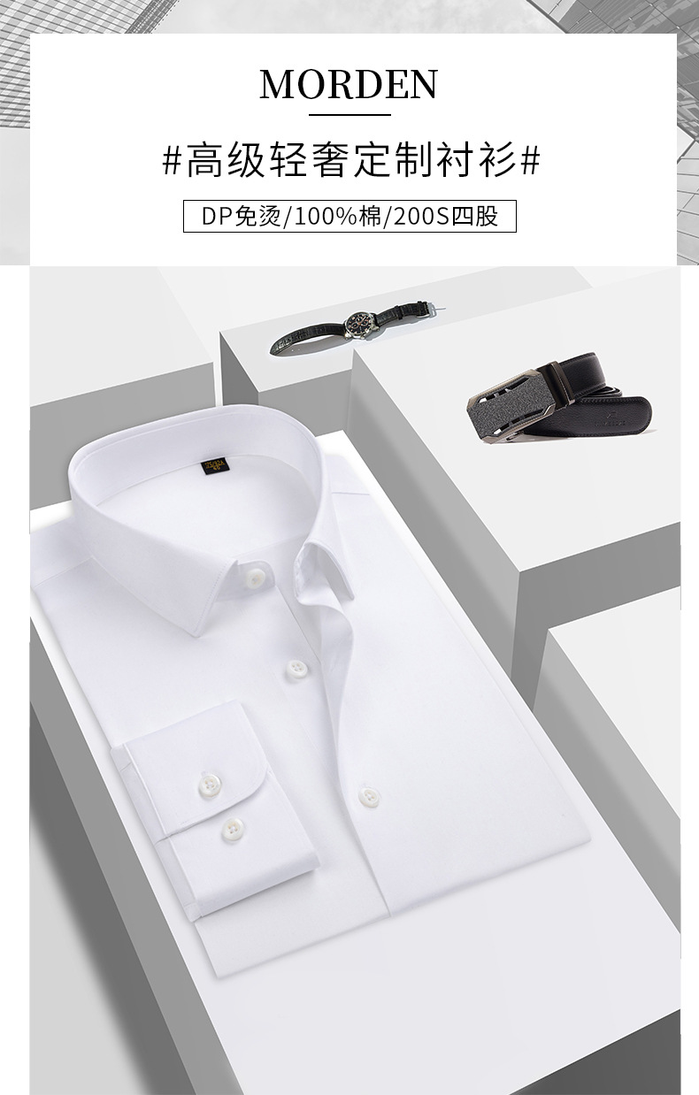 DP 기성품 의류 다림질 남자 셔츠 남자의 비즈니스 흰색 셔츠 캐주얼 긴 소매 셔츠 100 면 200 네 가닥스토어 가기
