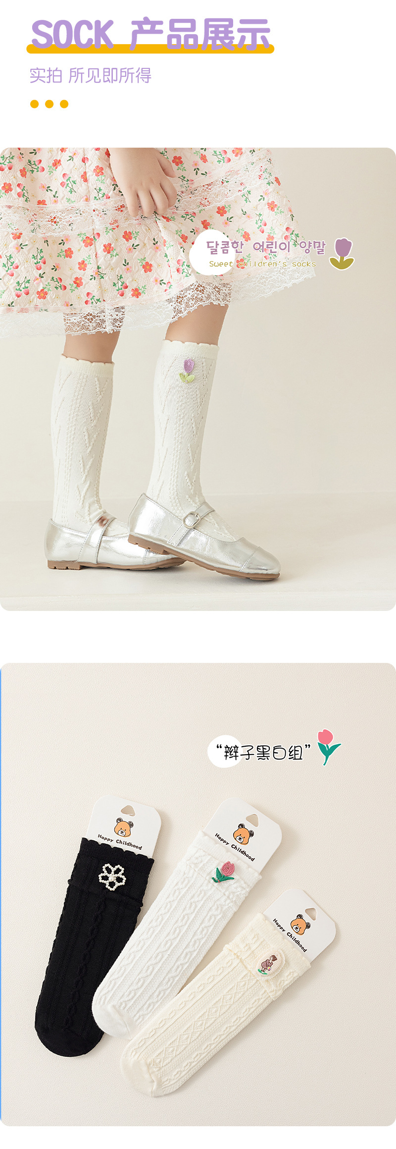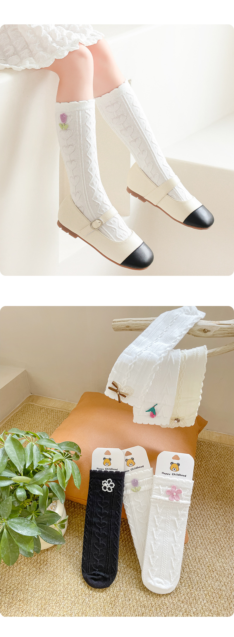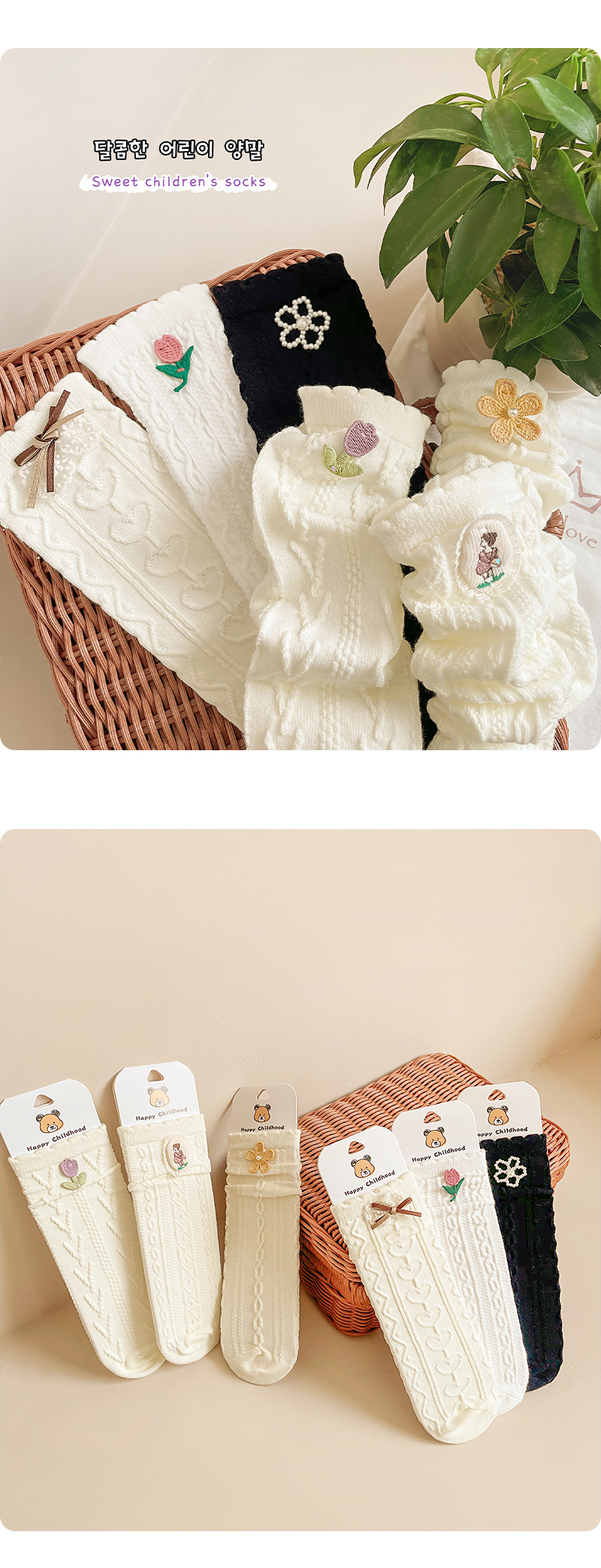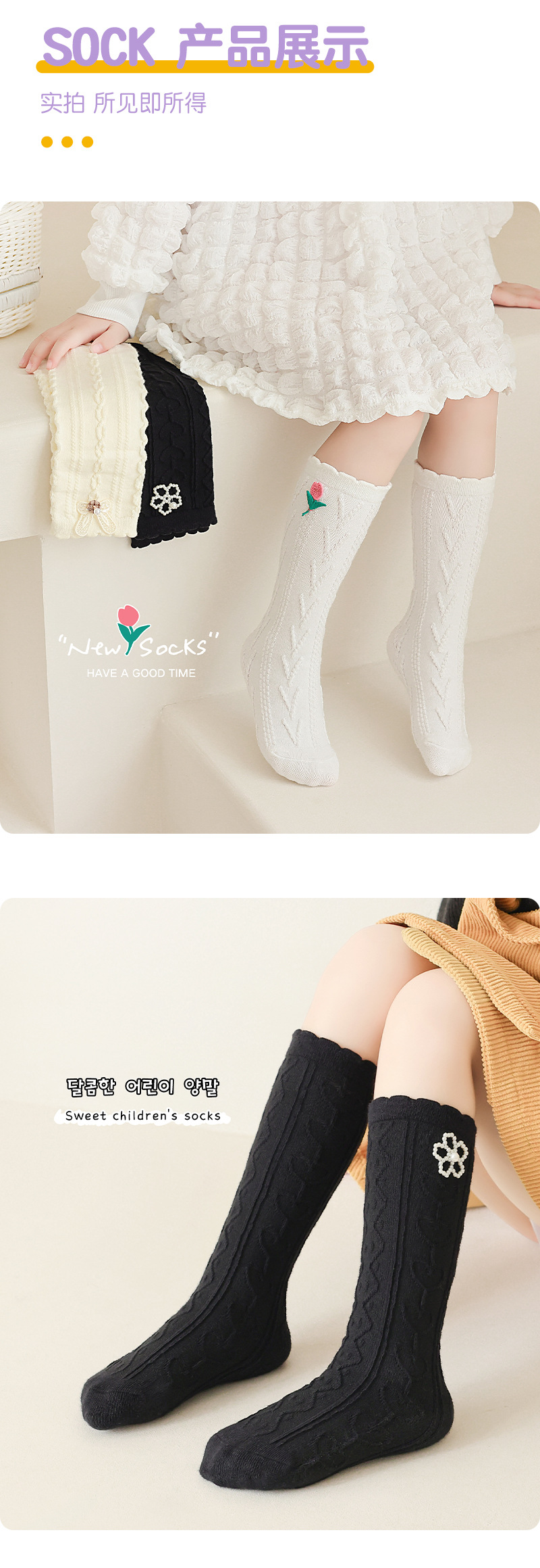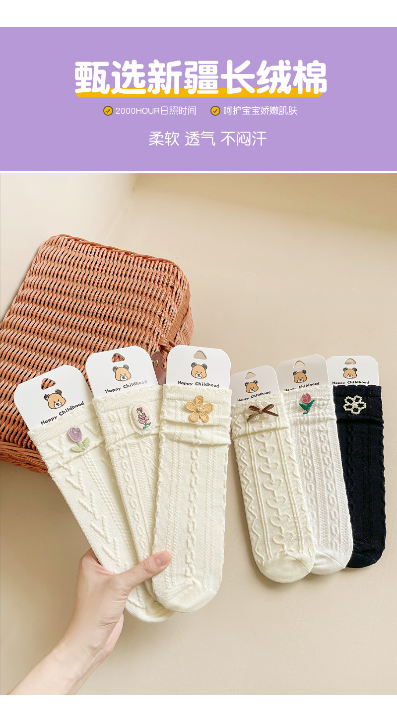 여자 양말 가을 얇은 더미 양말 어린이 자수 꽃 니트 나무 귀 측면 양말 여자 송아지 양말