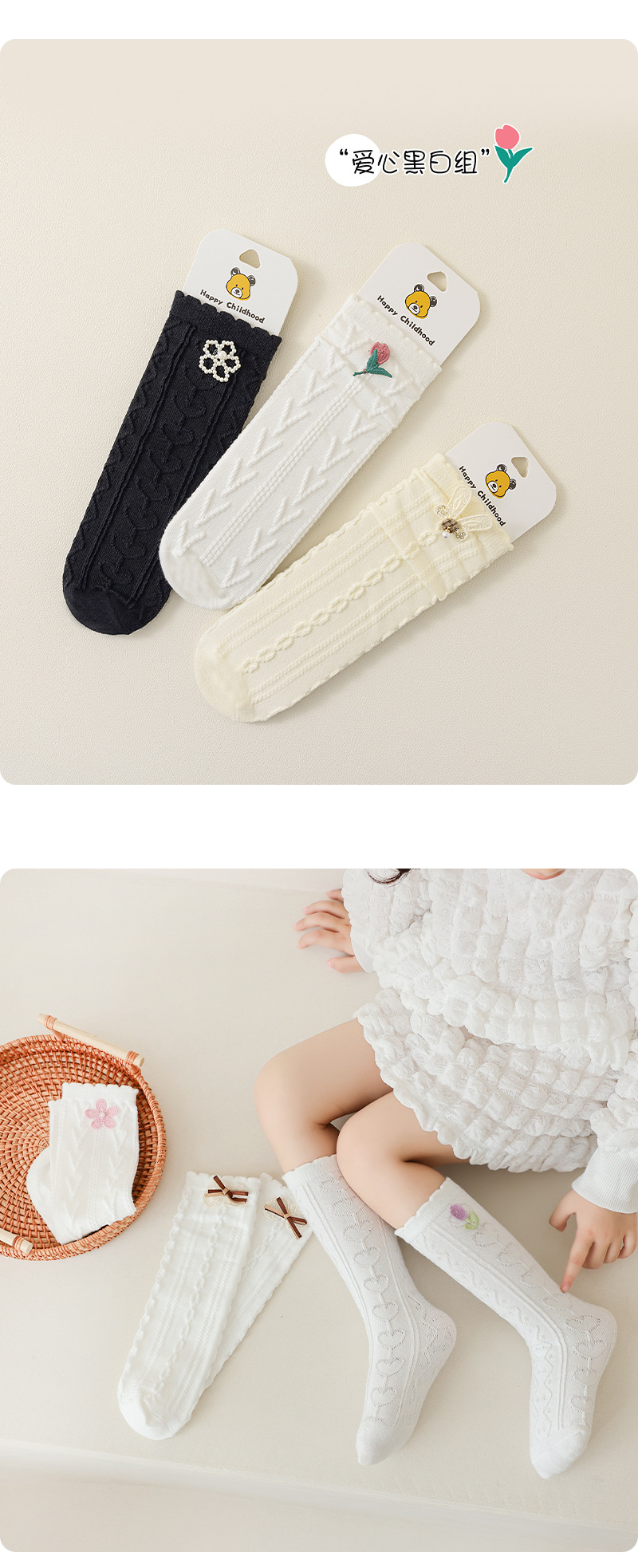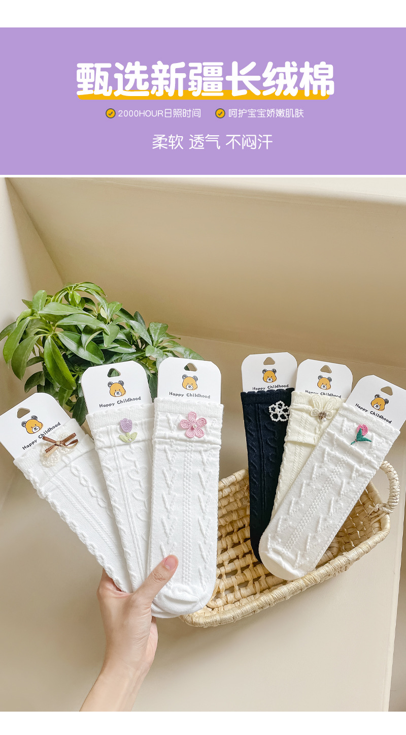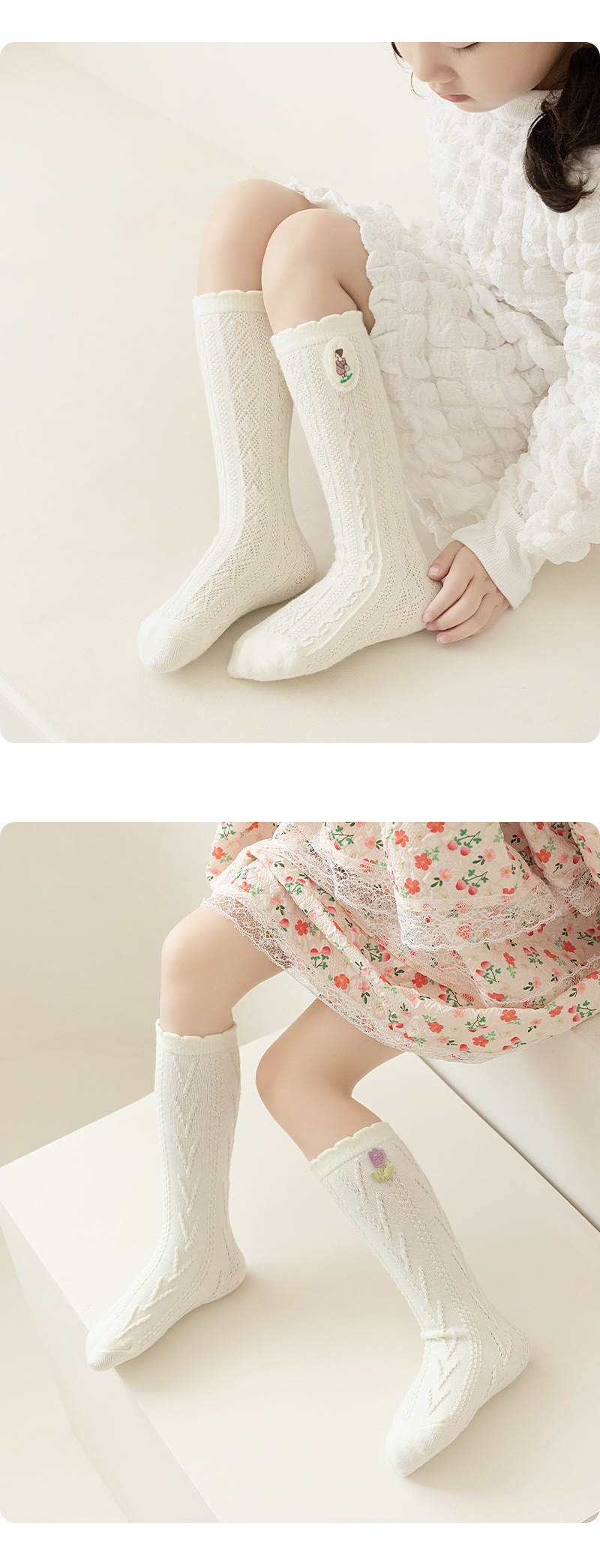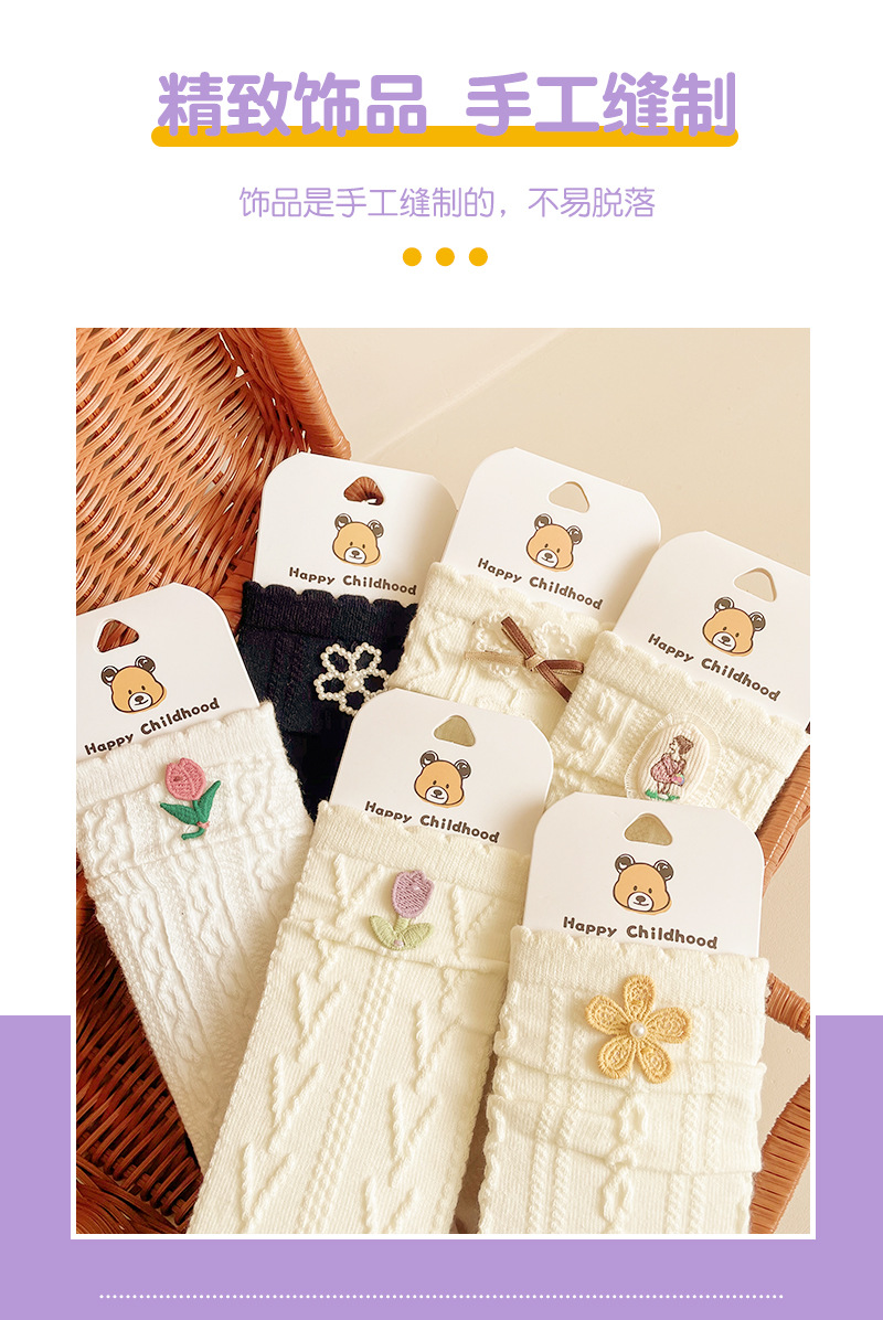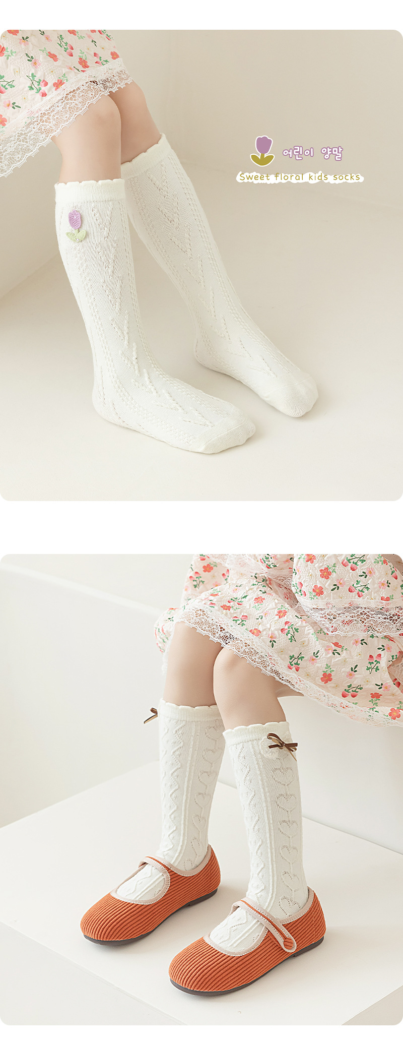 여자 양말 가을 얇은 더미 양말 어린이 자수 꽃 니트 나무 귀 측면 양말 여자 송아지 양말